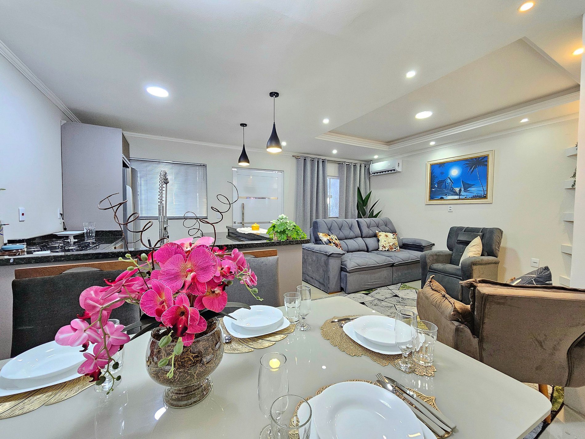 > Quartos climatizados com ar-condicionado split. Sala e cozinha climatizada também.