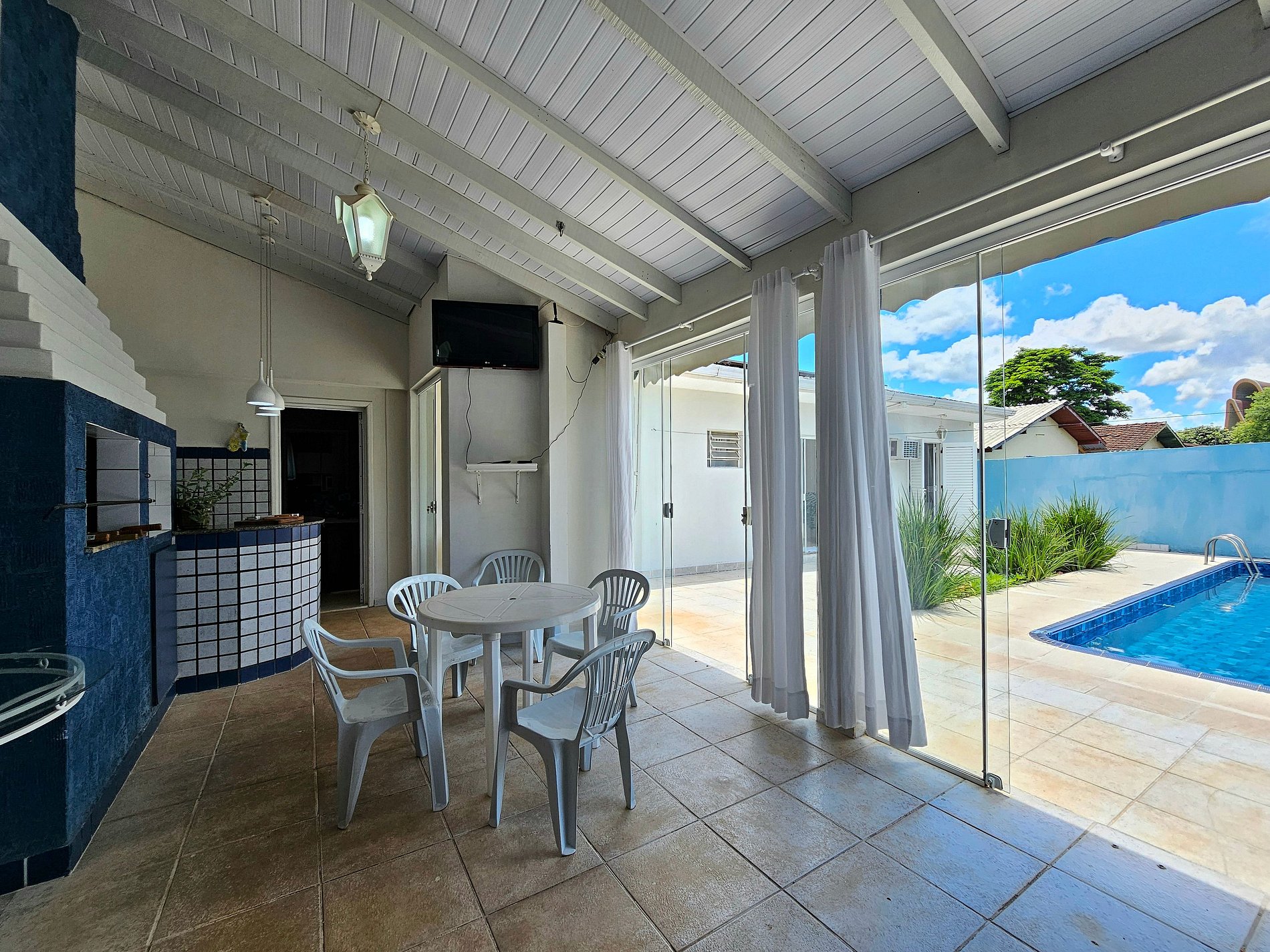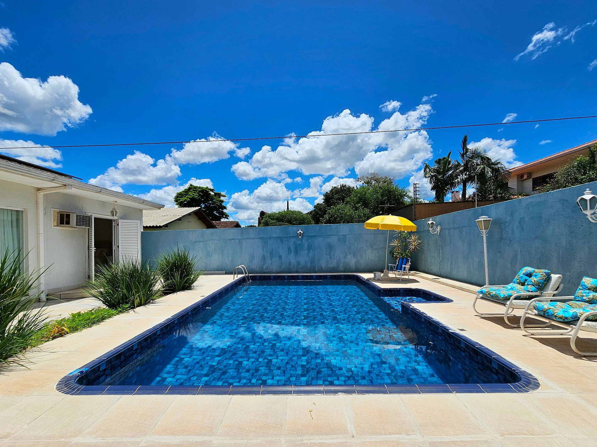 Linda casa com excelente área de lazer piscina e churrasqueira, em um dos melhores bairros de Foz para se viver. Muito próximo ao Hospital Costa Cavalcanti, também a 10 minutinhos do Paraguai e 25 minutos das Cataratas. São 2 quartos e 3 banheiros, bem próximo temos supermercado, farmácia, padaria, petshop, salão e comércio em geral. Casa completa com todas as mobílias, roupas de cama e banho e utensílios domésticos. Garagem para 3 carros e Wifi.