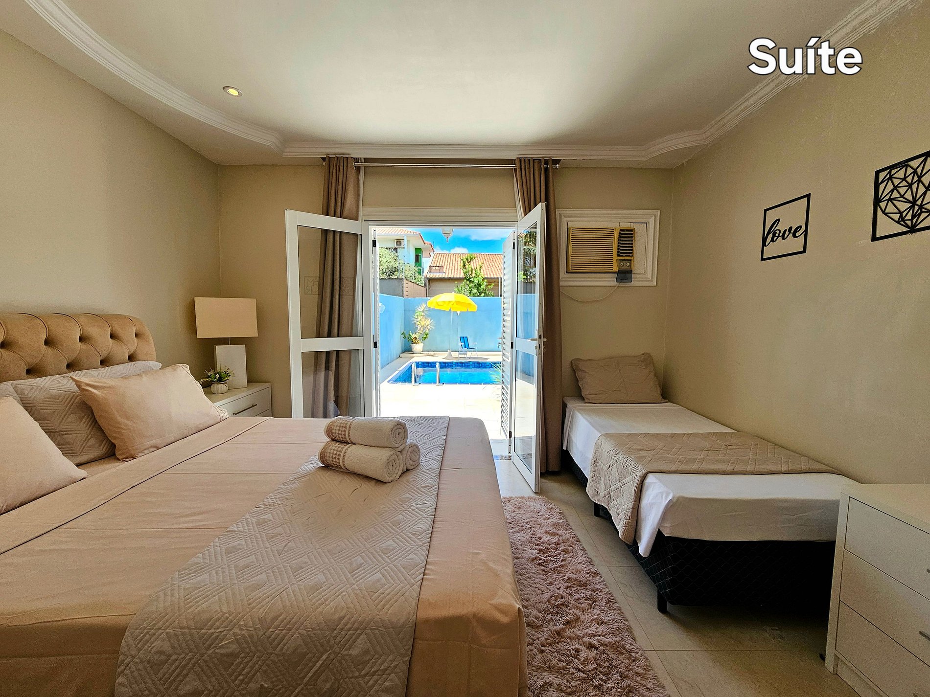 > Suíte 01: 01 cama casal queensize + 01 cama de solteiro + Banheiro com banheira.