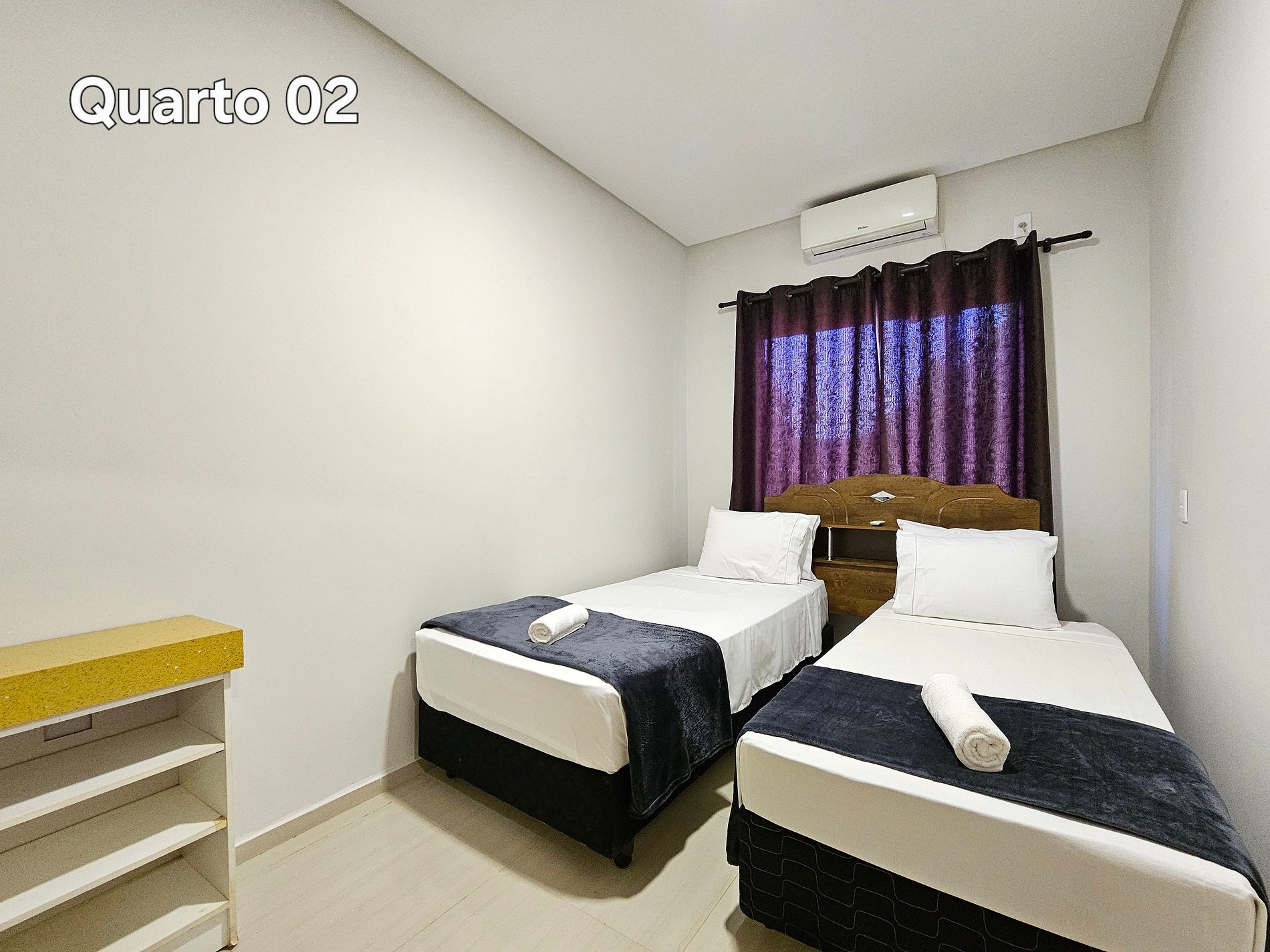 Quarto 02: 02 camas de solteiro, com ar condicionado
