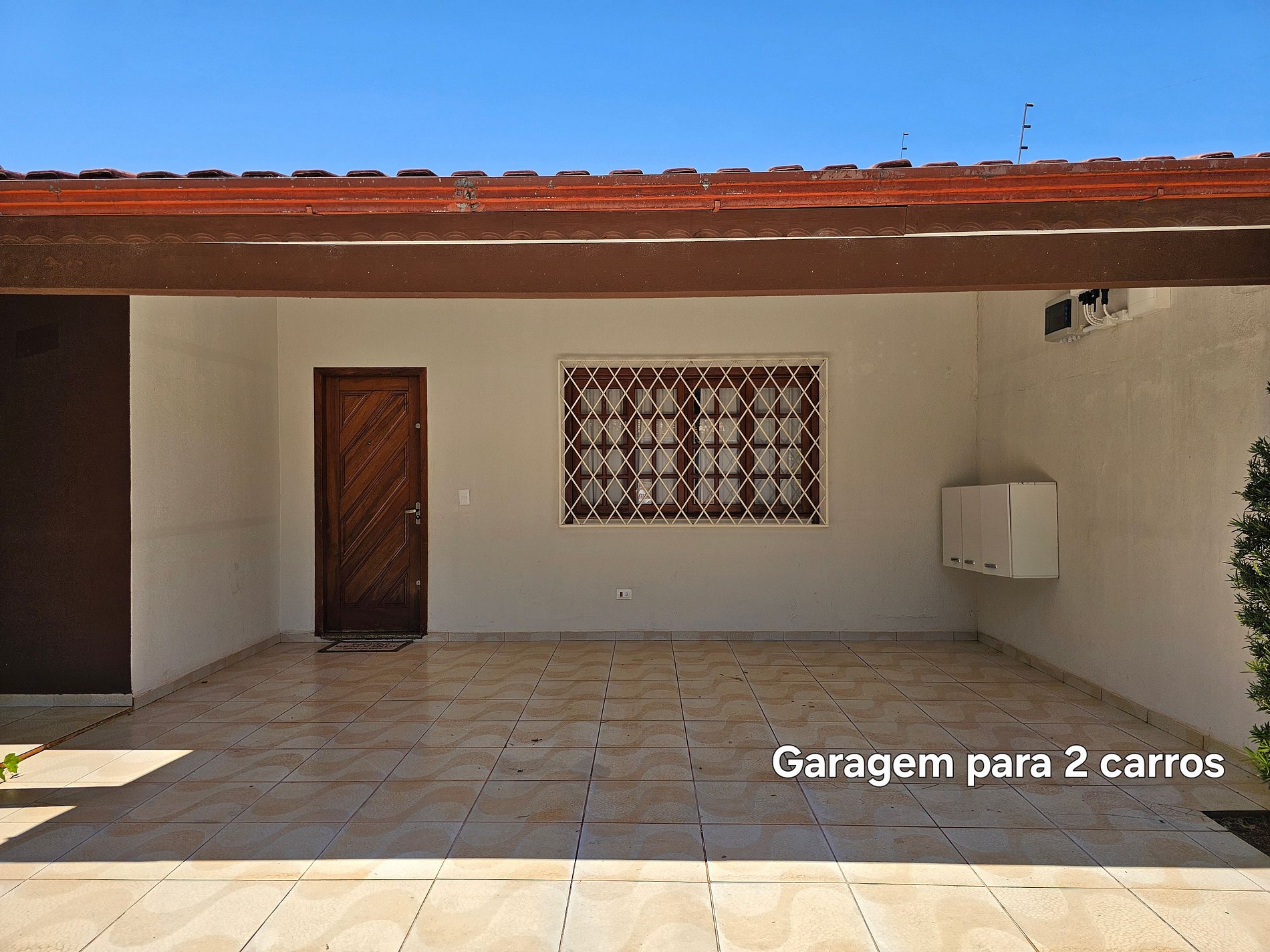 Garagem para 2 carros com portão eletrônico.