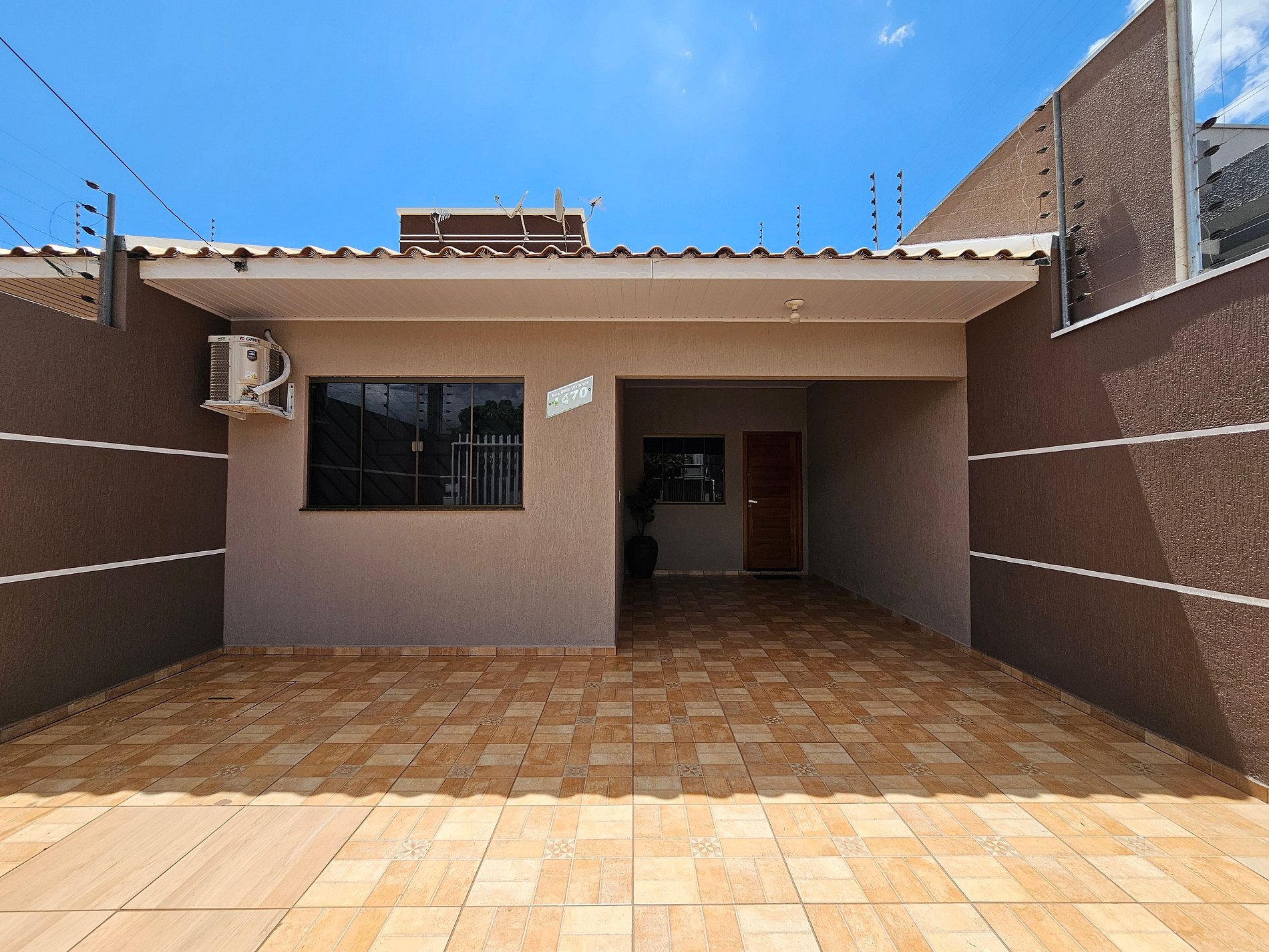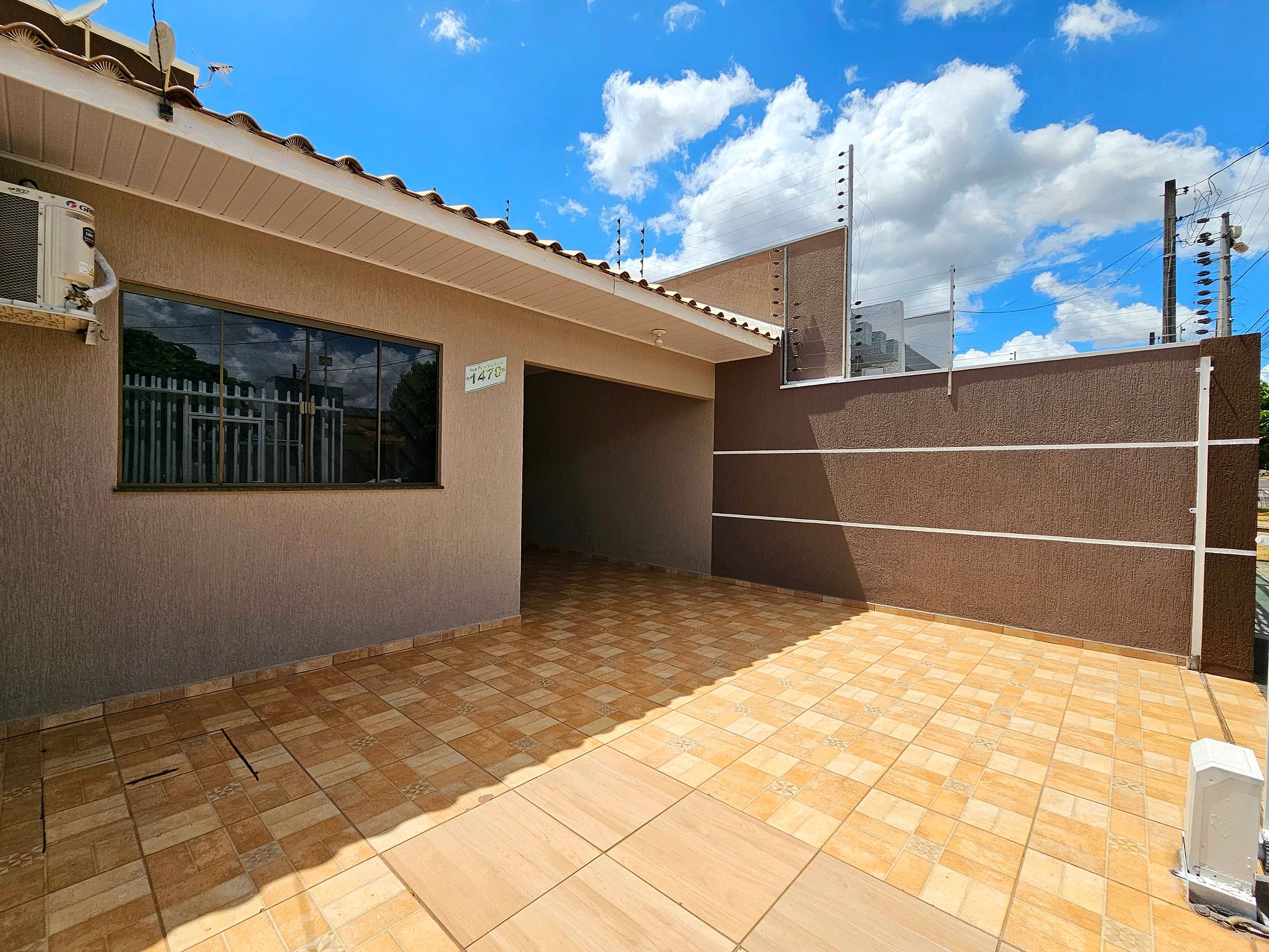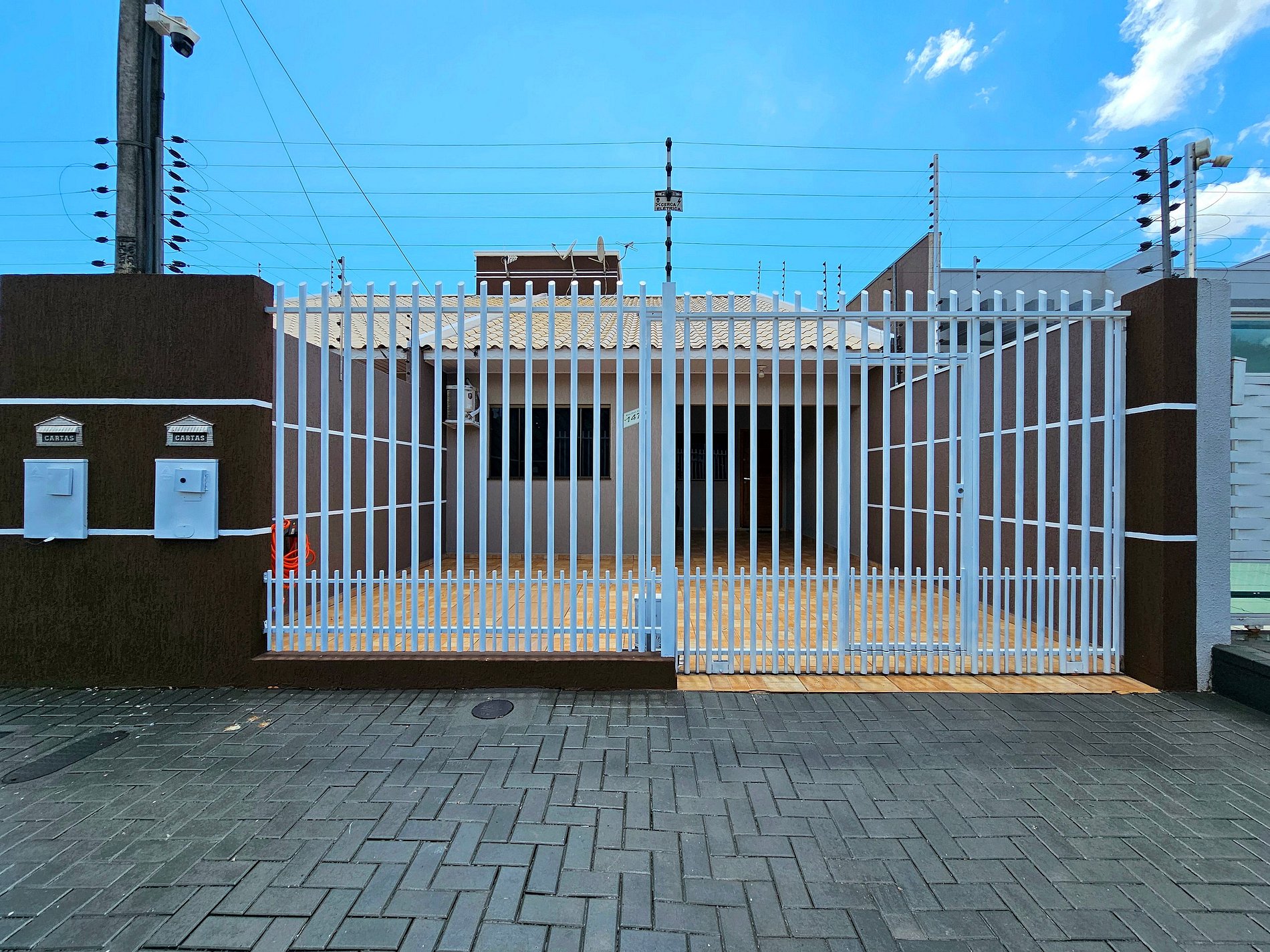 Casa monitorada com câmera na área externa para segurança.