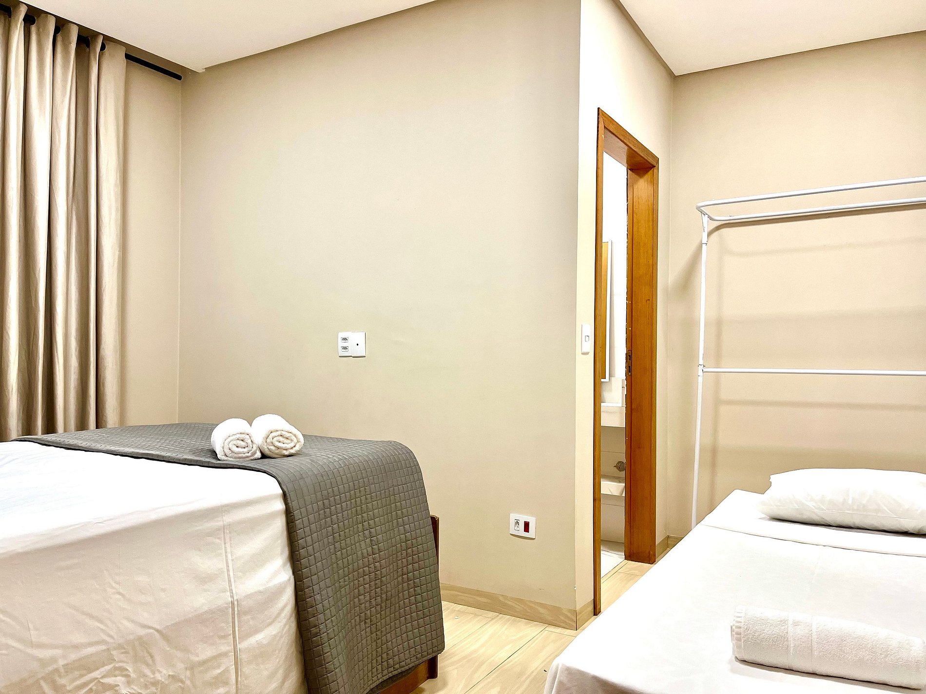 > 01 Suite com cama casal + 01 cama solteiro (com banheiro).