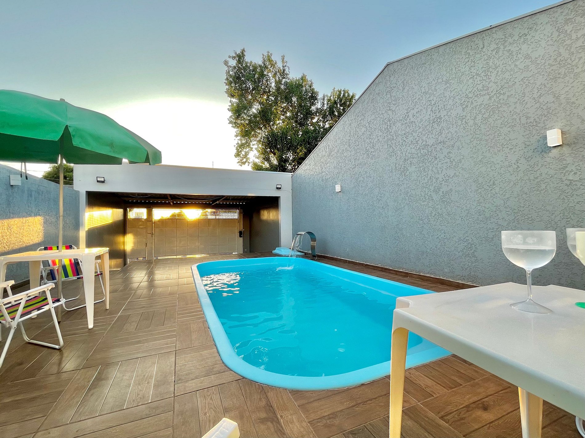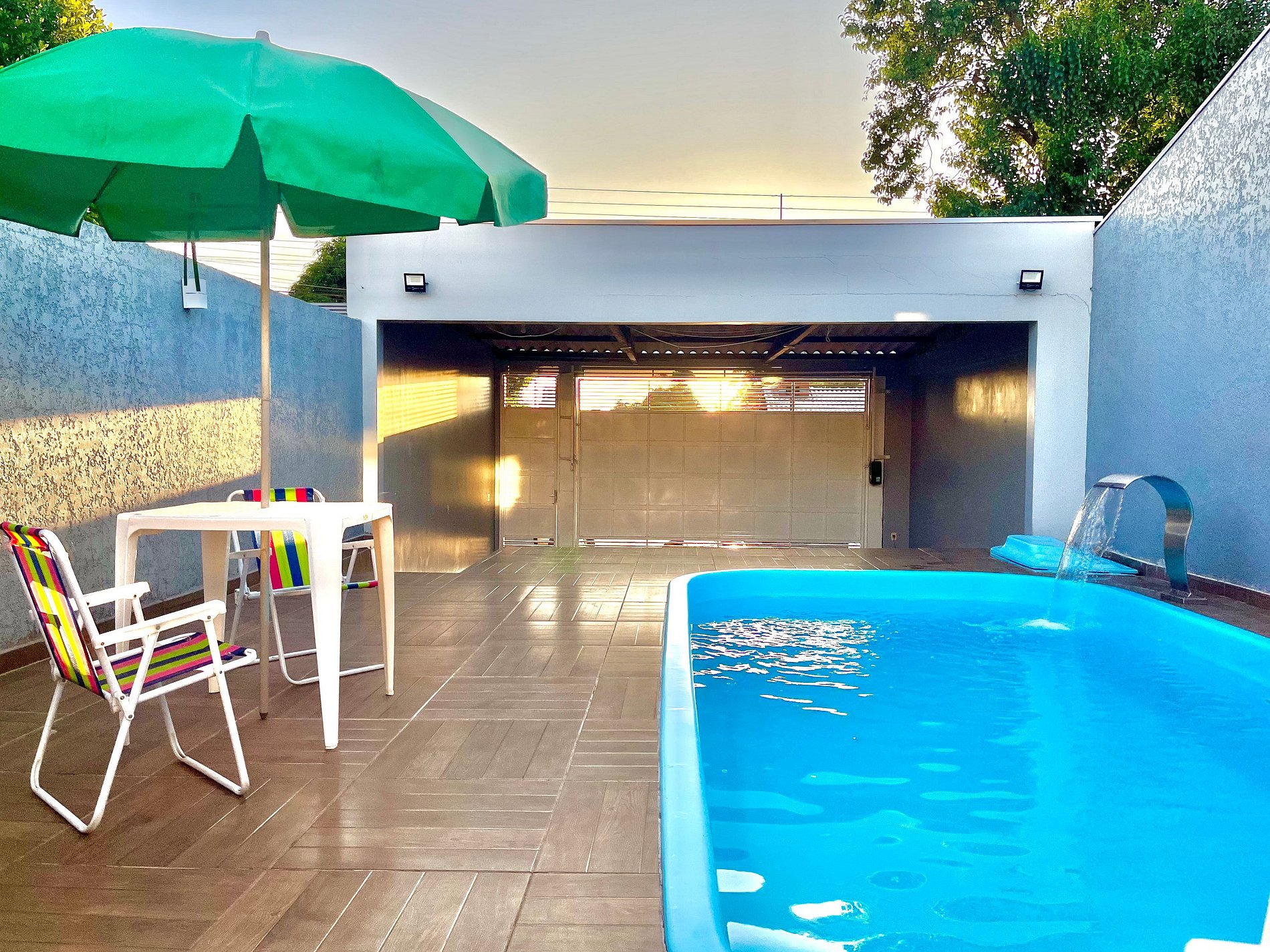 Excelente casa para até 5 pessoas com piscina e churrasqueira em ótima localização, aos arredores você encontra SuperMercado, farmácia, Posto de Combustível, banco, restaurantes, e comercial em Geral, estamos a 15 minutos das Cataratas, 10 minutos do Aeroporto e da Fronteira para a Argentina. Bairro familiar. Completa com todas as mobílias, roupas de cama e banho além dos utensílios domésticos. Quartos são climatizados, garagem e Wifi. Ótimo custo beneficio.