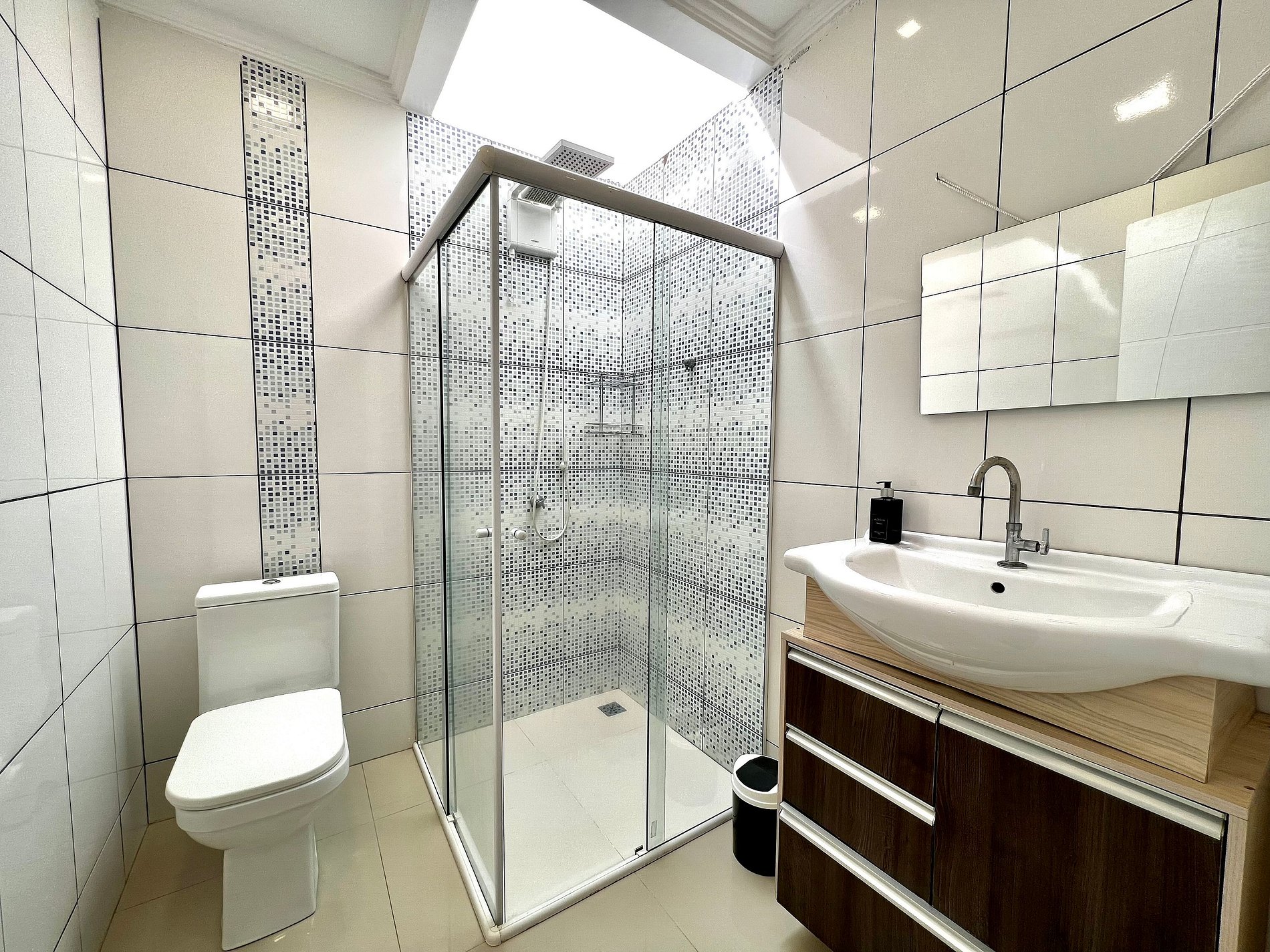 > 01 banheiro ao lado do segundo quarto e + 01 banheiro Lavabo na area da piscina.