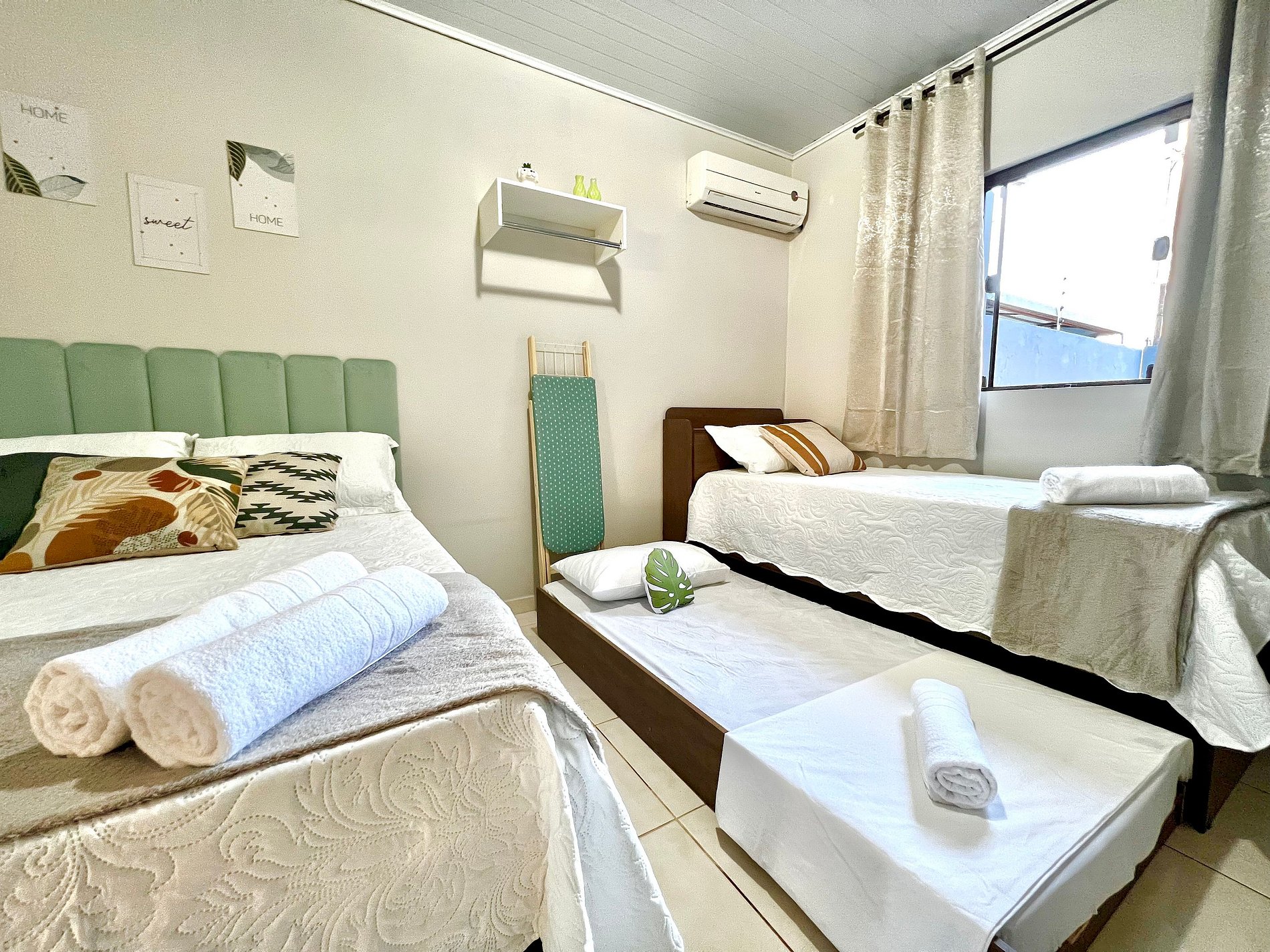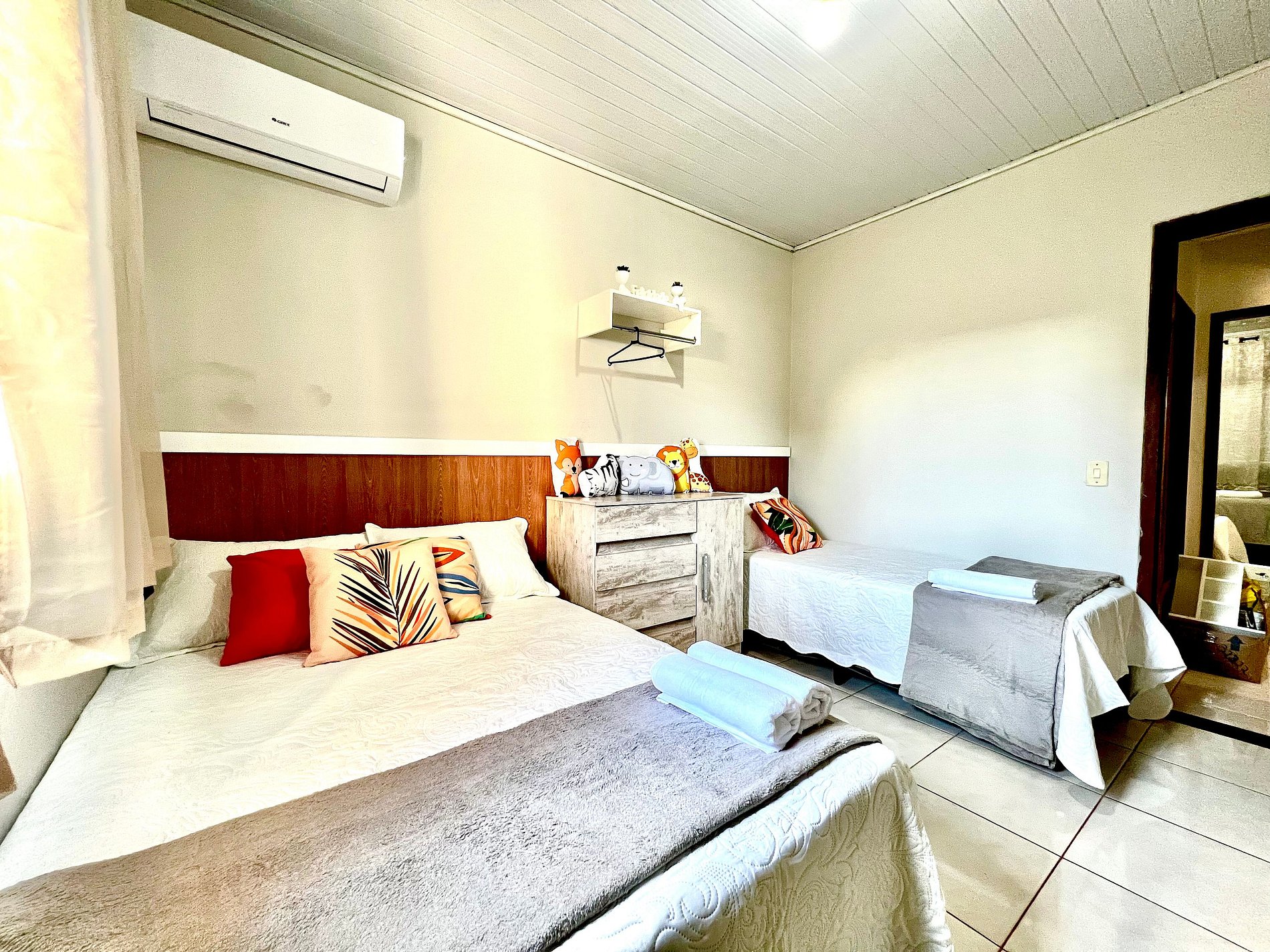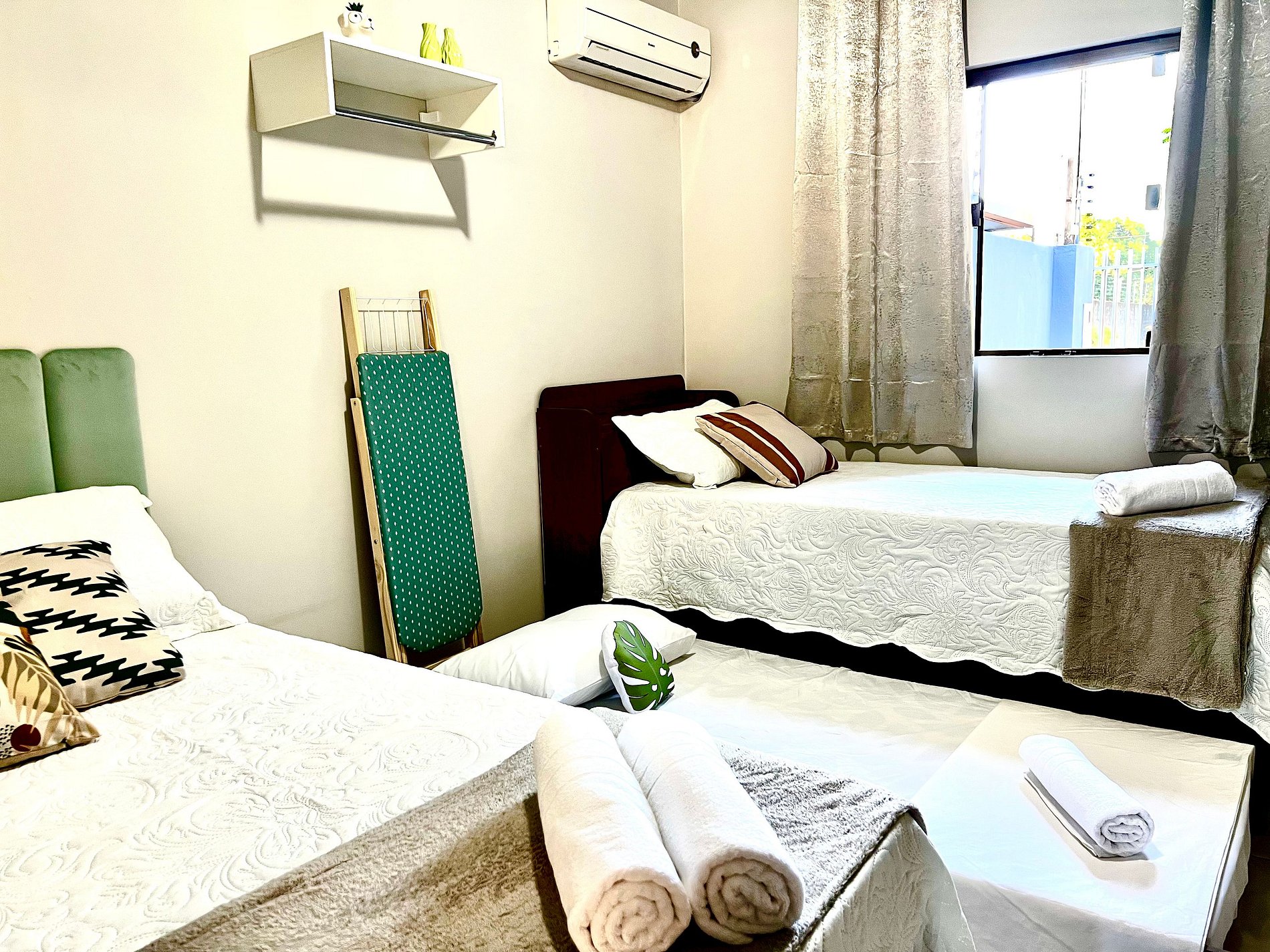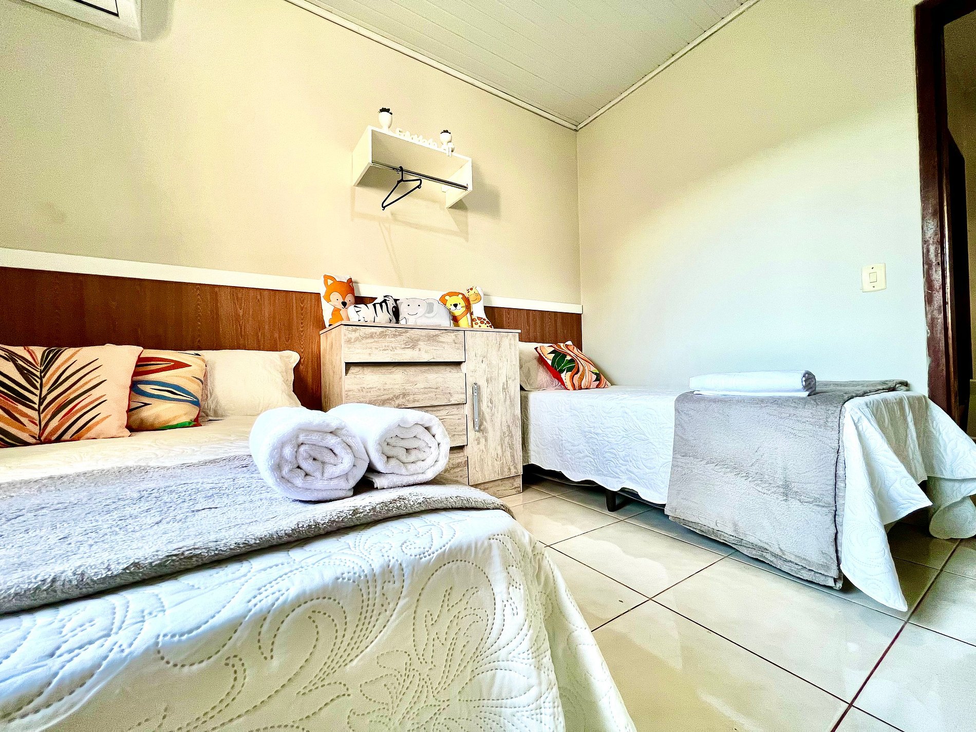 01 quarto com 01 cama de casal + 01 cama de solteiro