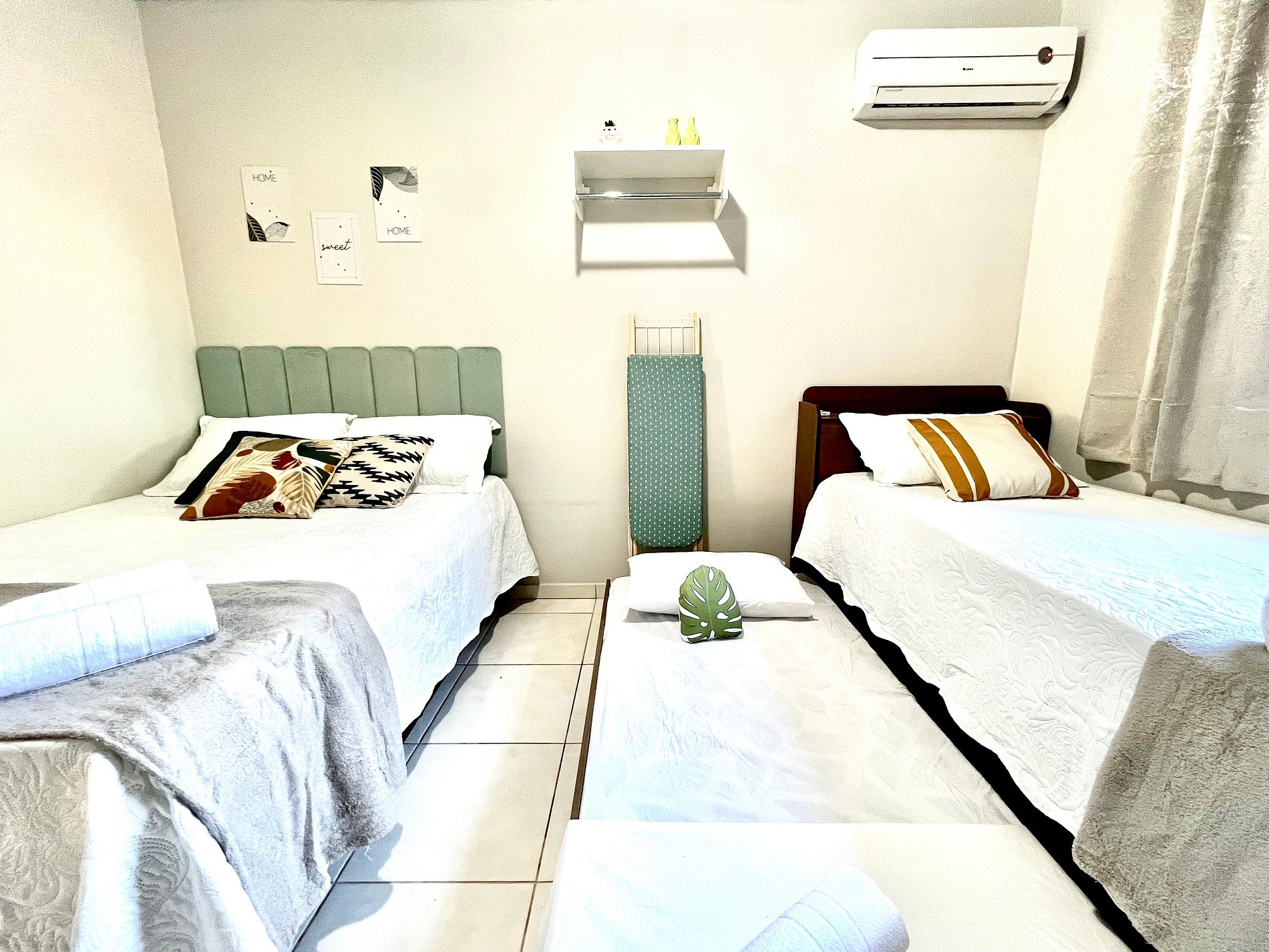 01 quarto com 01 cama de casal + 02 camas de solteiro