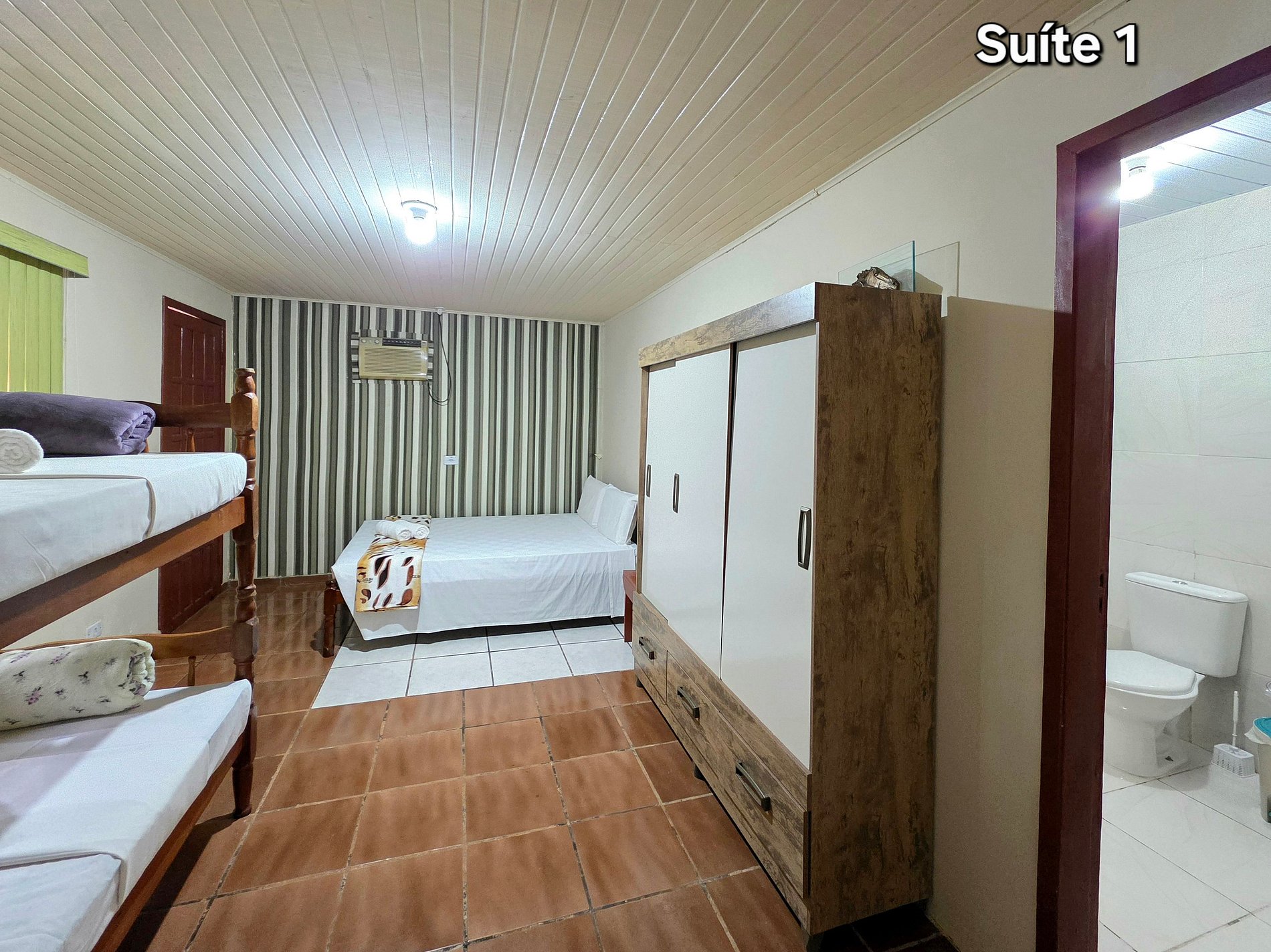 Suíte 01: 01 cama de casal + 01 beliche (com banheiro e ar condicionado)