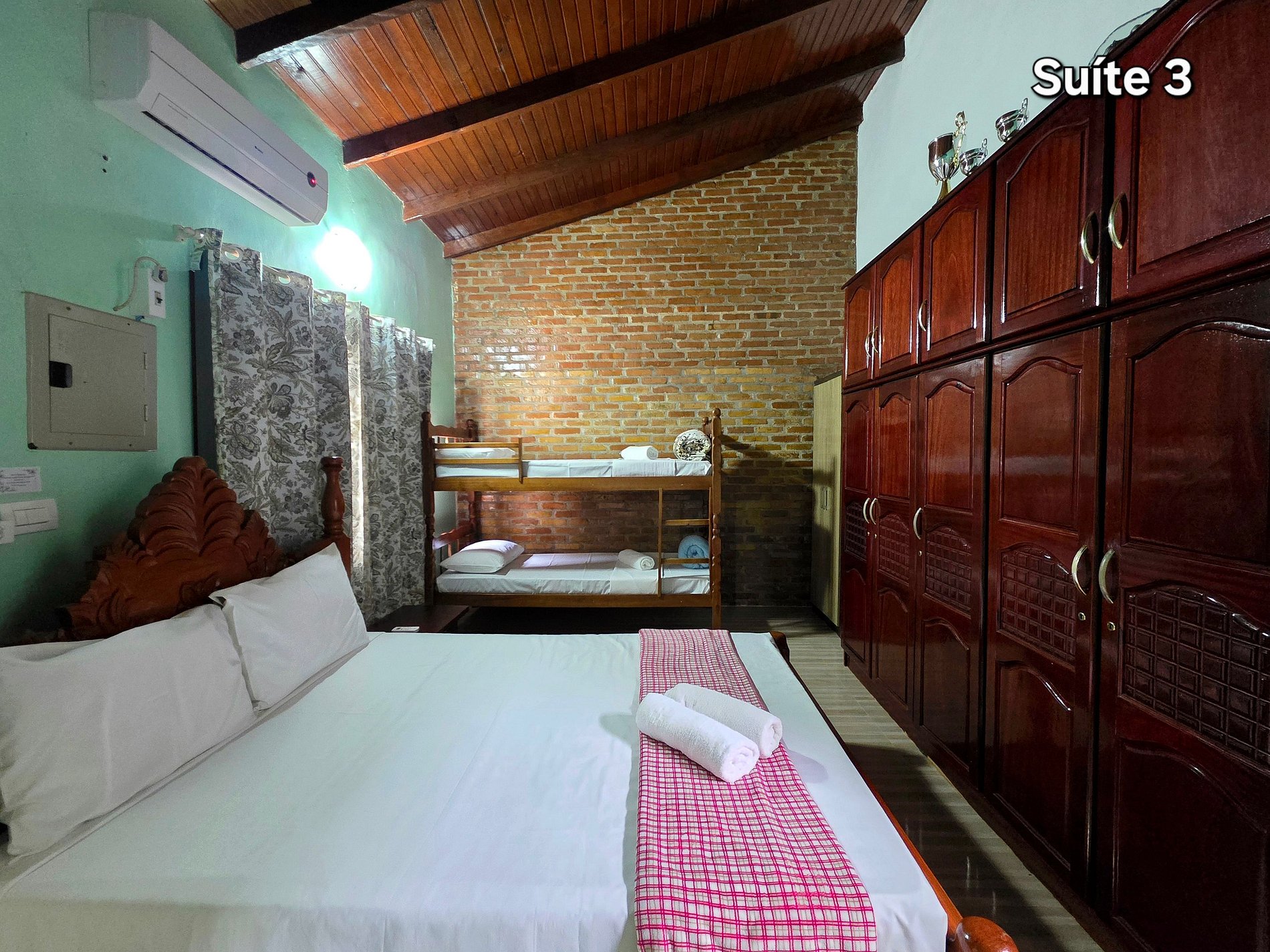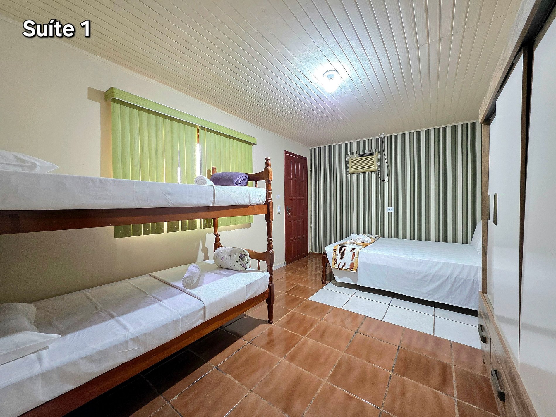 Suíte 01: 01 cama de casal + 01 beliche (com banheiro e ar condicionado)