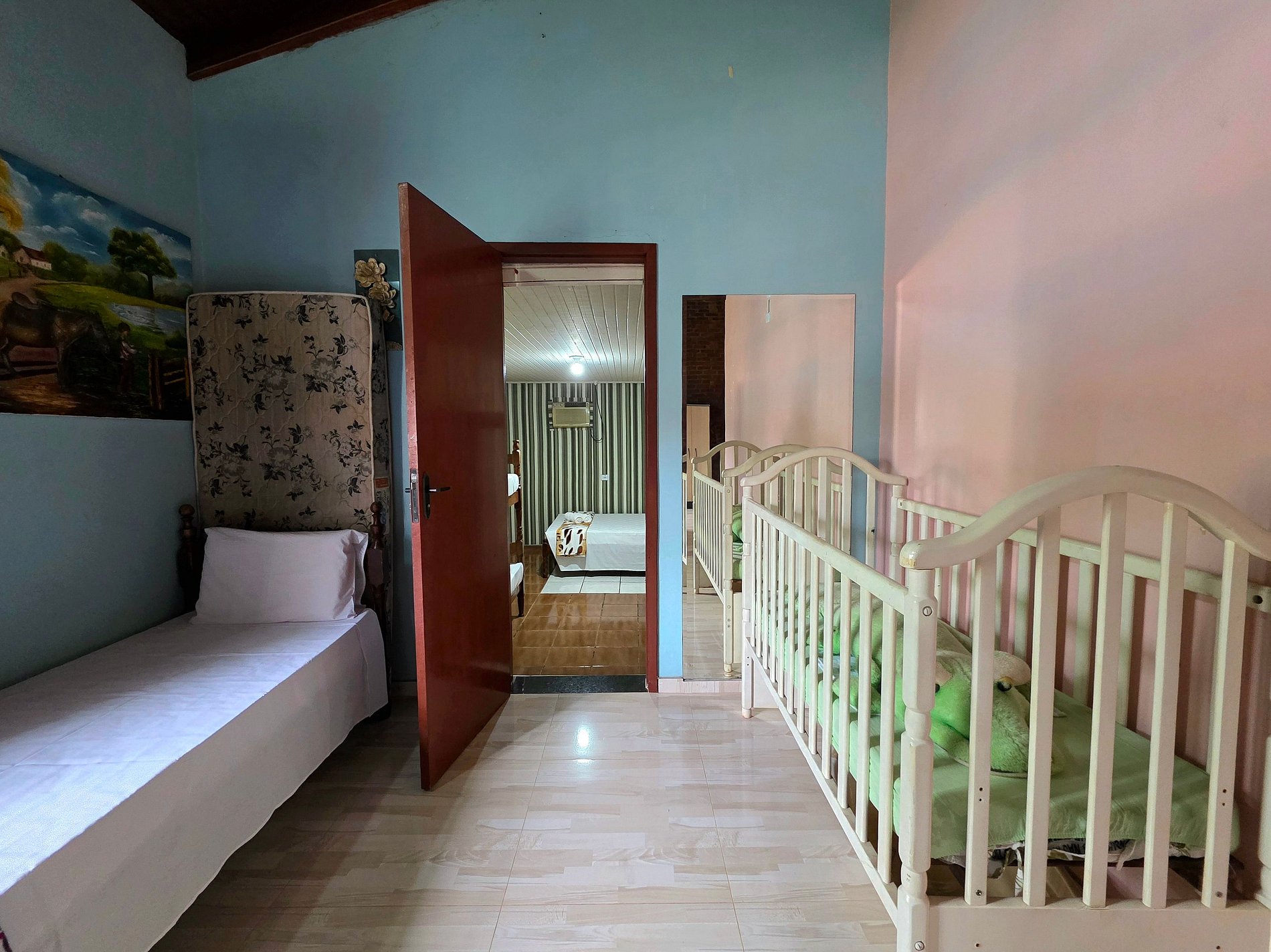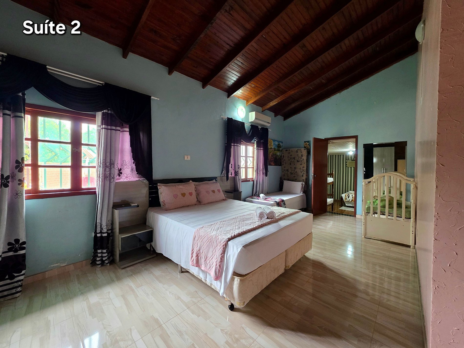 Suíte 02: 01 cama de casal + 01 cama de solteiro (com banheiro e ar condicionado)