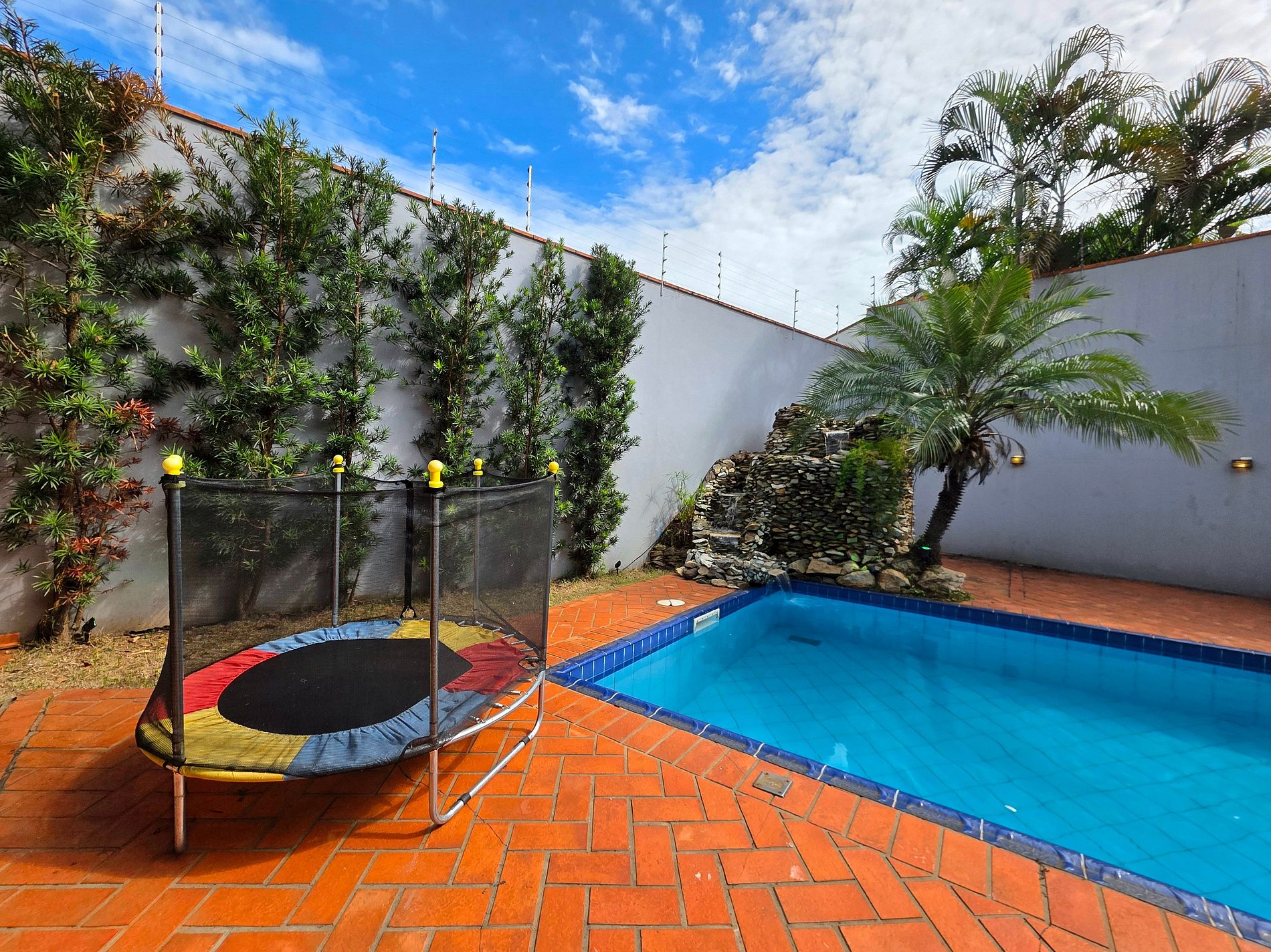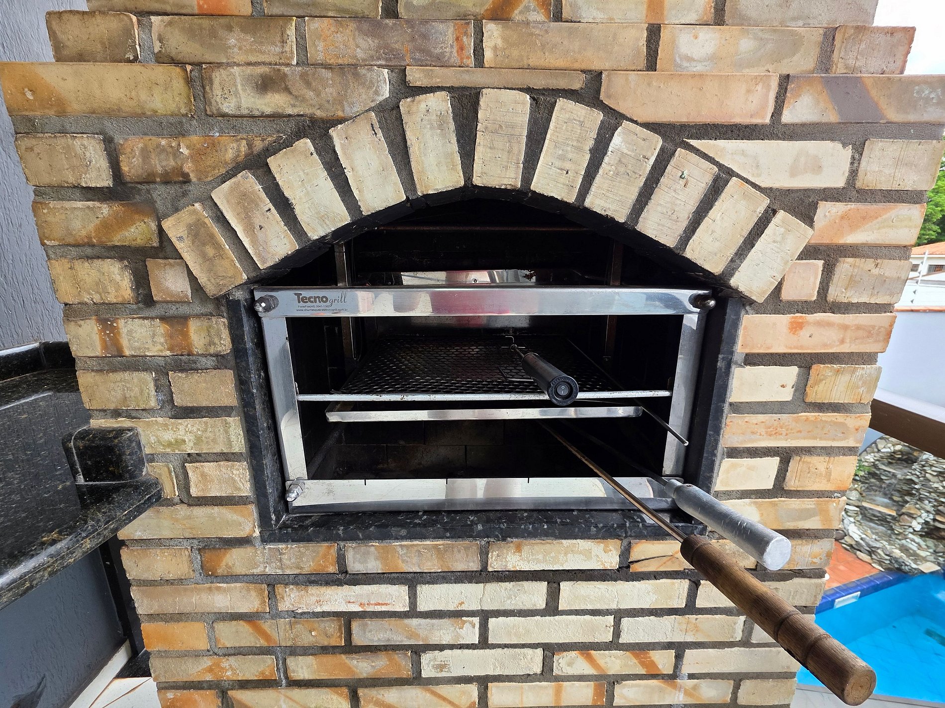 Na casa tem 2 churrasqueiras, sendo uma na sala e outra em uma area gourmet próxima da piscina.