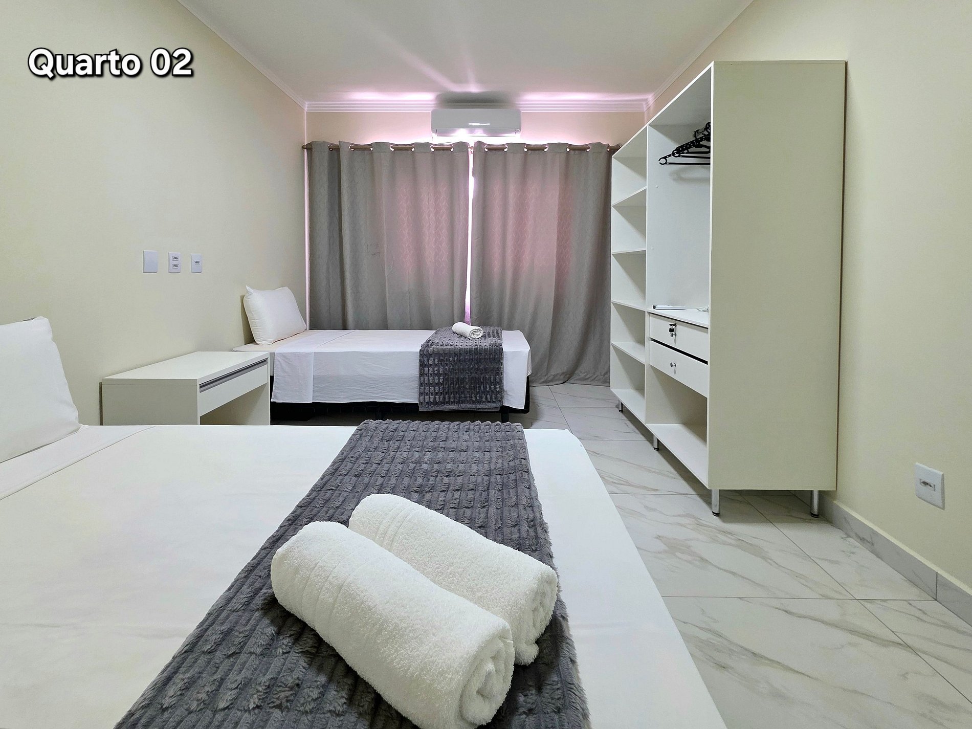 Quarto 02: 01 cama de casal + 01 cama de solteiro