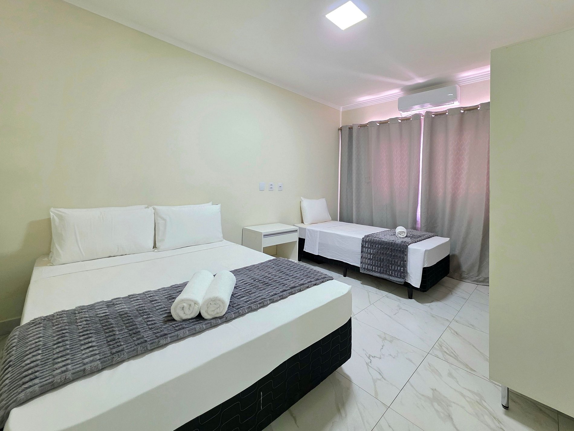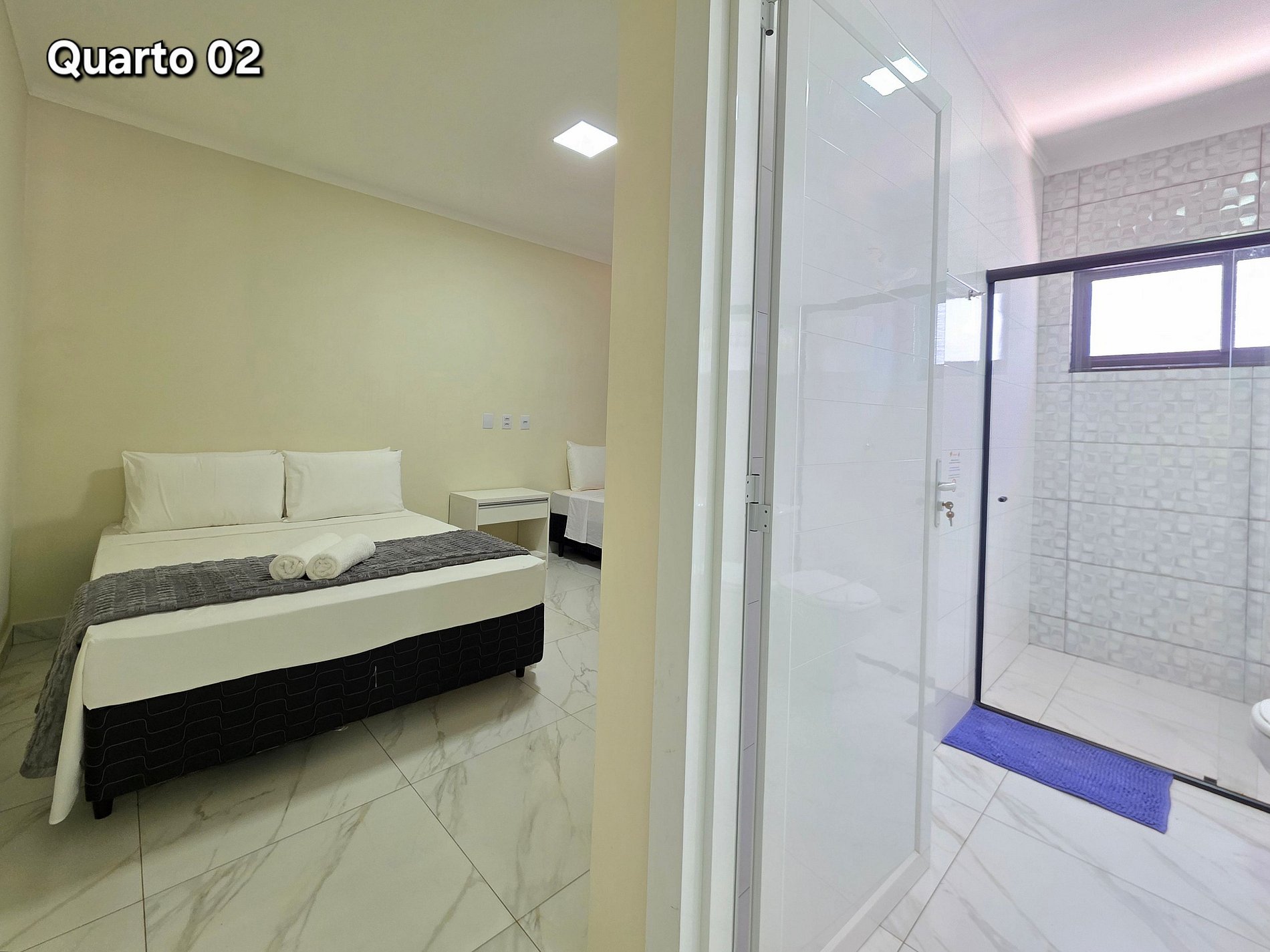 Quarto 01: Suíte com 01 cama de casal e 01 cama de solteiro (com banheiro)