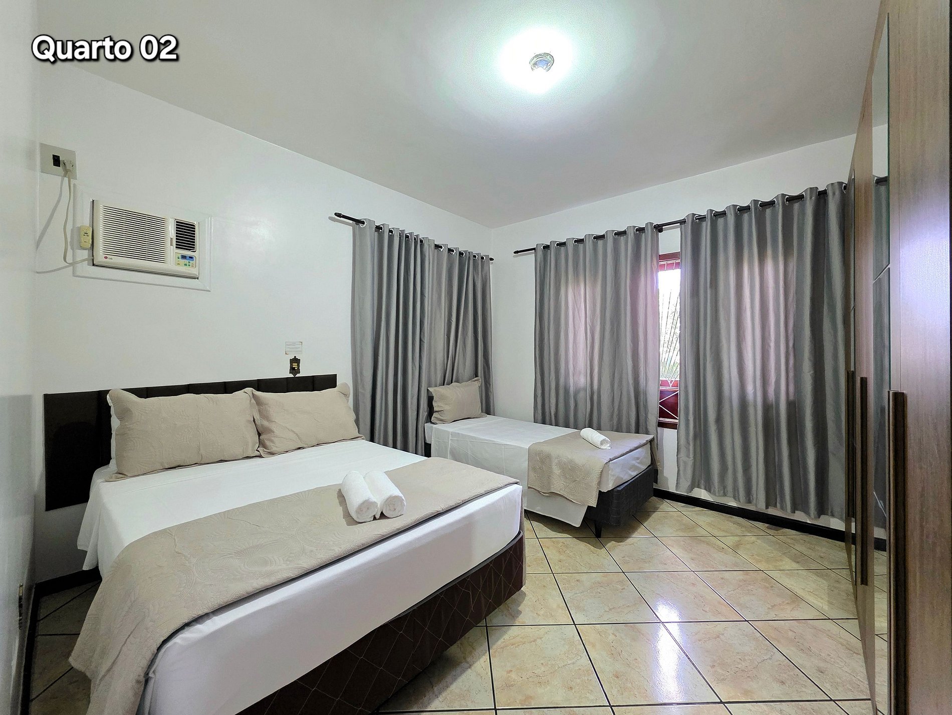 Quarto 02: 01 cama de casal + 01 cama de solteiro com ar condicionado