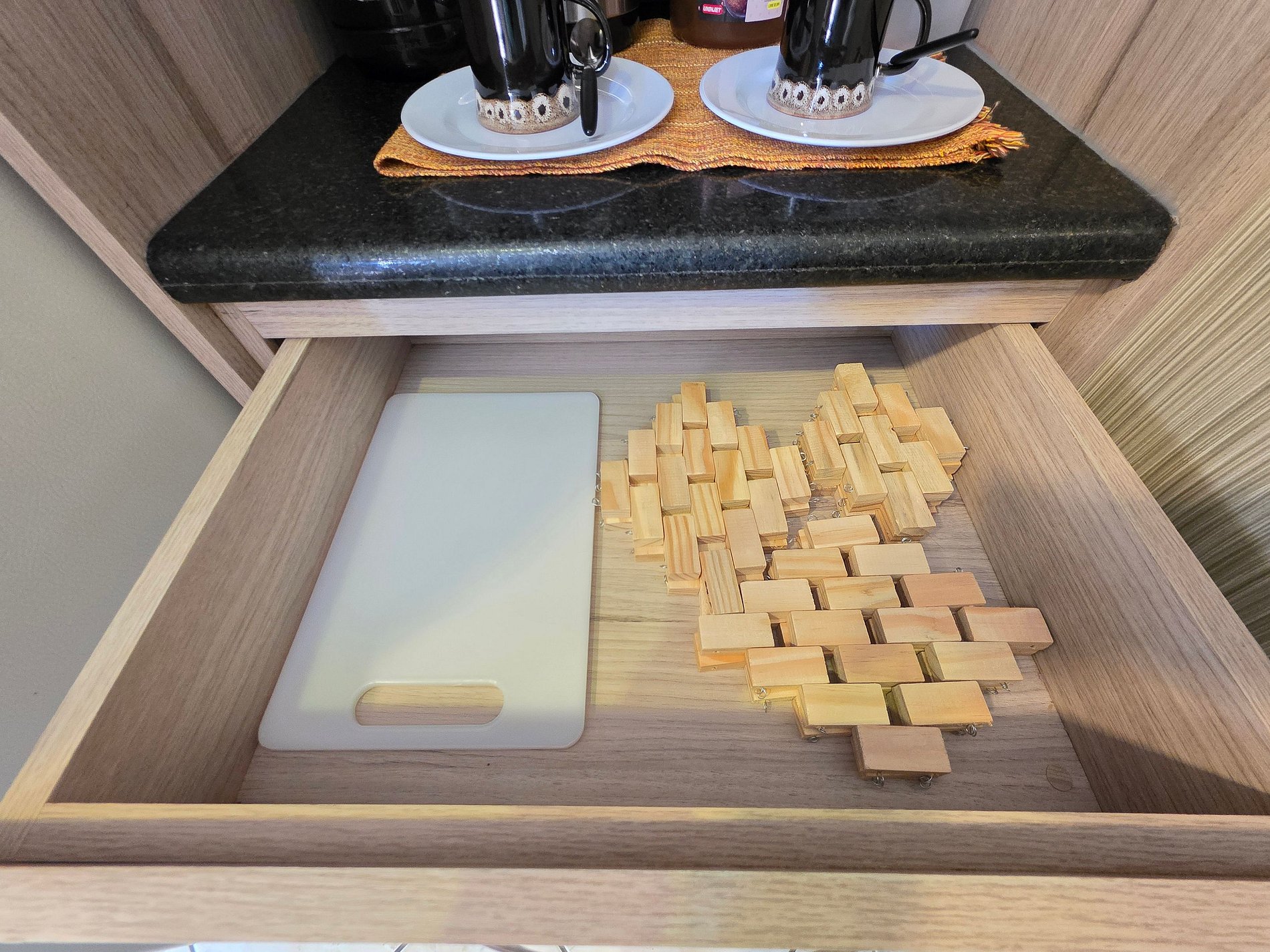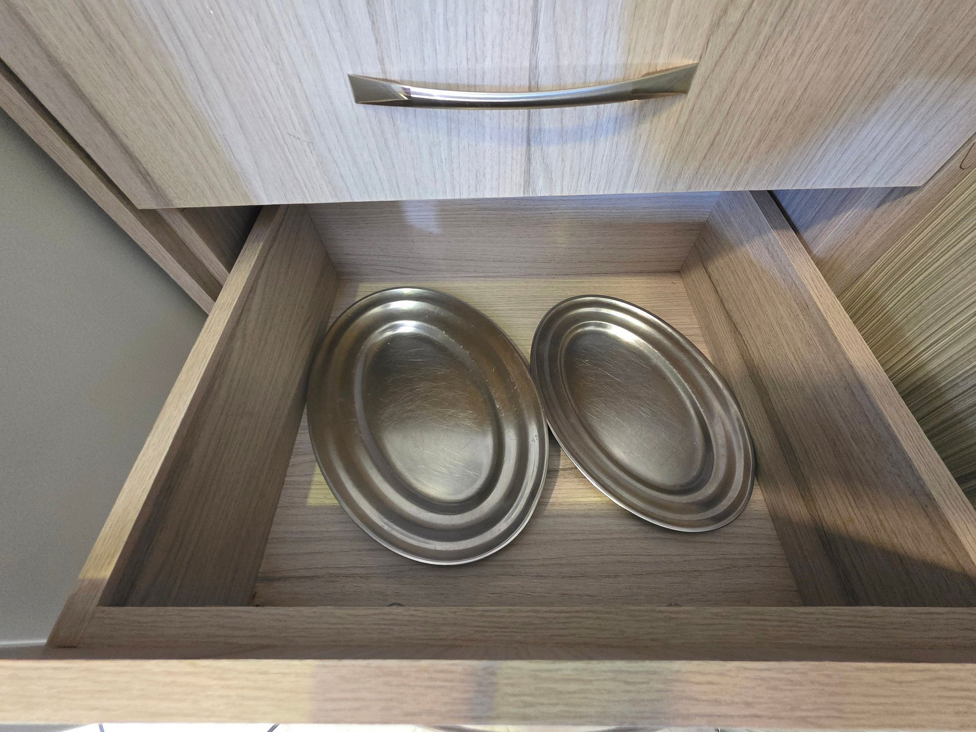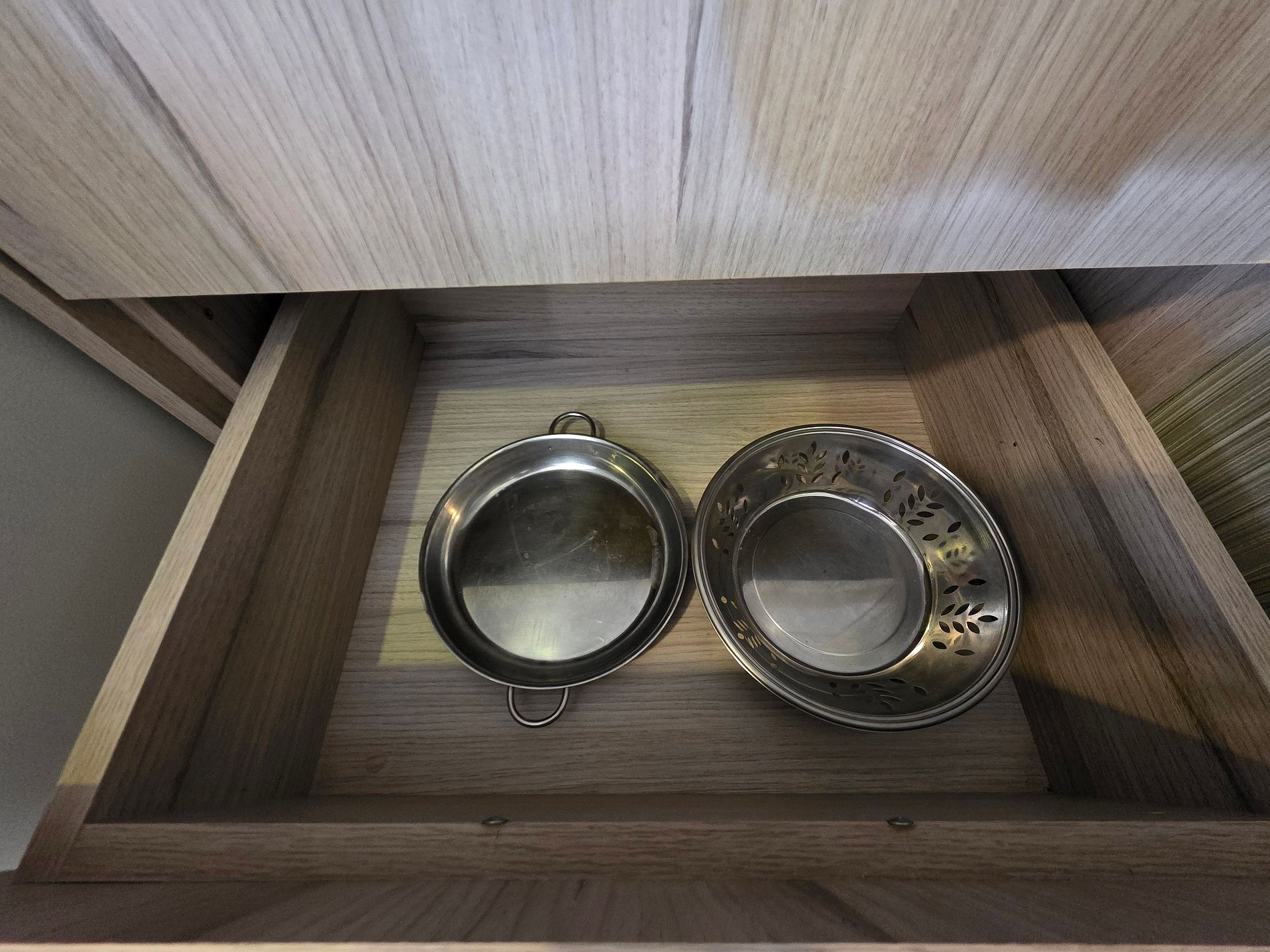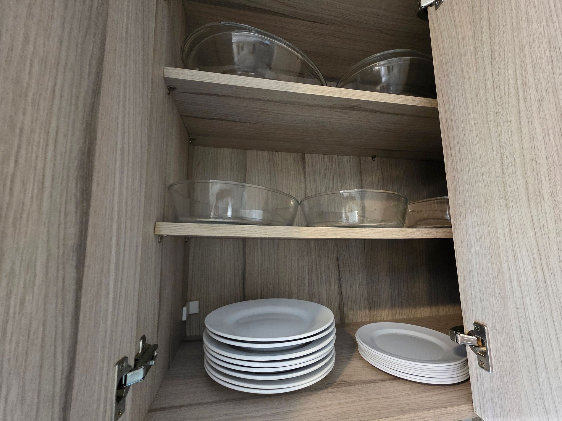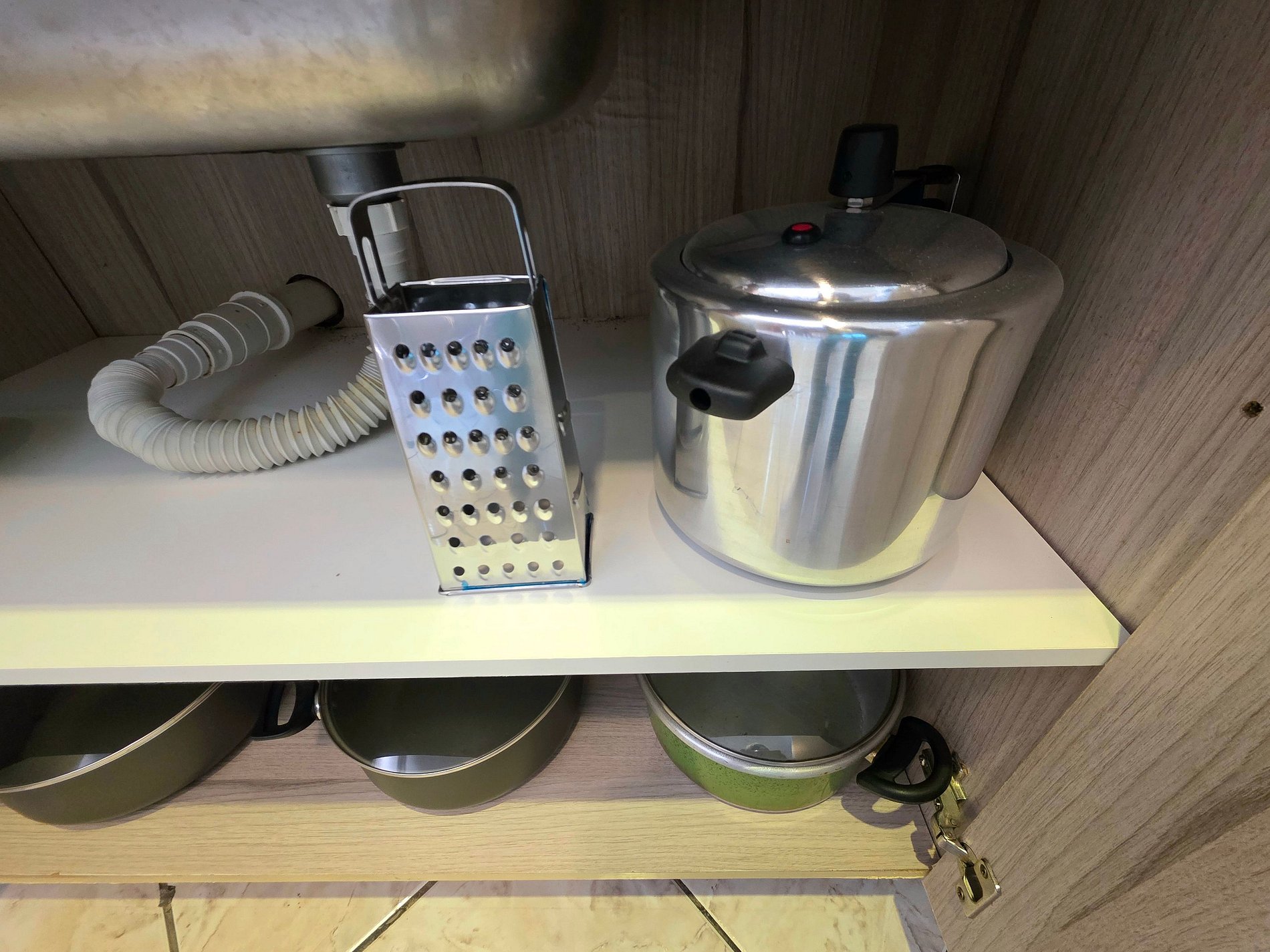 Cozinha completa com utensílios e louças para as refeições, fogão, microondas, sanduicheira, liquidificador.
