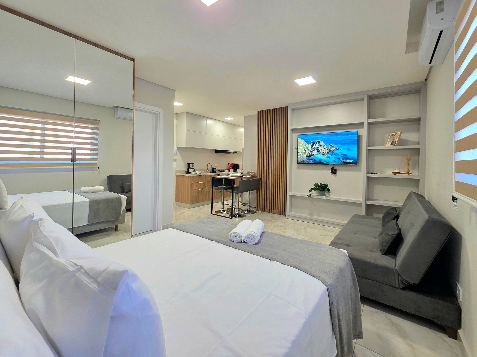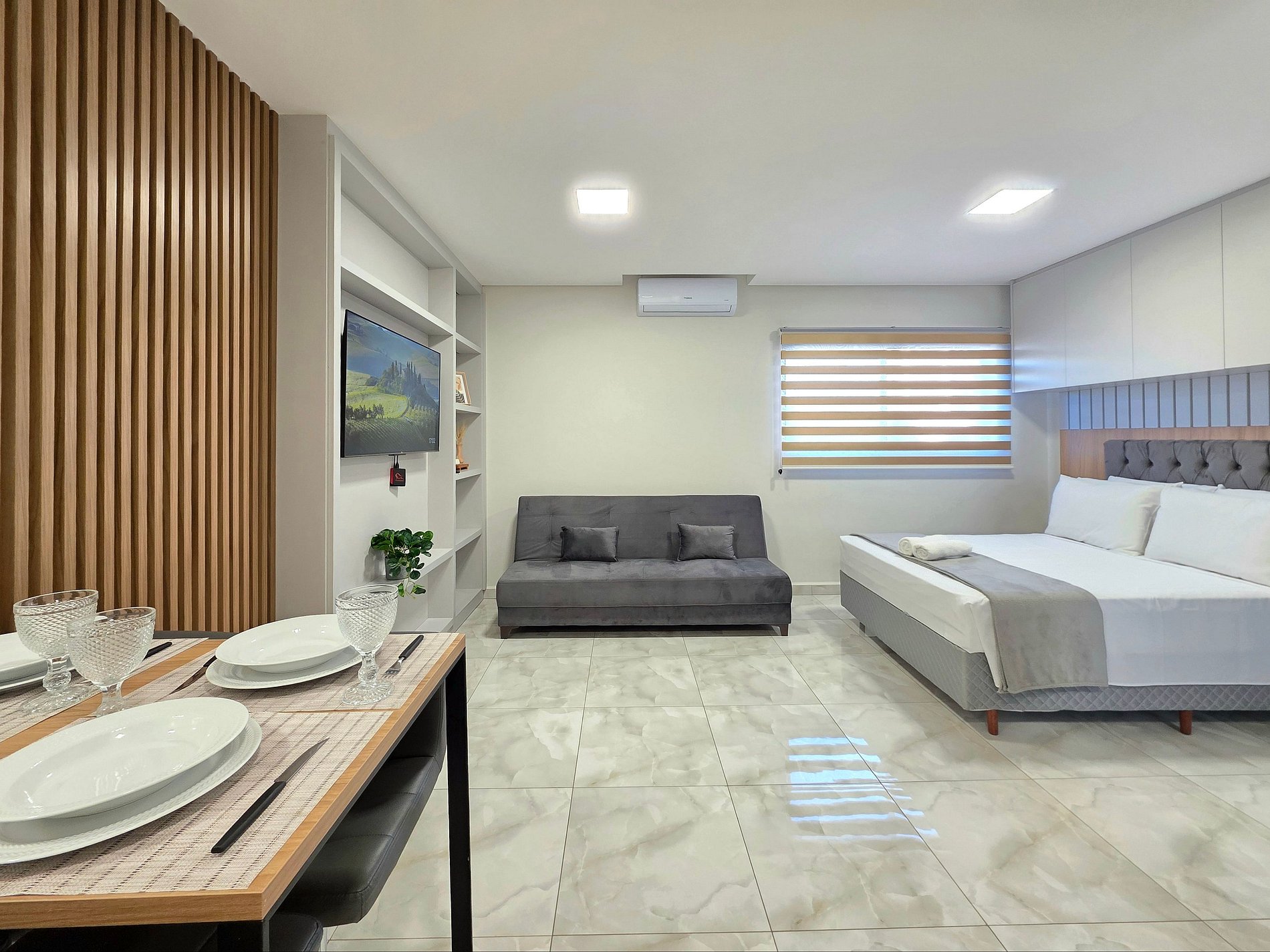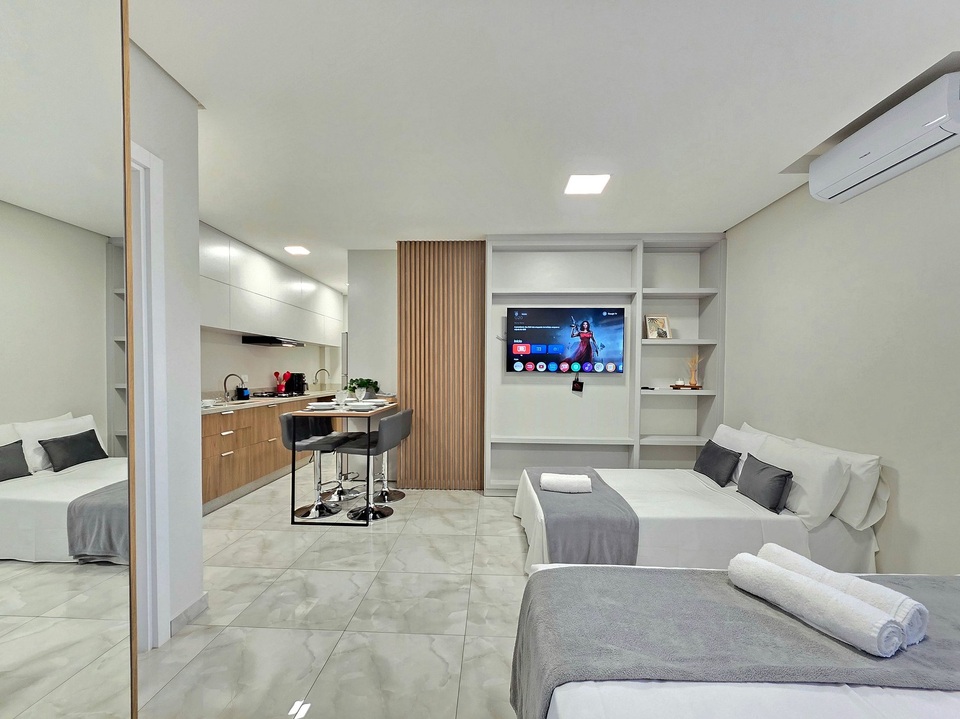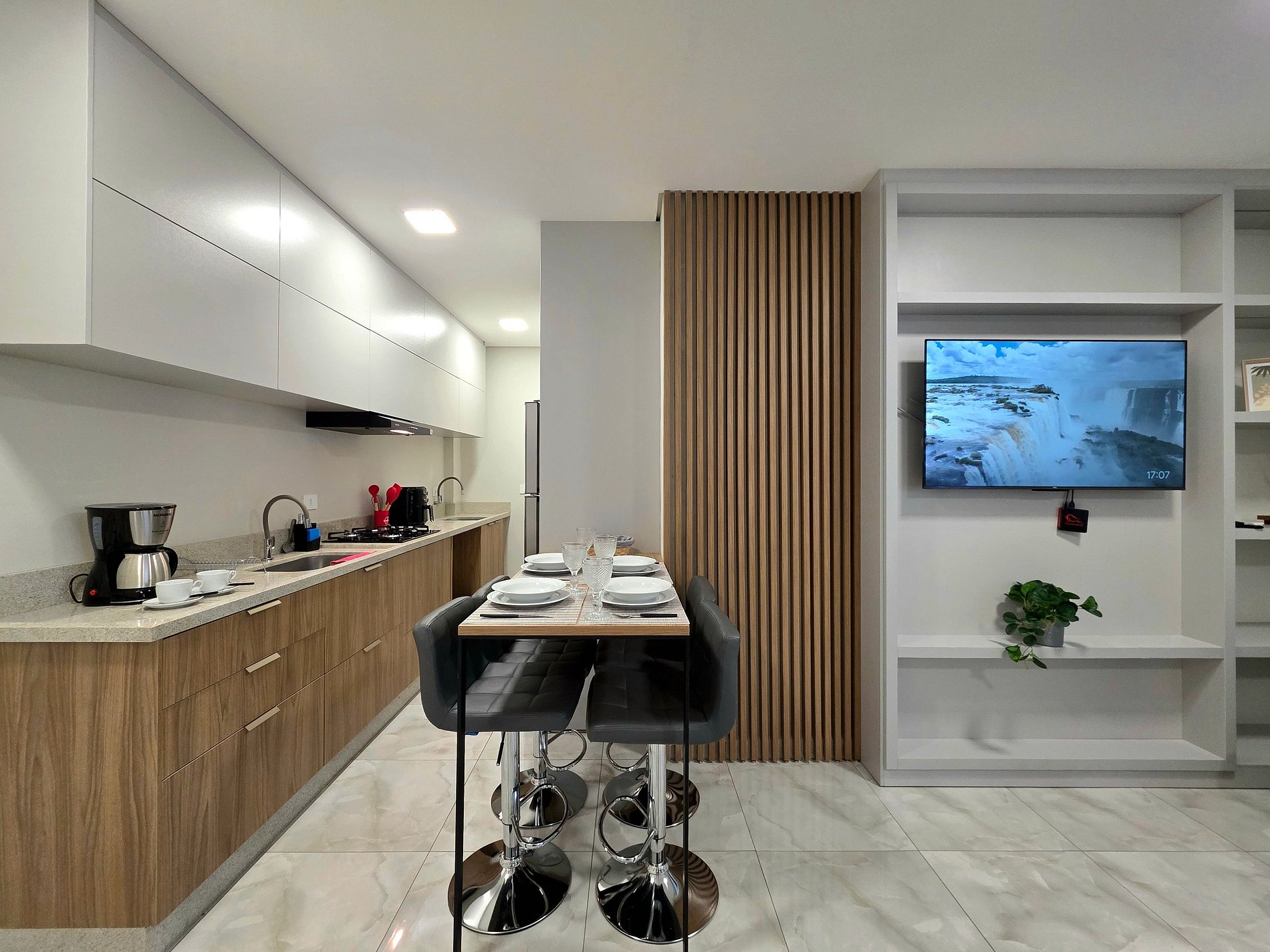 Apt studio recém construído, tudo novo e de bom gosto, Localização no coração de Foz, central, próximo todo tipo de comércio, 20 a 25 minutos do Aeroporto, Cataratas, 10 min Paraguai. Incluso roupa de cama e toalhas de banho. Equipada com os utensílios para cozinhar. Wi-Fi de qualidade. Edificio com elevador. Somos anfitriões comprometidos para que você tenha uma excelente estadia.