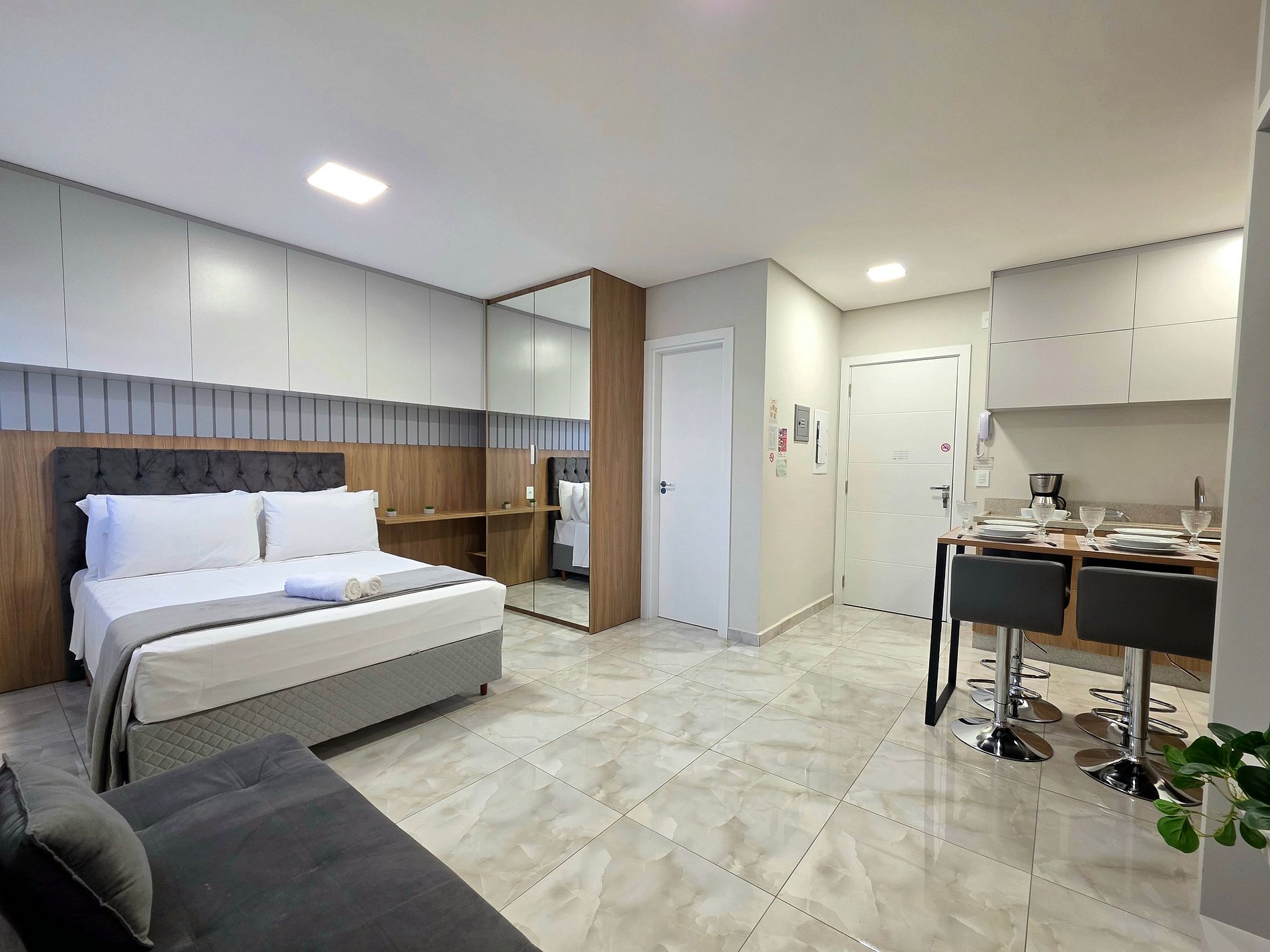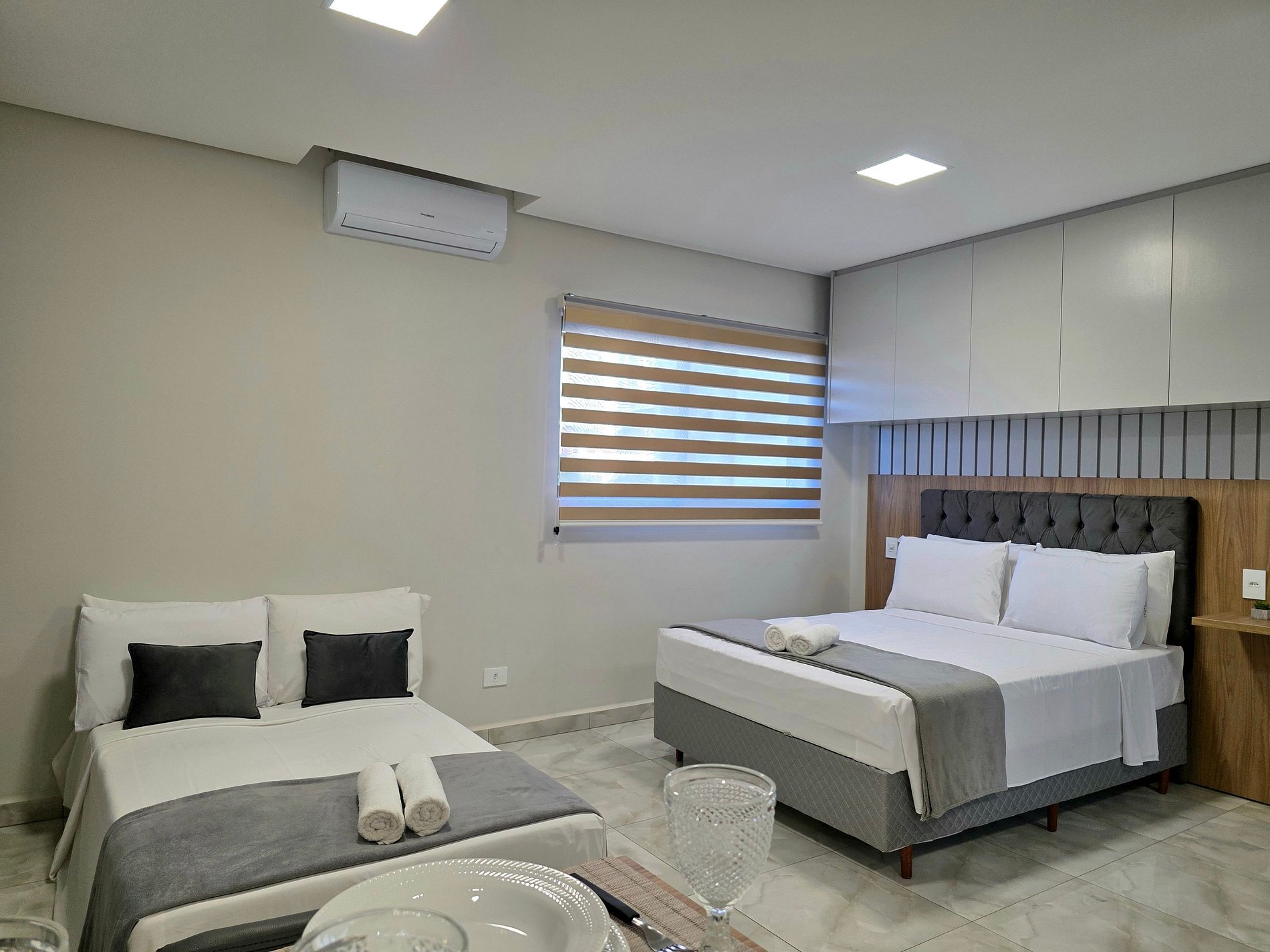 Apt studio recém construído, tudo novo e de bom gosto, Localização no coração de Foz, central, próximo todo tipo de comércio, 20 a 25 minutos do Aeroporto, Cataratas, 10 min Paraguai. Incluso roupa de cama e toalhas de banho. Equipada com os utensílios para cozinhar. Wi-Fi de qualidade. Edificio com elevador. Somos anfitriões comprometidos para que você tenha uma excelente estadia.