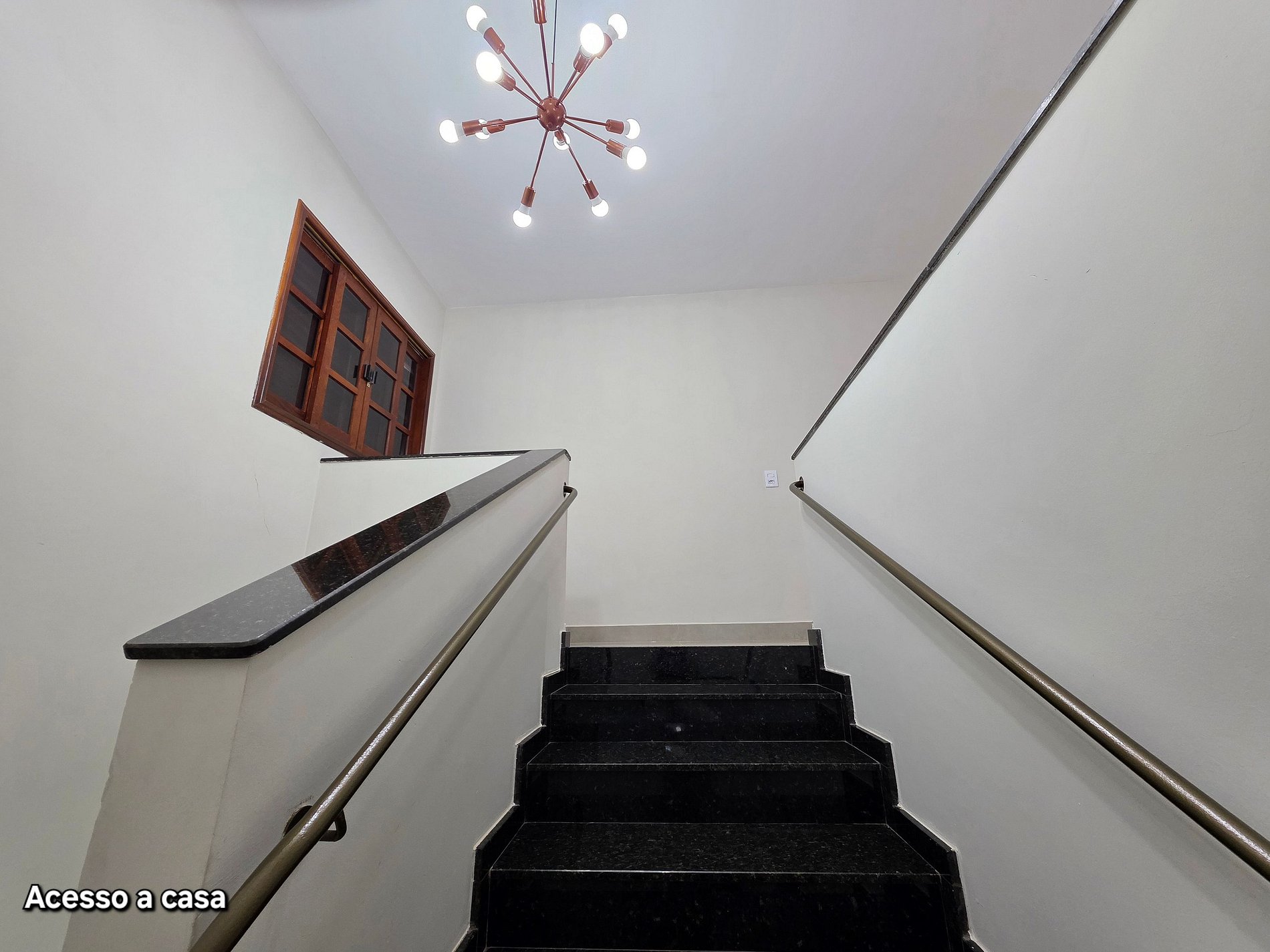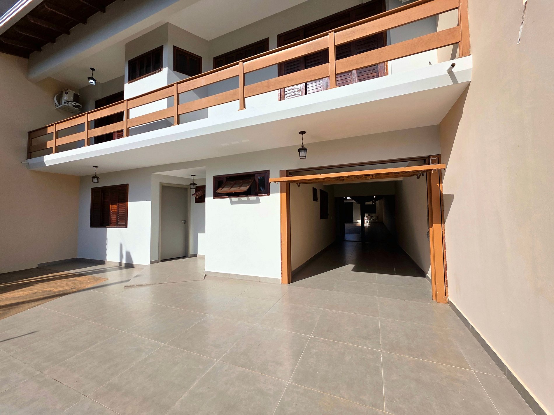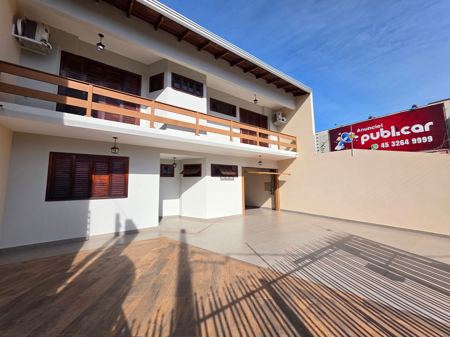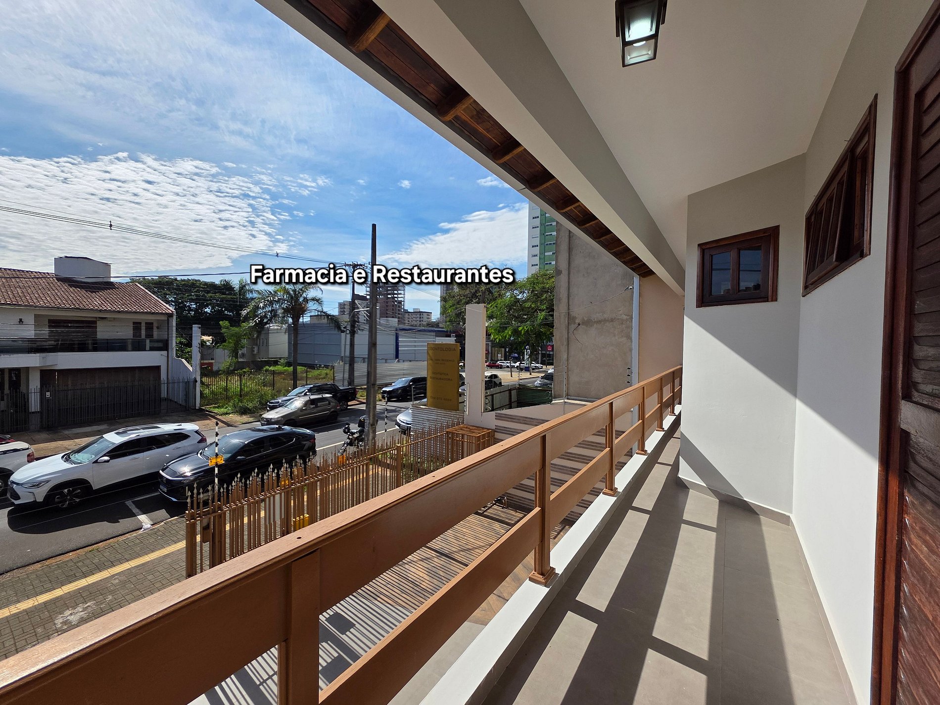 A casa está no andar superior do sobrado com a área de lazer aos fundos. Em frente ao lado esquerdo o consultório da proprietária, mas sem acesso a casa.