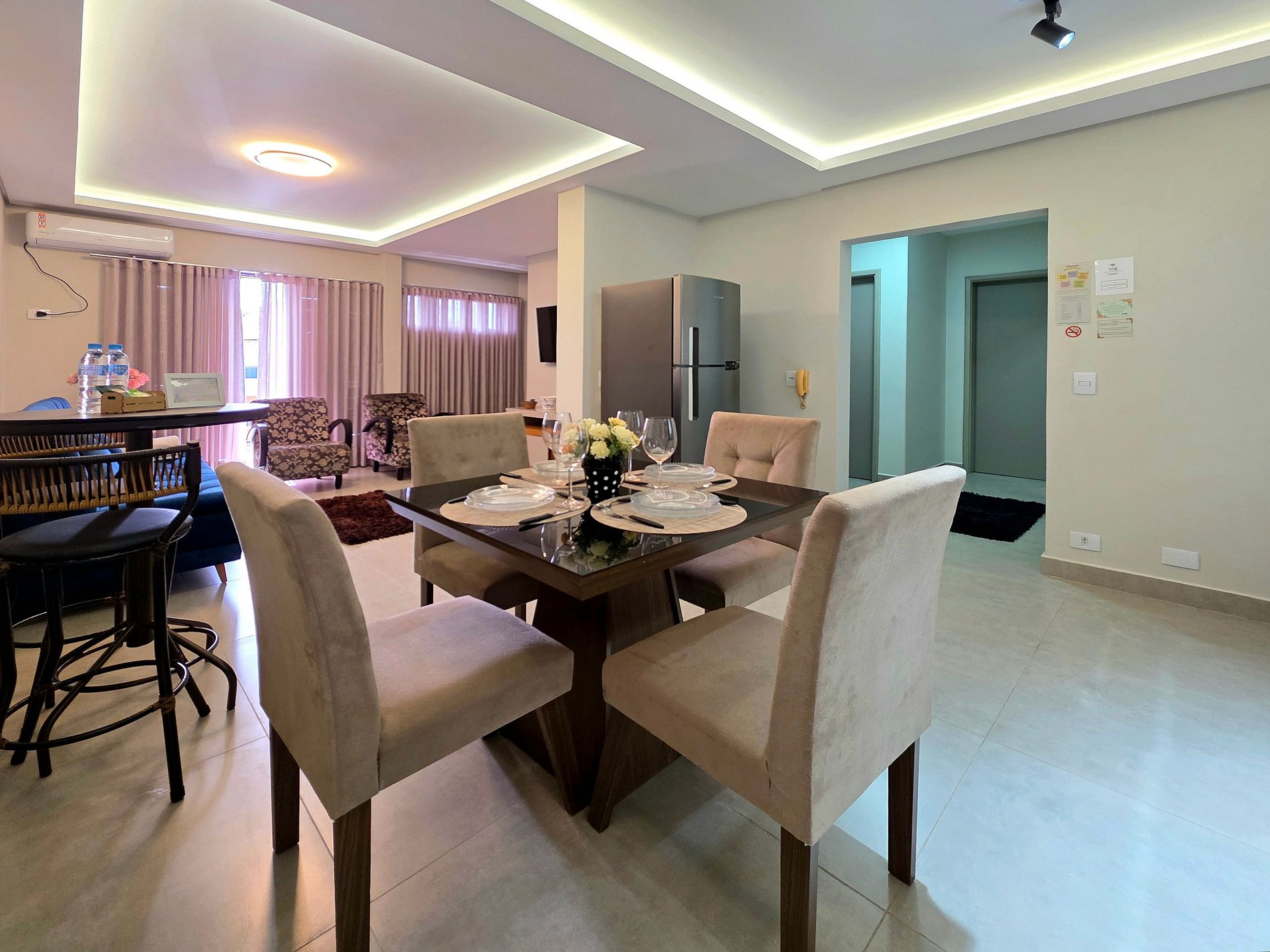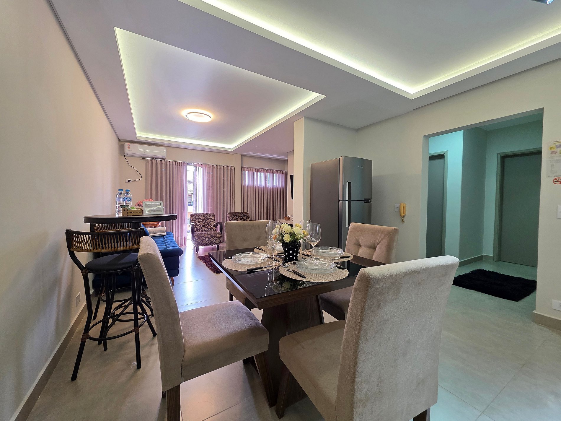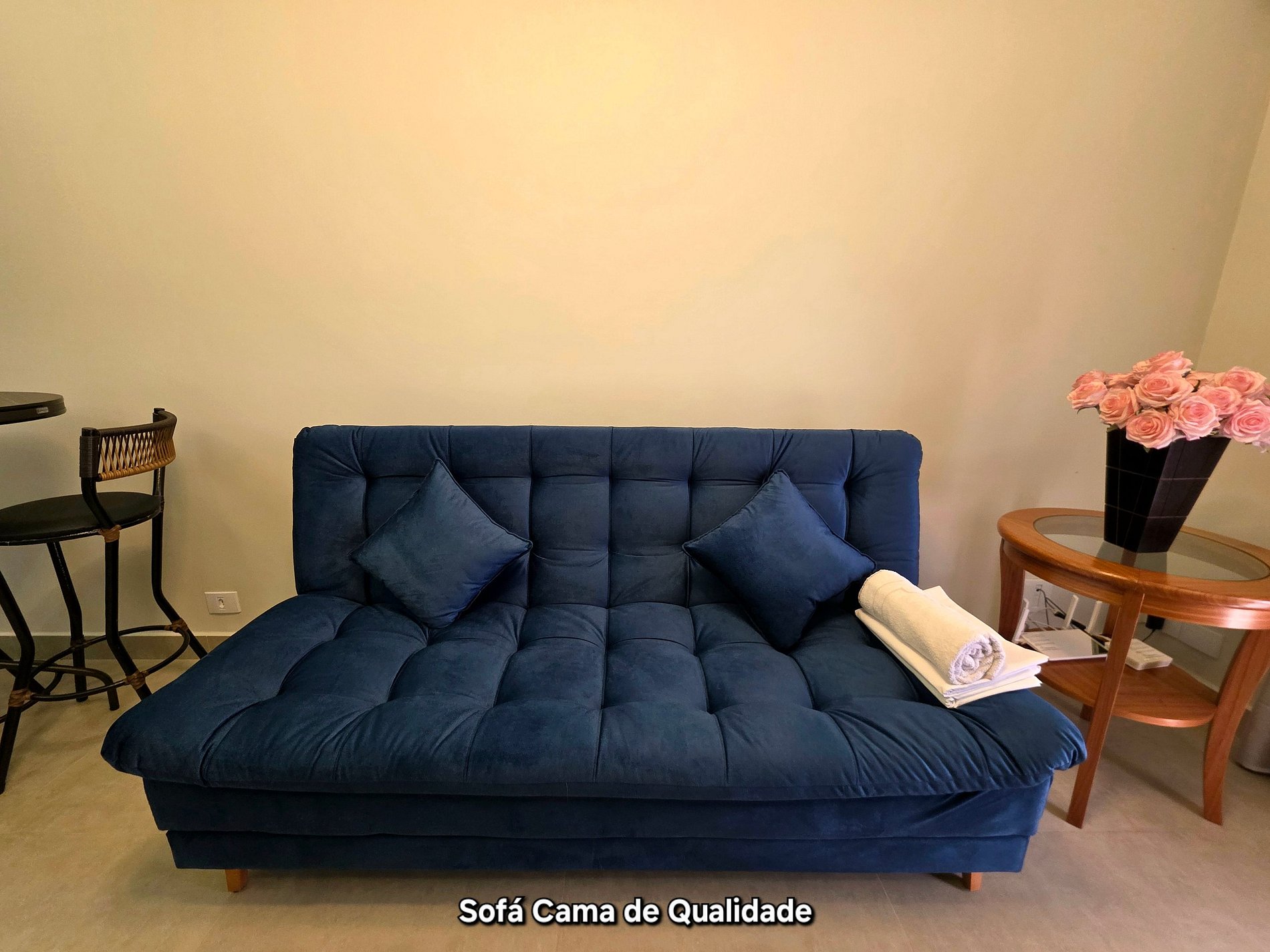Sala com sofá cama de qualidade para 02 pessoas, deixamos roupas também quando forem utilizar. (Sala com ar condicionado)