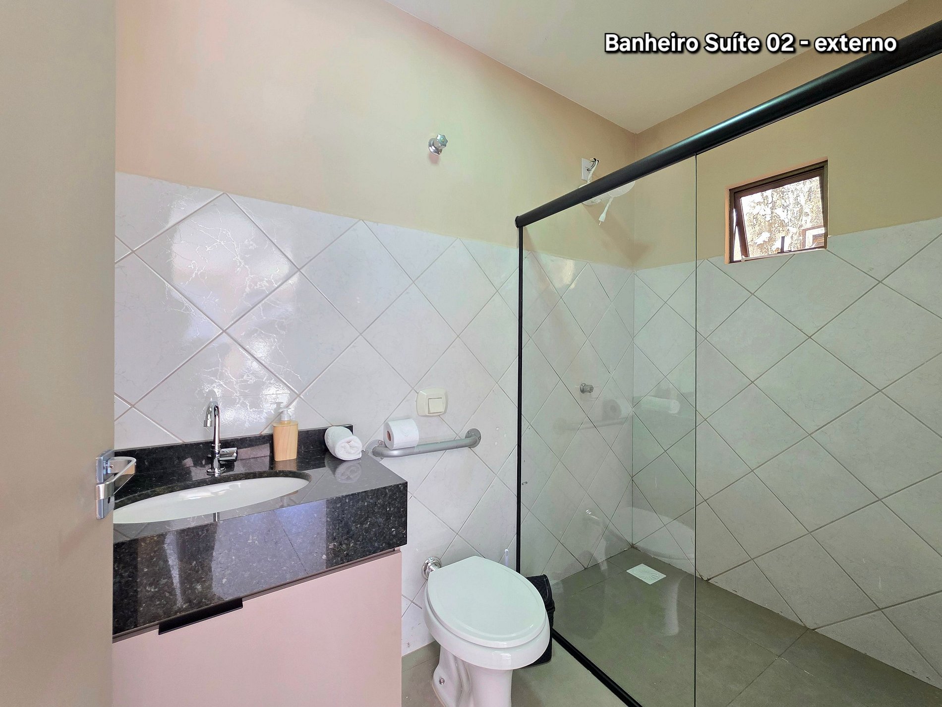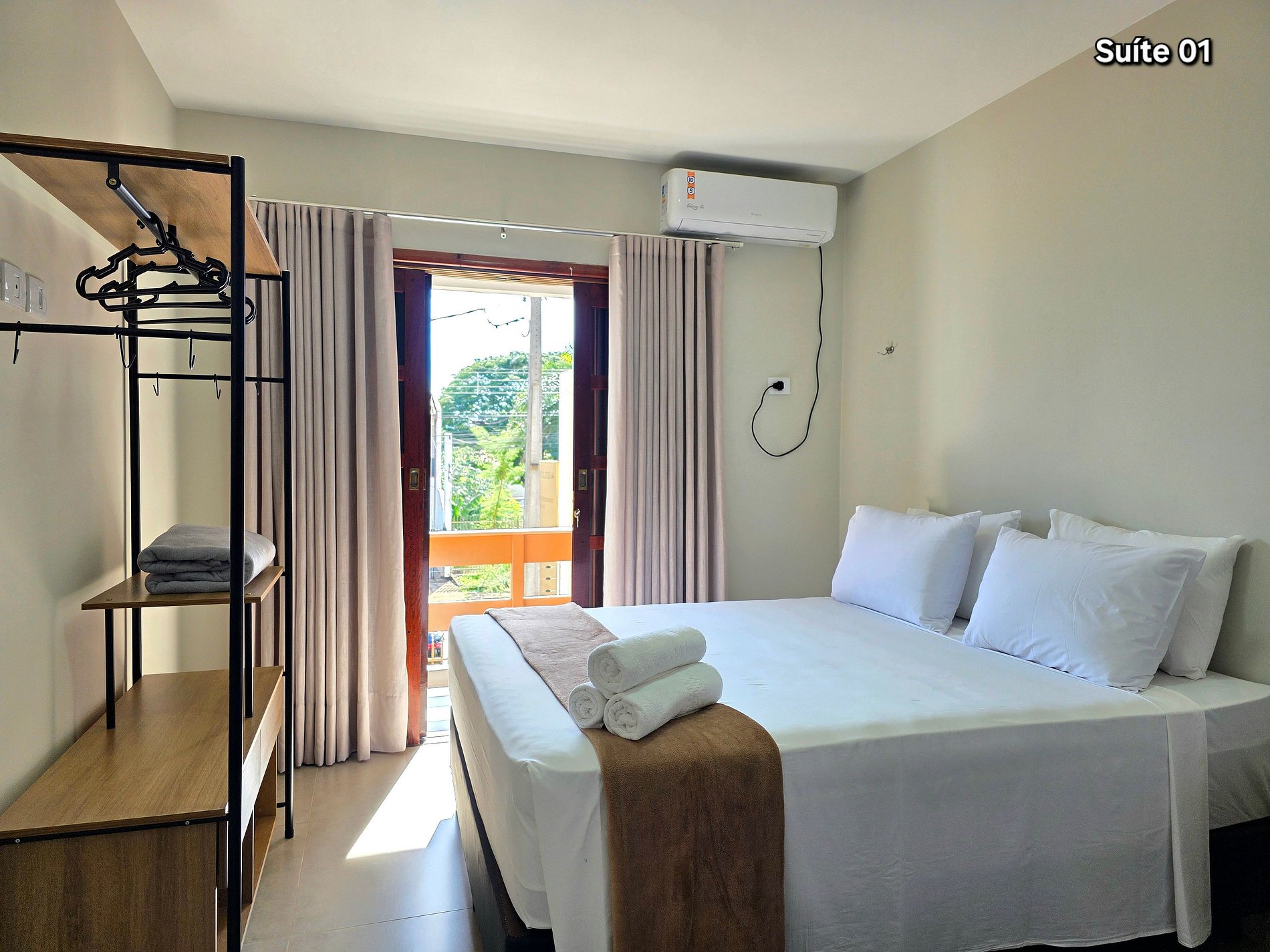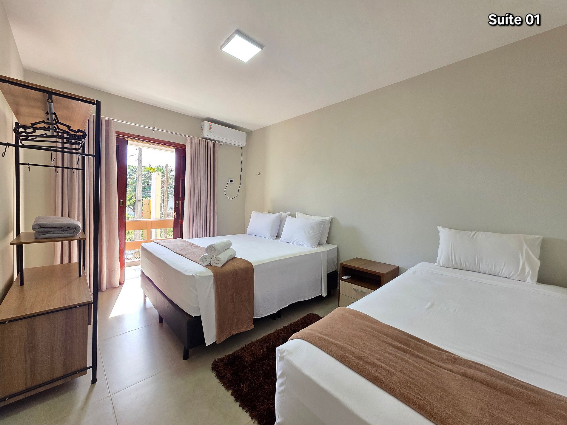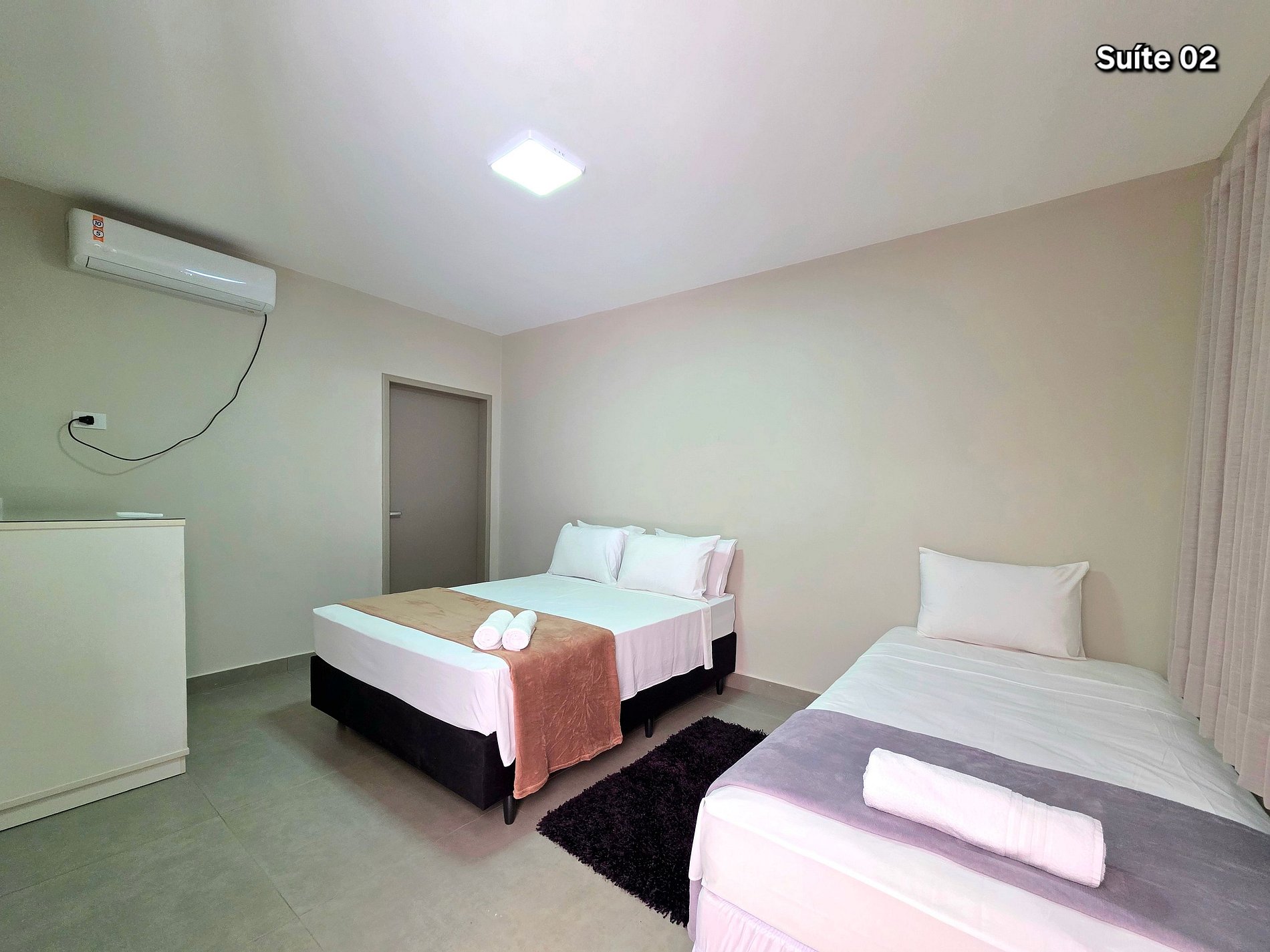 01 suíte com 01 cama de casal queensize + 01 cama de solteiro (com banheiro)