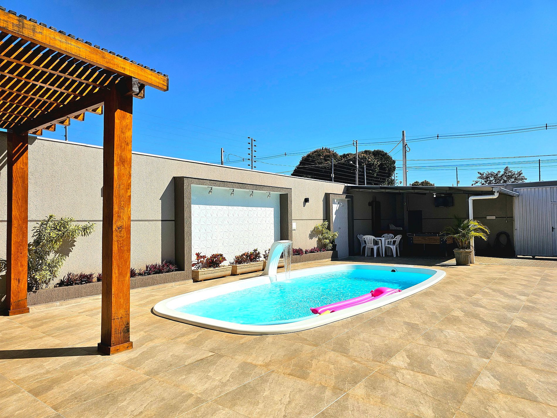 Linda propriedade recém construída com uma área de lazer excelente para família e amigos com piscina, mesa de sinuca e pebolim, 10 minutos do Paraguai e da Itaipu, 20 minutos das Cataratas e Argentina. Para até 8 pessoas, com roupa de cama e toalha de banho, seu PET é bem-vindo. Equipada com utensílios, Churrasqueira com espetos giratórios, Cervejeira a disposição, Casa muito TOP. Garagem com portão eletrônico e Wi-Fi. Bairro seguro com supermercado. Somos anfitriões comprometidos com você.