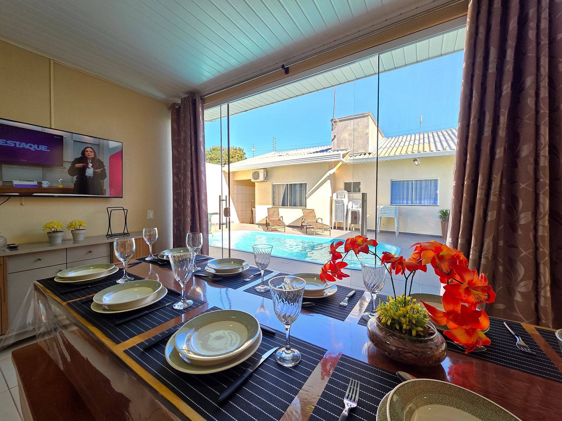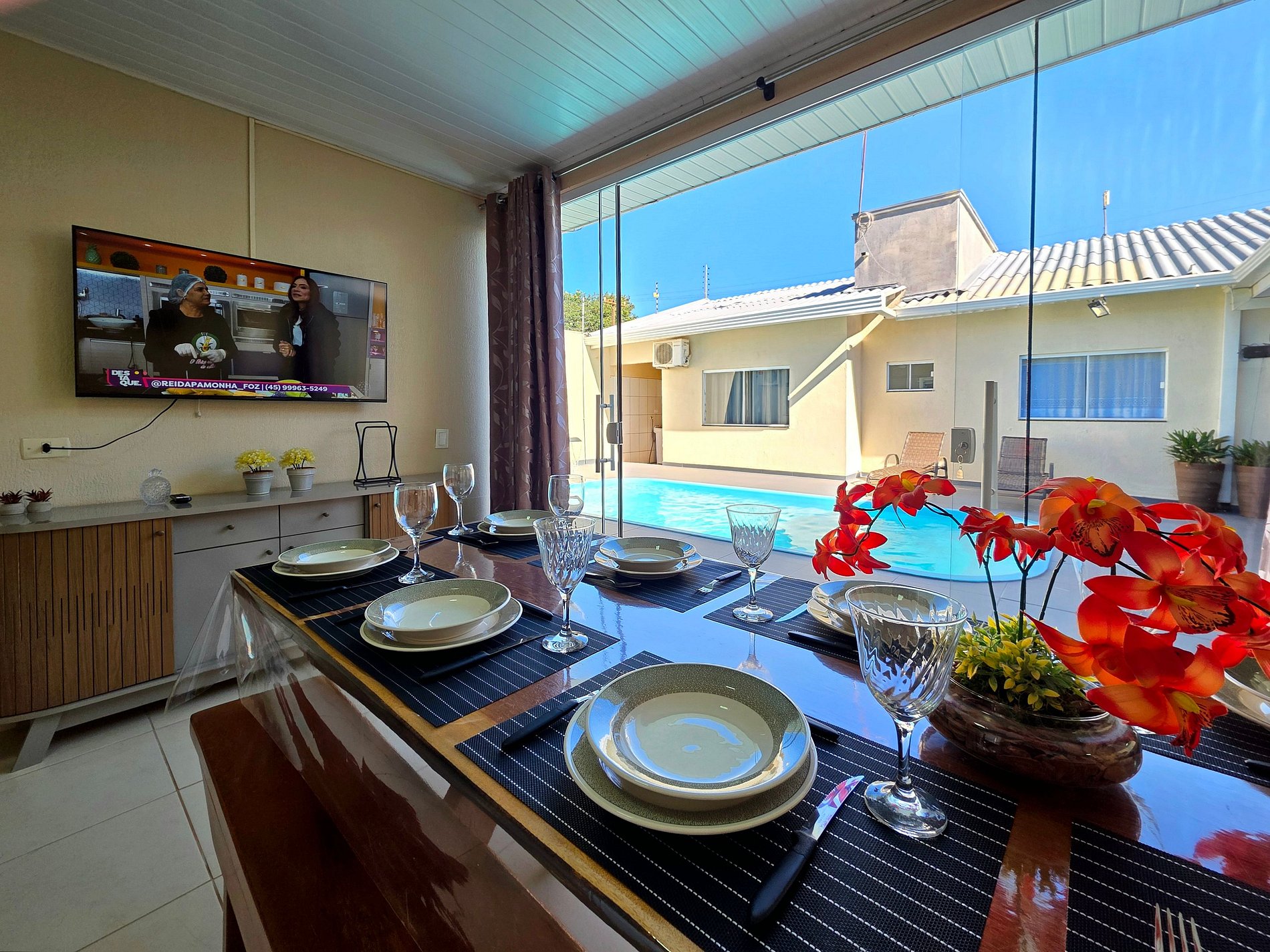 Ótima casa com 4 quartos para até 13 pessoas, sendo 2 suítes e + 2 quartos, com uma área de lazer excelente para família e amigos com piscina e churrasqueira, 20 minutos dos principais atrativos como Paraguai, Cataratas, Itaipu e Argentina. Supermercado a 5 minutos, 10 minutos do centro. Com roupa de cama e toalha de banho. Seu PET é bem-vindo. Garagem com portão eletrônico e Wi-Fi. Bairro seguro. Somos anfitriões comprometidos para que você tenha a melhor estadia.
