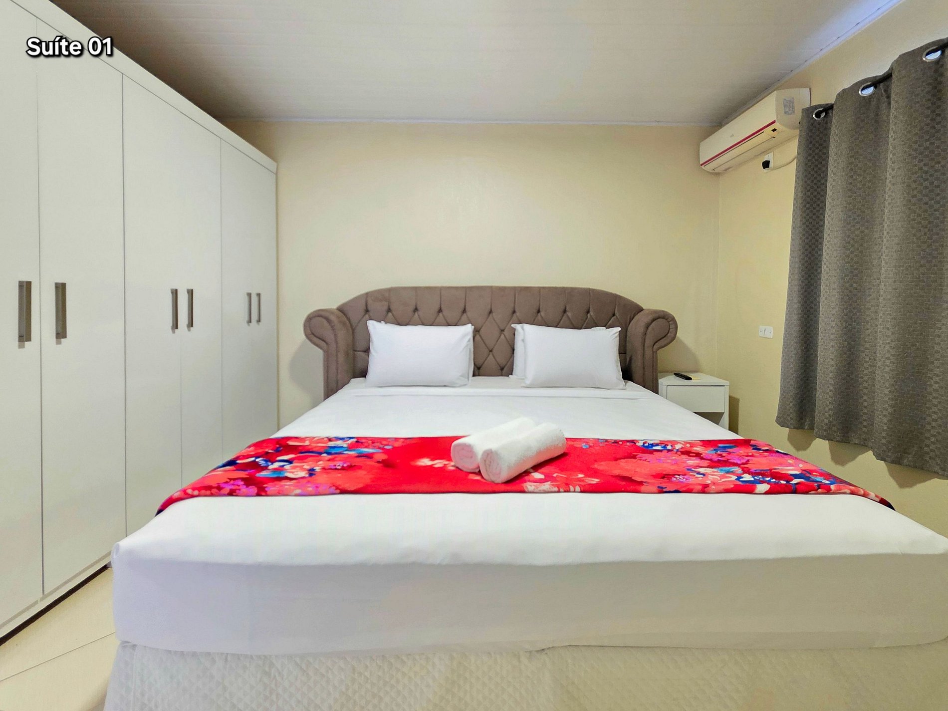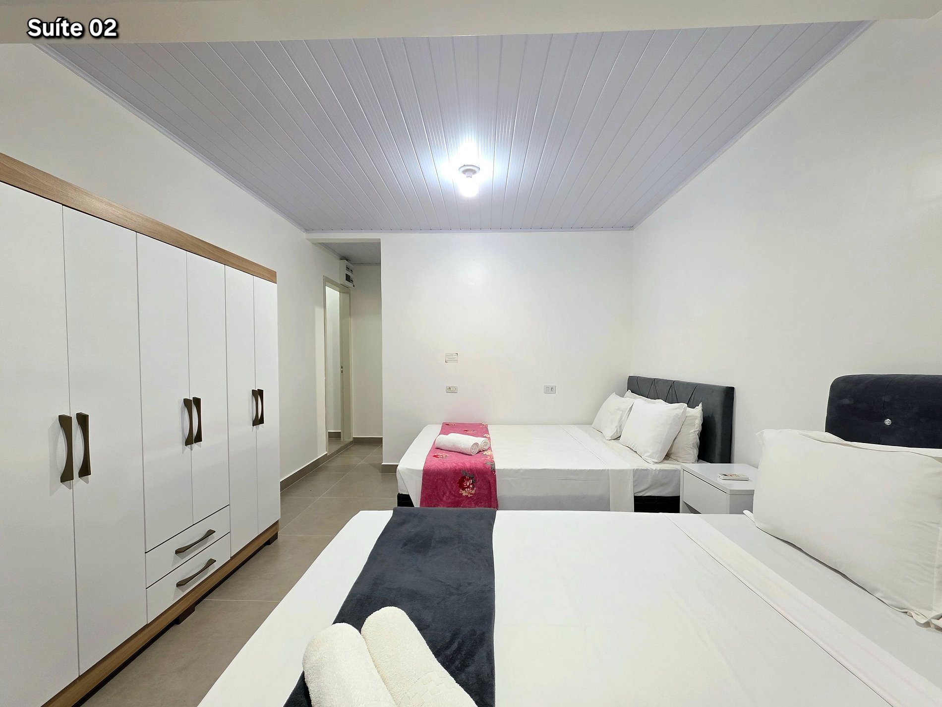 01 suíte com 01 cama queensize + 01 cama casal (com banheiro) - ar condicionado
