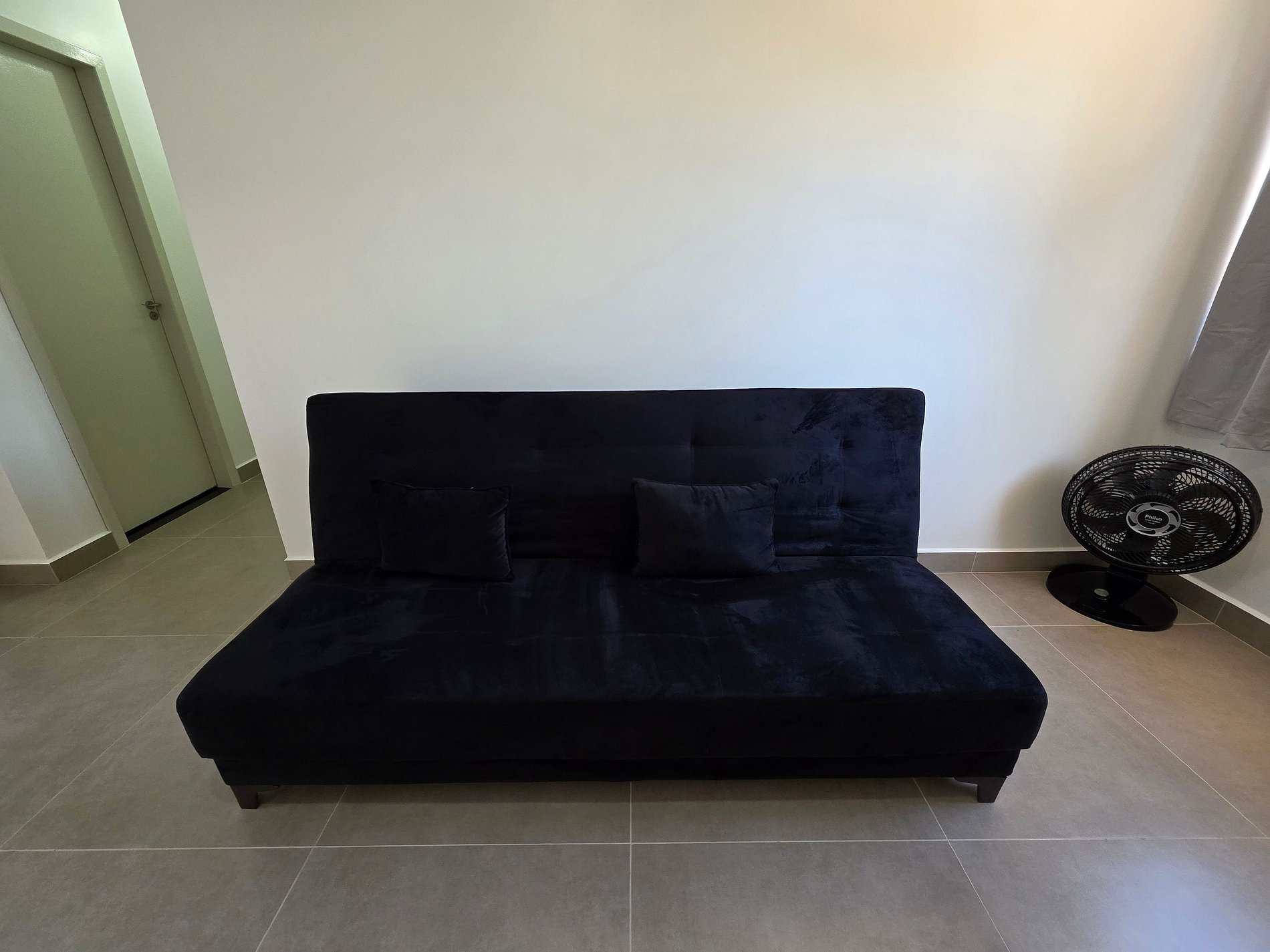 01 sofá cama na sala para 1 pessoa - deixamos roupas de cama e toalha de banho, temos 1 ventilador.