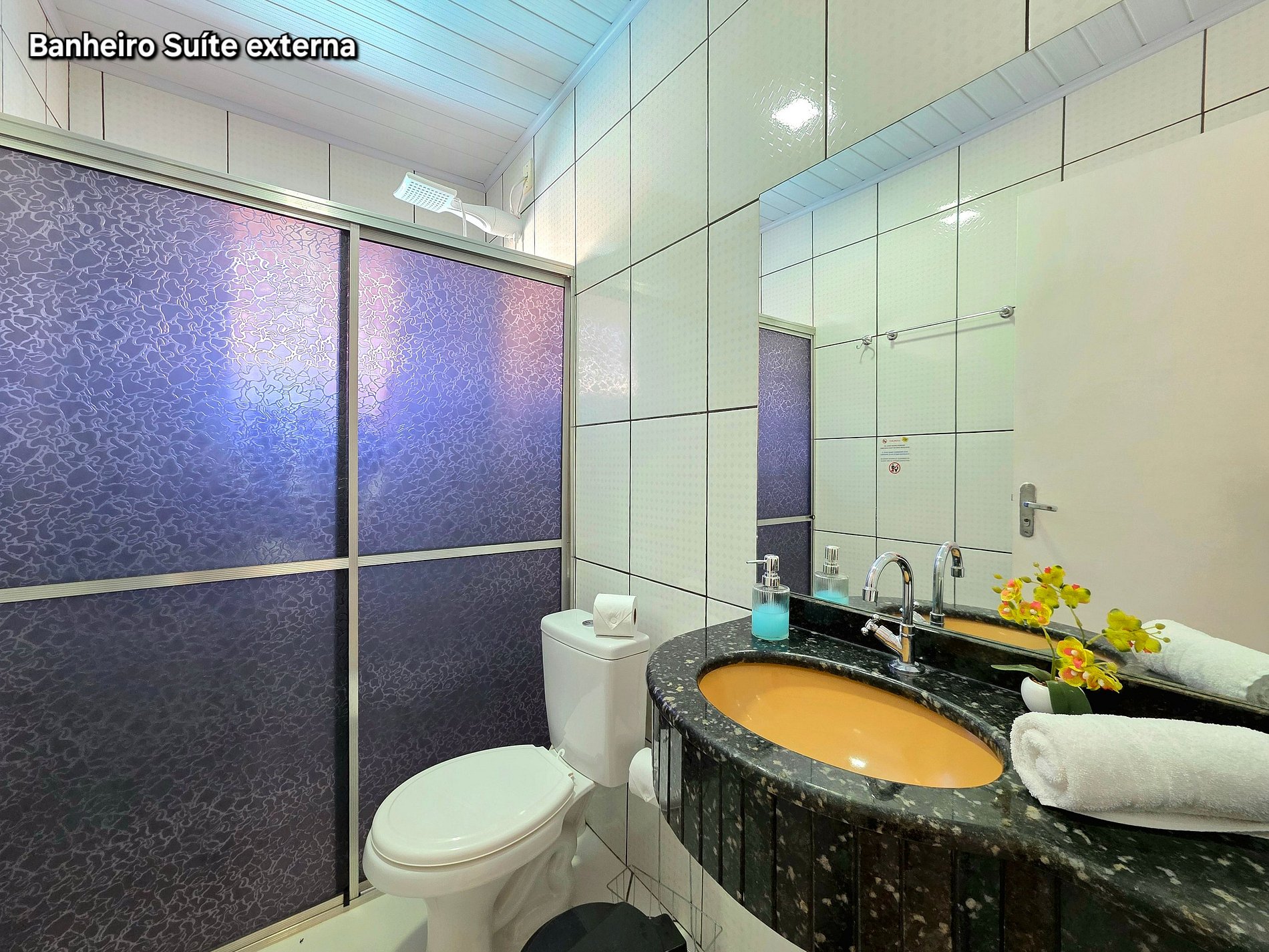 01 suíte com 01 cama kingsize + 01 cama de solteiro (com banheiro) - ar condicionado (Essa suíte está anexada a área gourmet)