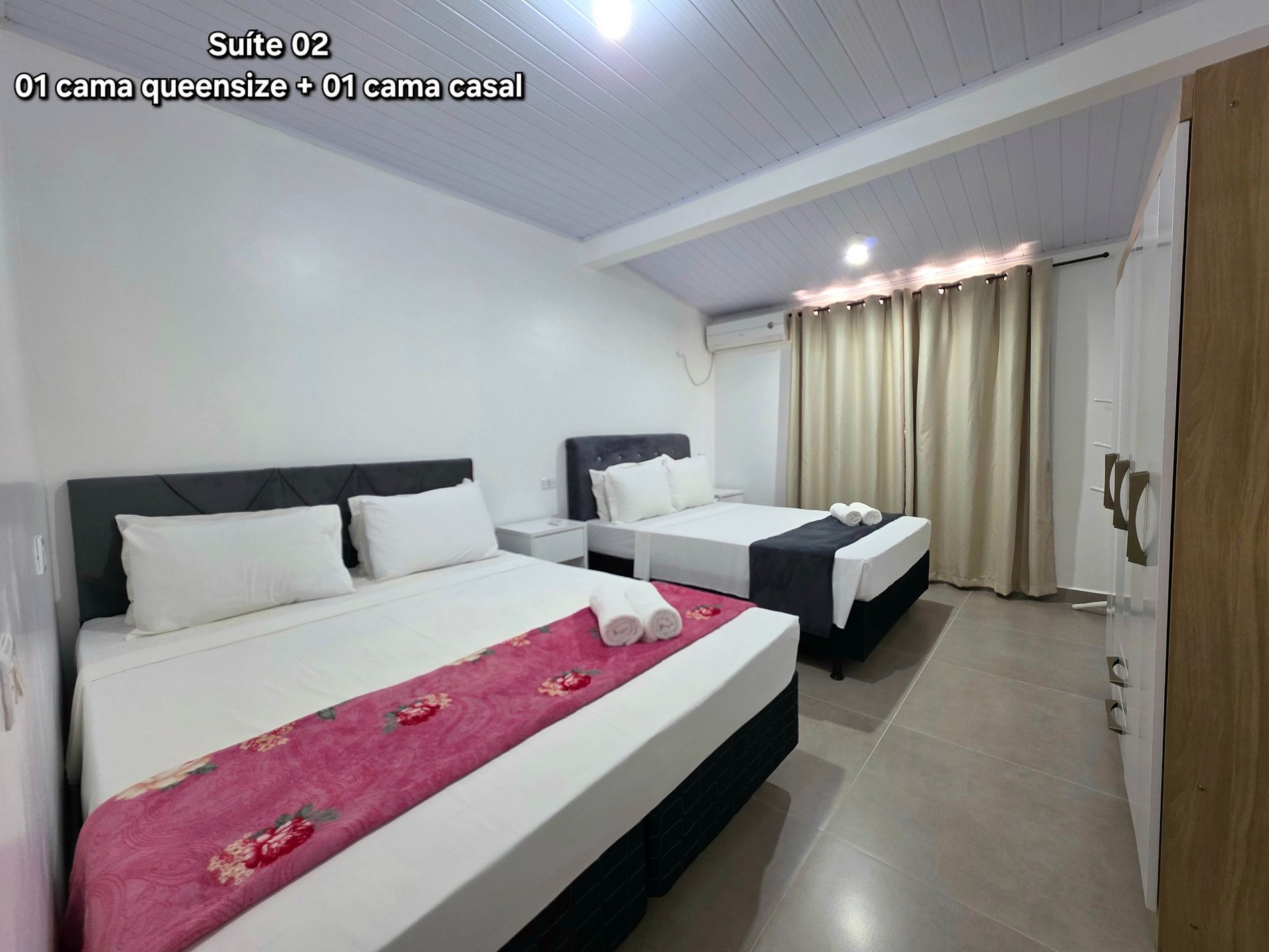 01 suíte com 01 cama queensize + 01 cama casal (com banheiro) - ar condicionado
