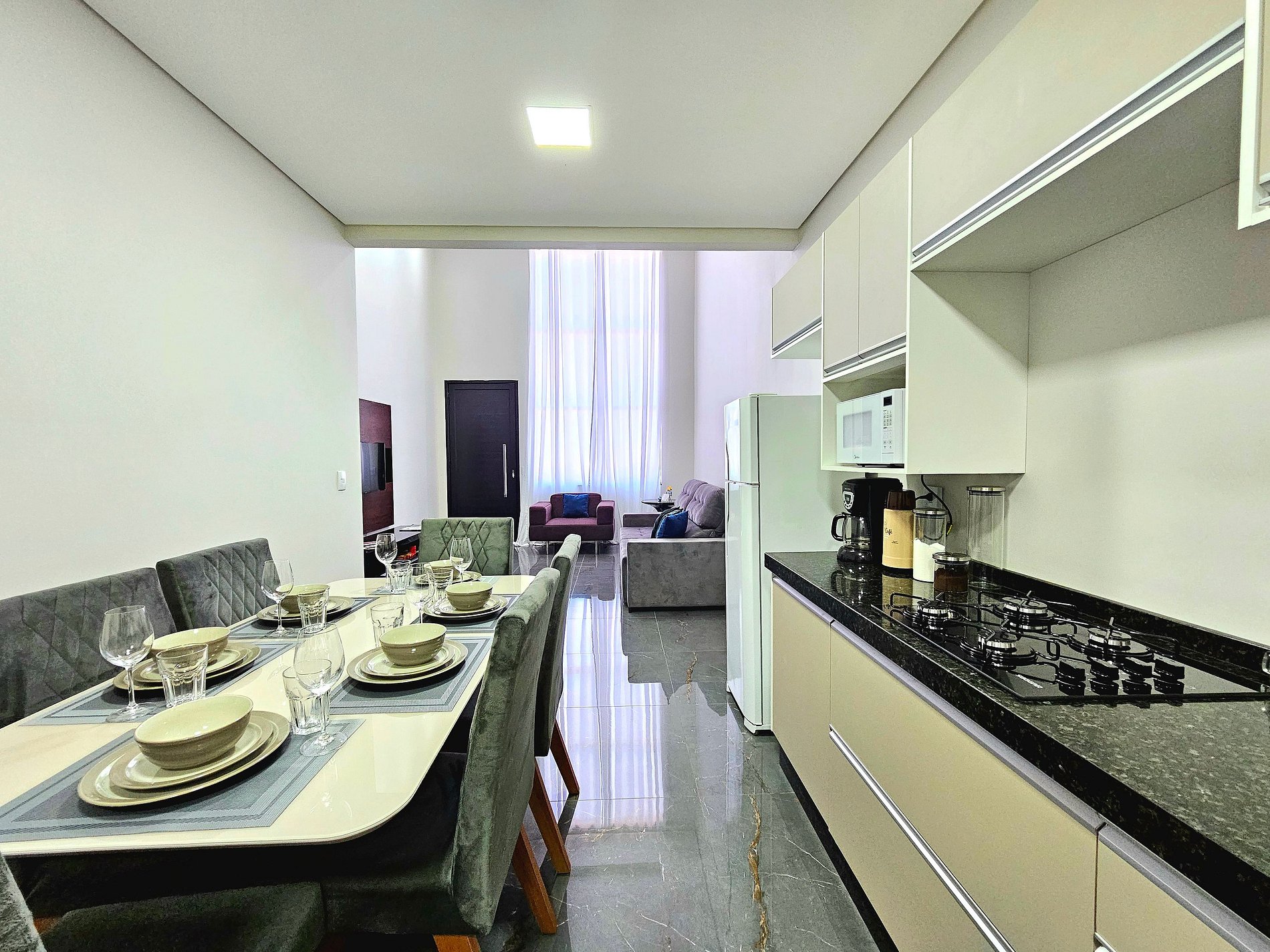 Cozinha completa com todos os utensílios domésticos, cafeteira elétrica, sanduicheira, microondas...