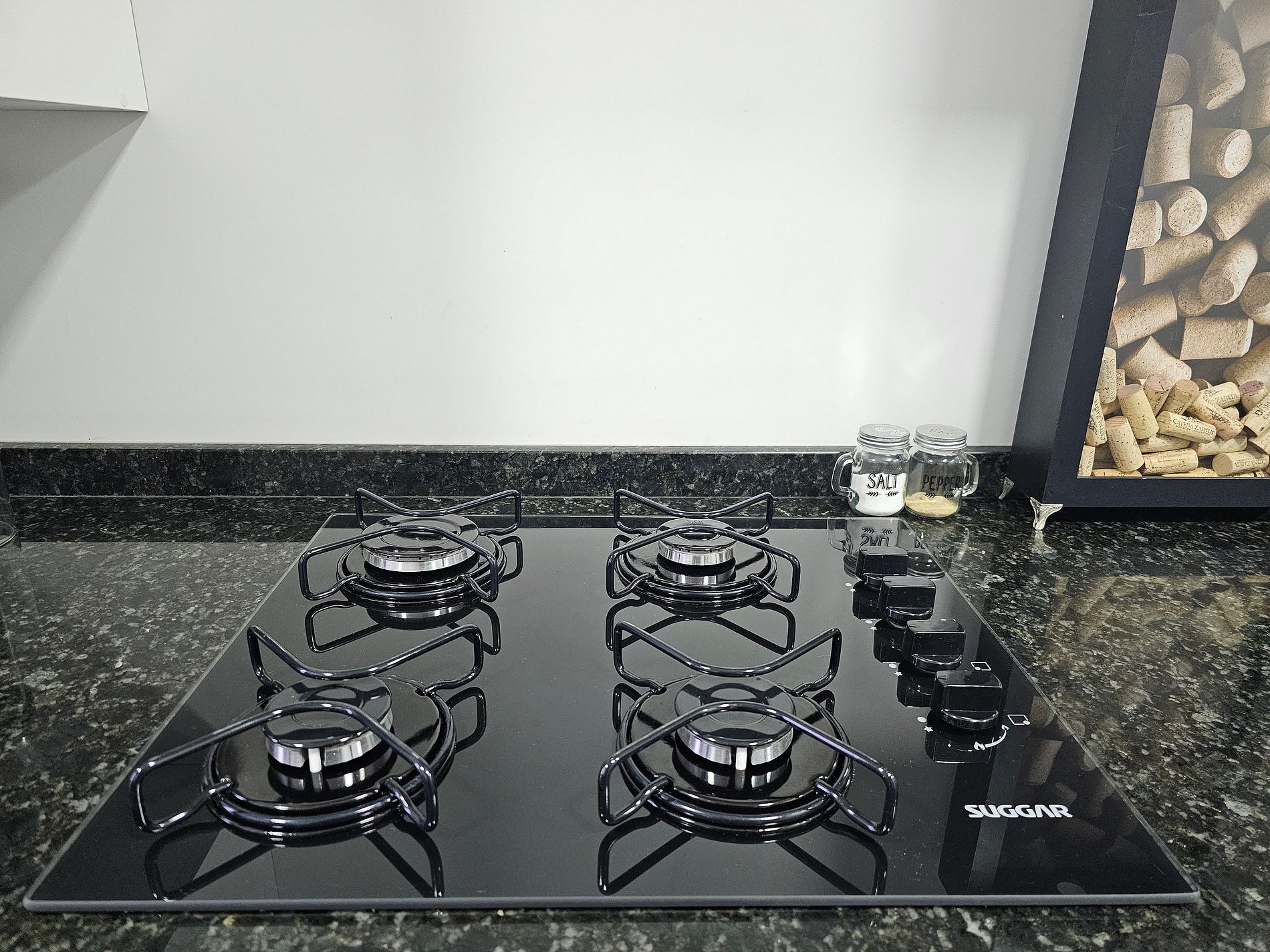 Cozinha completa com todos os utensílios domésticos, cafeteira elétrica, sanduicheira, microondas...