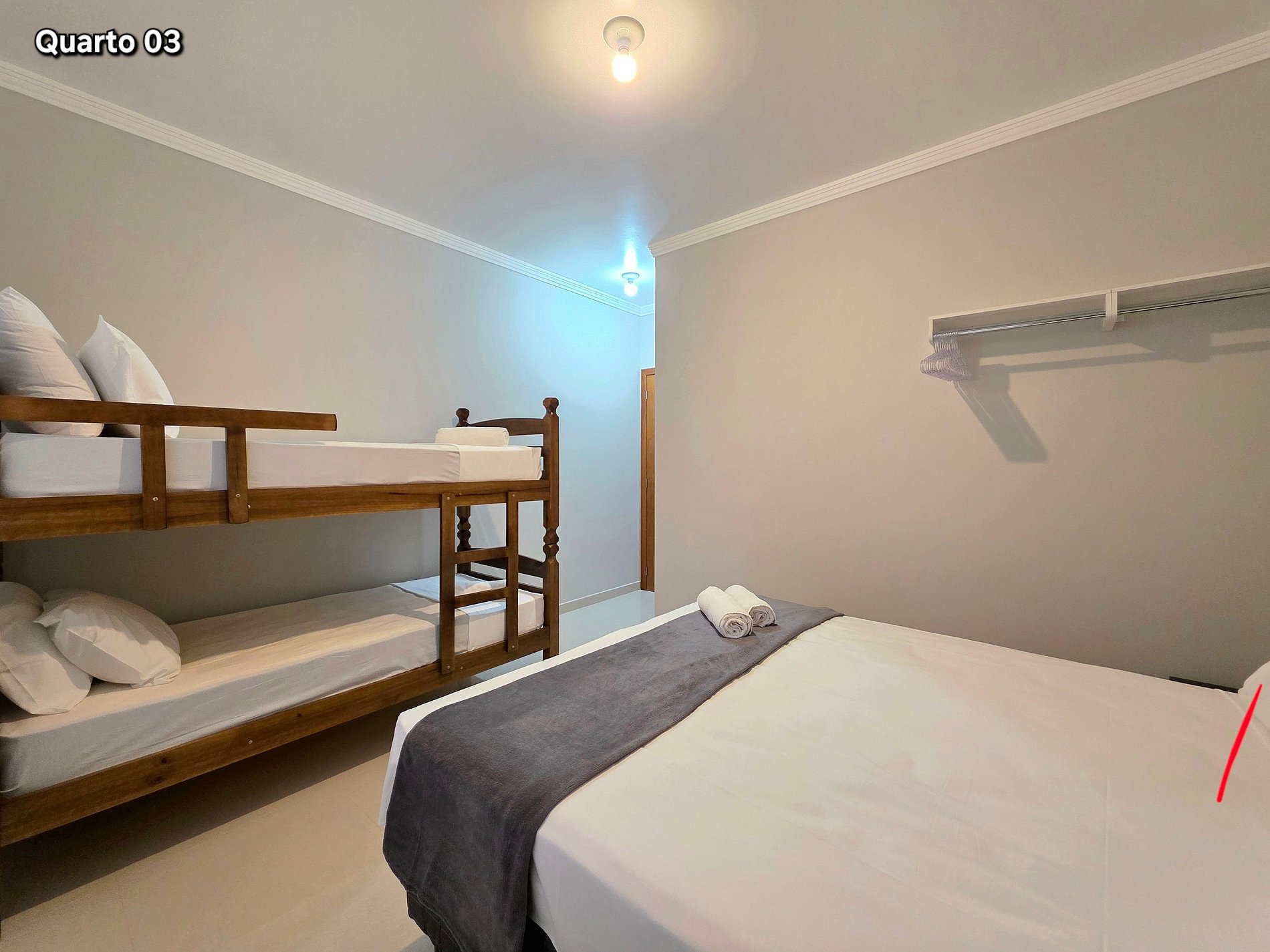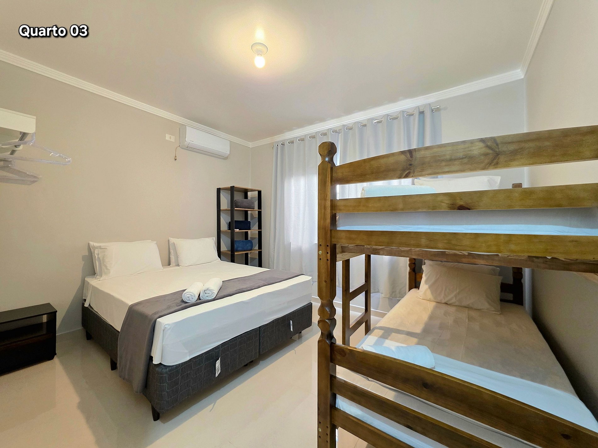 Quarto 03: 01 cama queensize + 01 beliche para 2 pessoas