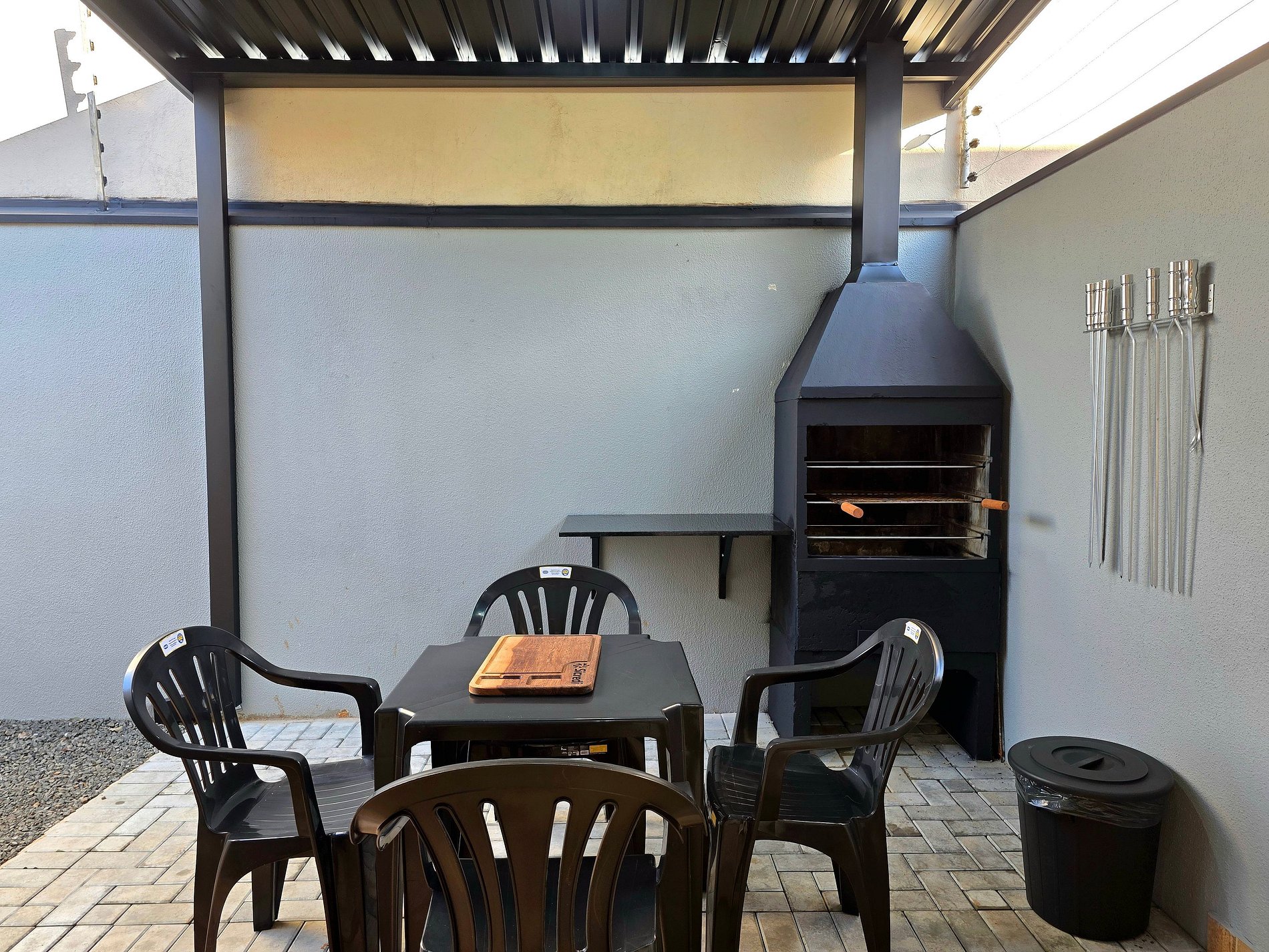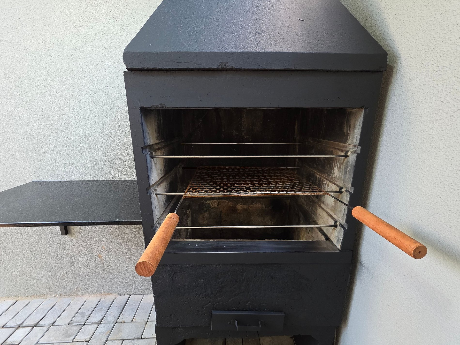 Churrasqueira com espetos e grelhas.