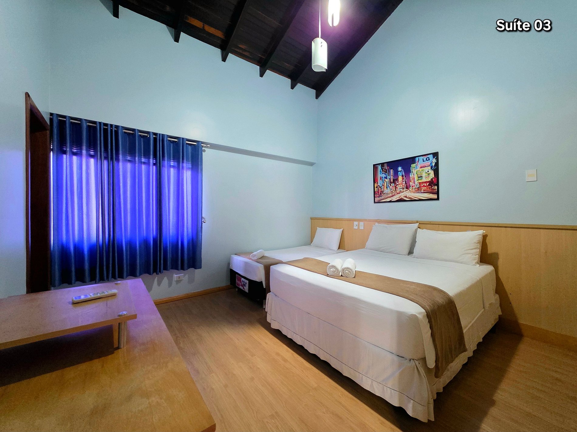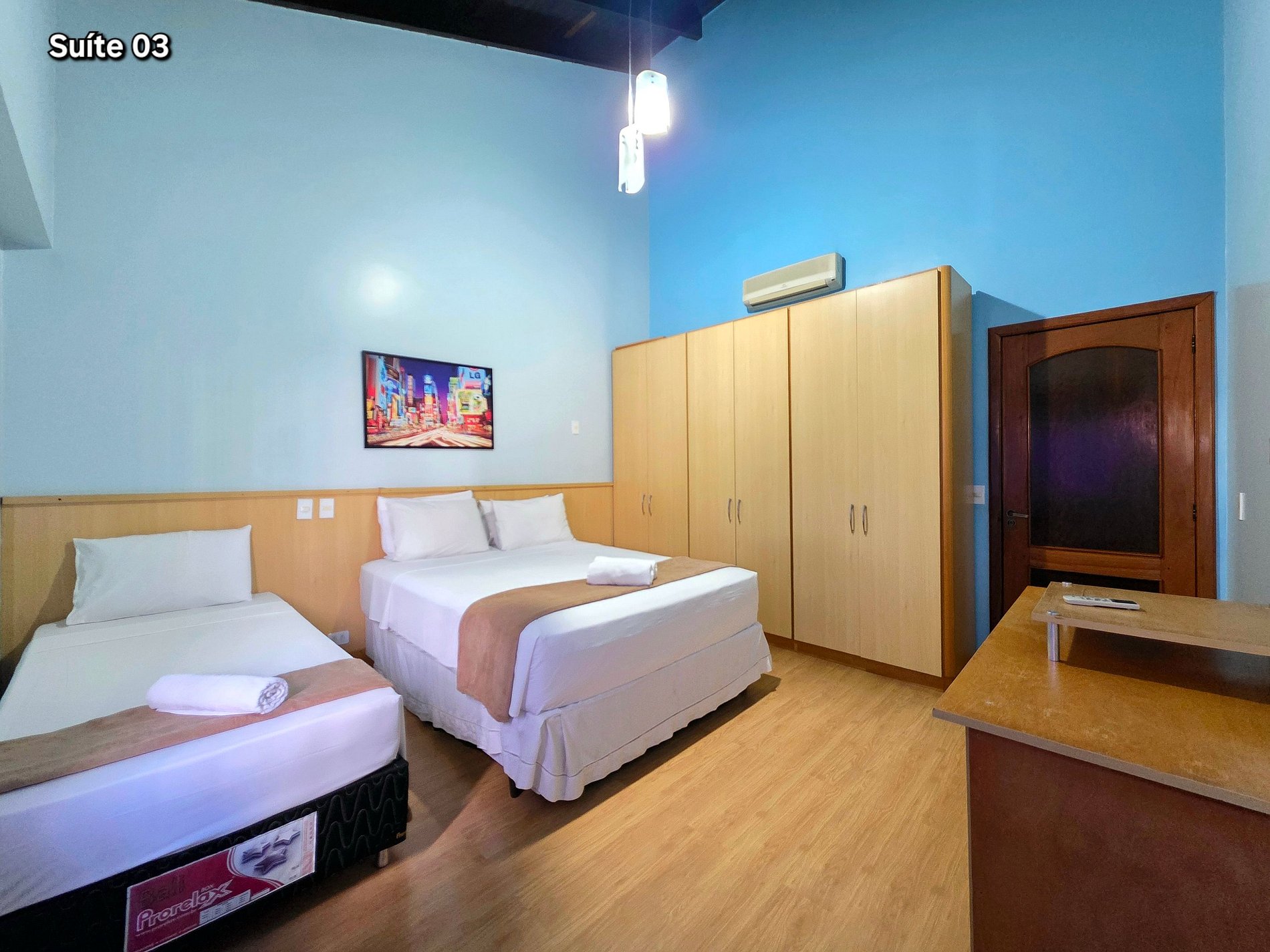 Quarto 03: suíte com 01 cama de casal + 01 cama de solteiro (com ar condicionado quente/frio)