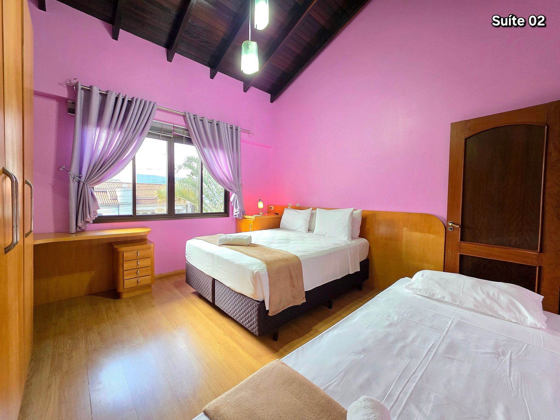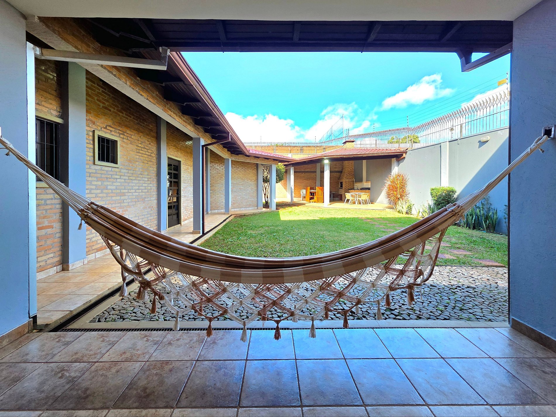 Linda casa em bairro nobre com 4 suítes, sendo 1 suíte no térreo. Área de lazer excelente para família e amigos com churrasqueira, 10min do Paraguai. 15min Cataratas e Argentina. Com roupa de cama e toalha de banho. Seu PET é bem-vindo. Equipada com utensílios. Todos os quartos climatizado, salas de estar e de jantar climatizadas. Garagem para 04 carros, portão eletrônico e Wi-Fi. Bairro seguro e completo. Somos anfitriões comprometidos com sua estadia.