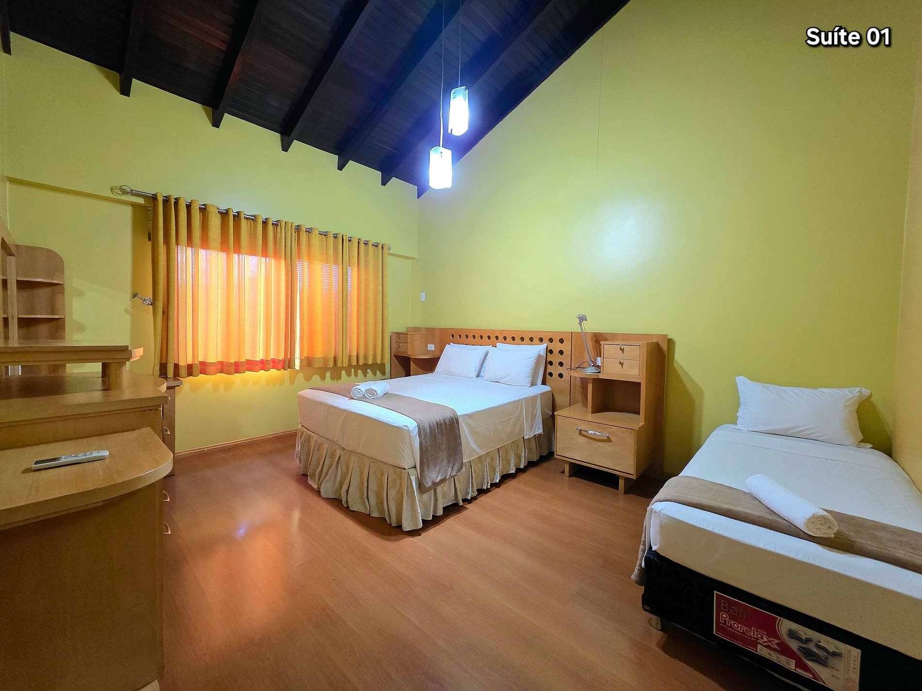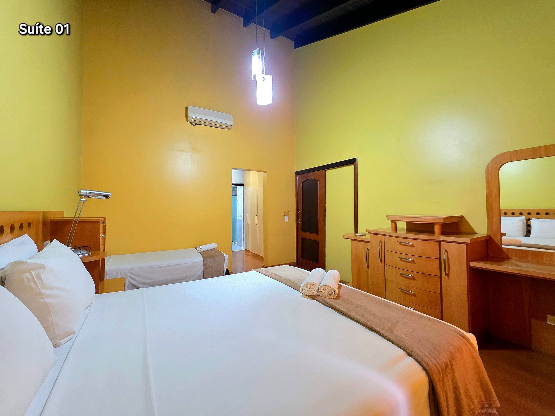 Quarto 02: suíte com 01 cama queensize + 01 cama de solteiro (com ar condicionado quente/frio)