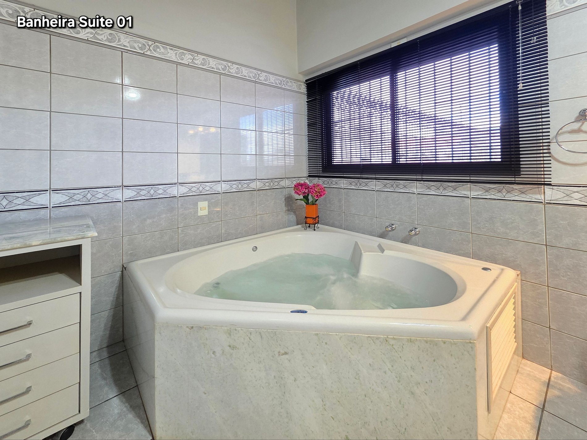 Quarto 01: suite com banheira aquecimento solar e hidro com 01 cama de queensize + 01 cama de solteiro (com ar condicionado quente/frio)