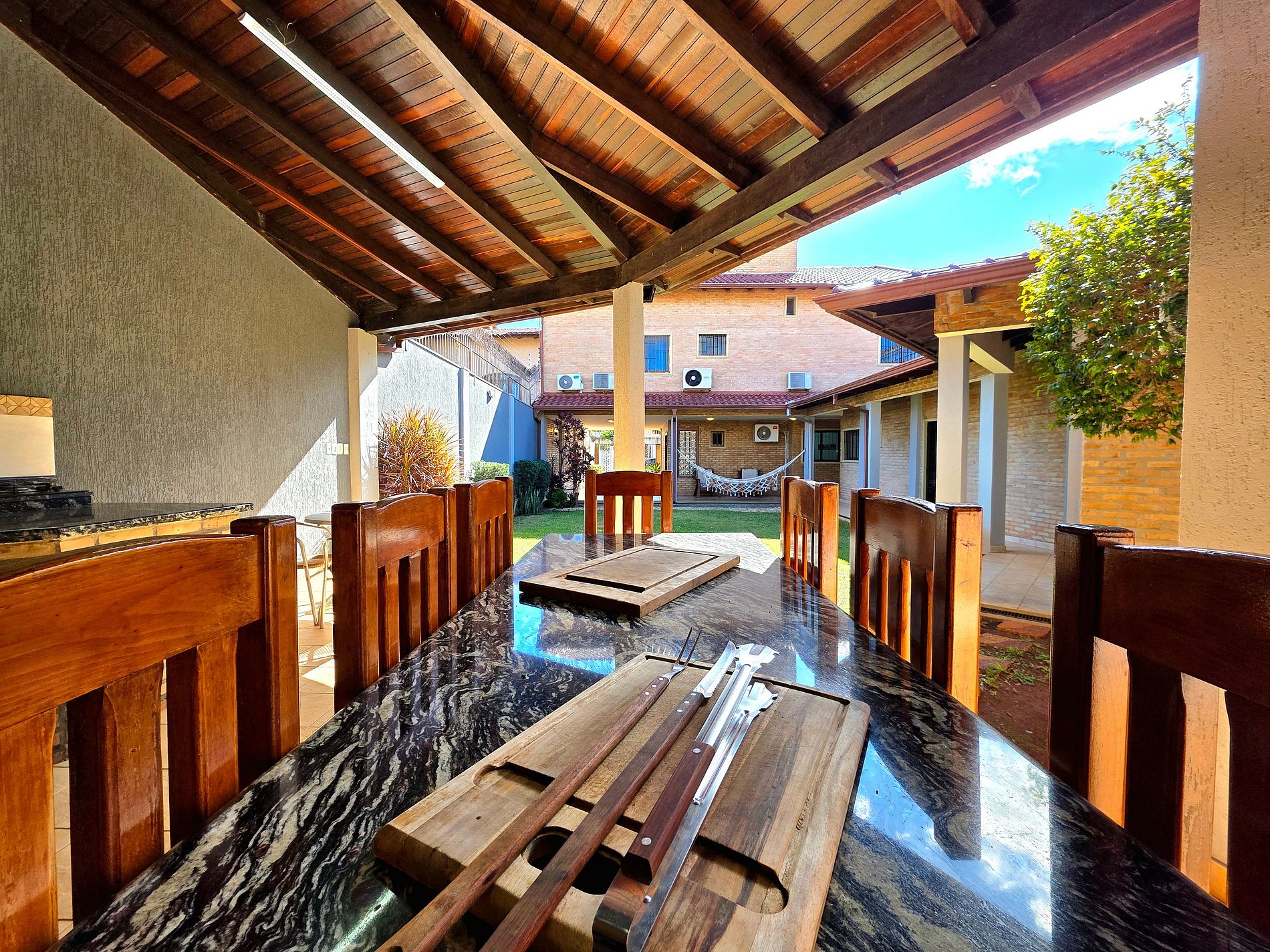 Linda casa em bairro nobre com 4 suítes, sendo 1 suíte no térreo. Área de lazer excelente para família e amigos com churrasqueira, 10min do Paraguai. 15min Cataratas e Argentina. Com roupa de cama e toalha de banho. Seu PET é bem-vindo. Equipada com utensílios. Todos os quartos climatizado, salas de estar e de jantar climatizadas. Garagem para 04 carros, portão eletrônico e Wi-Fi. Bairro seguro e completo. Somos anfitriões comprometidos com sua estadia.