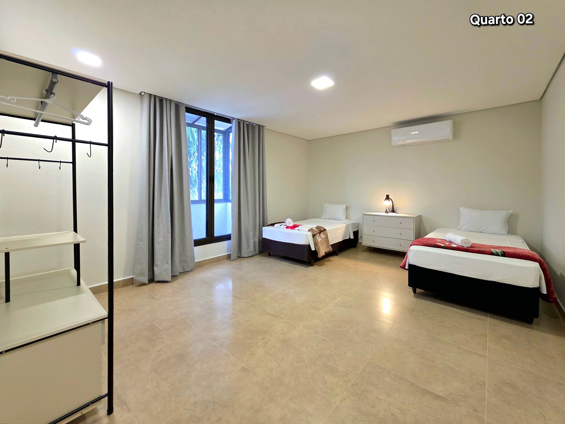 Quarto 02: 02 camas de solteiro (com ar condicionado quente/frio)