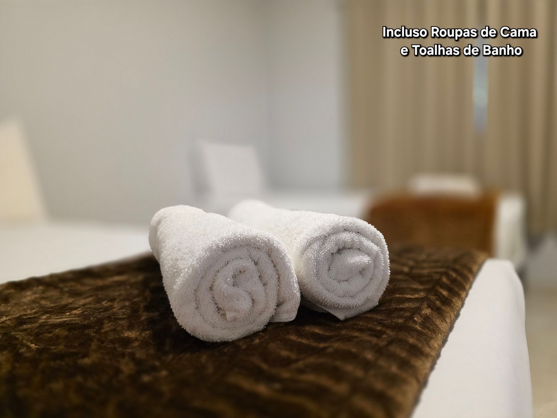 Incluímos roupa de cama, 01 toalha de banho por hospede, 01 toalha de rosto por banheiro e 01 coberta por cama.