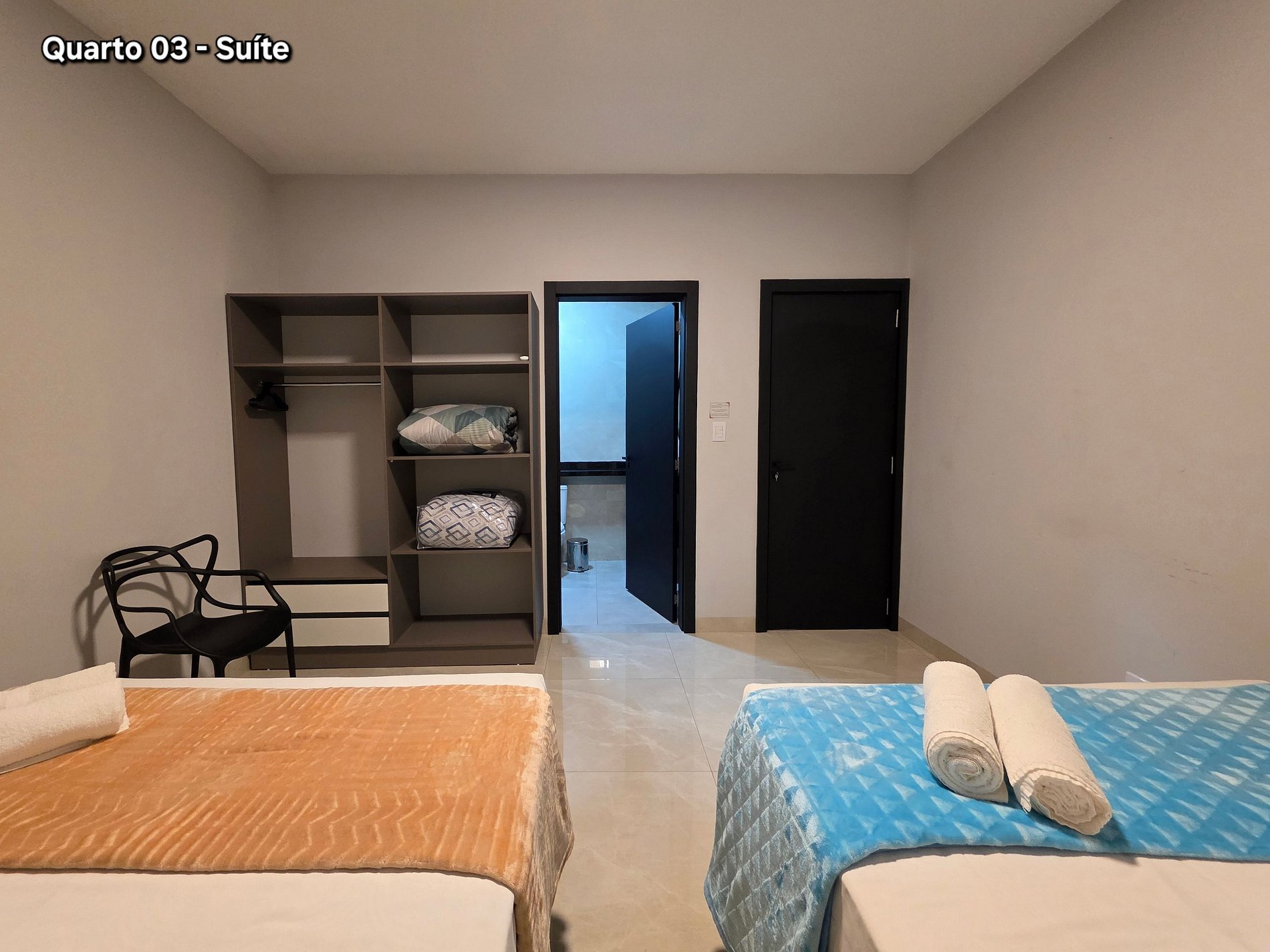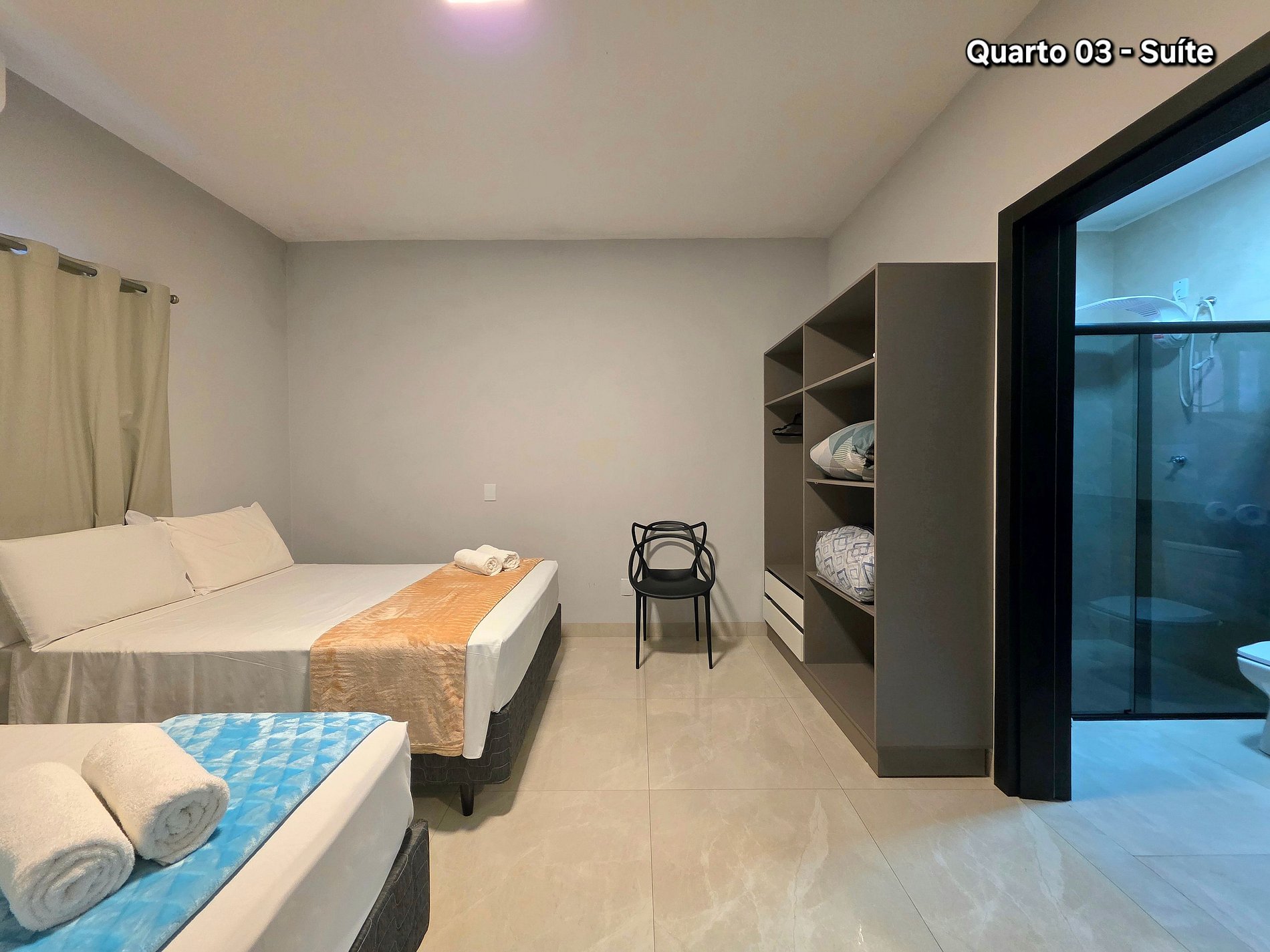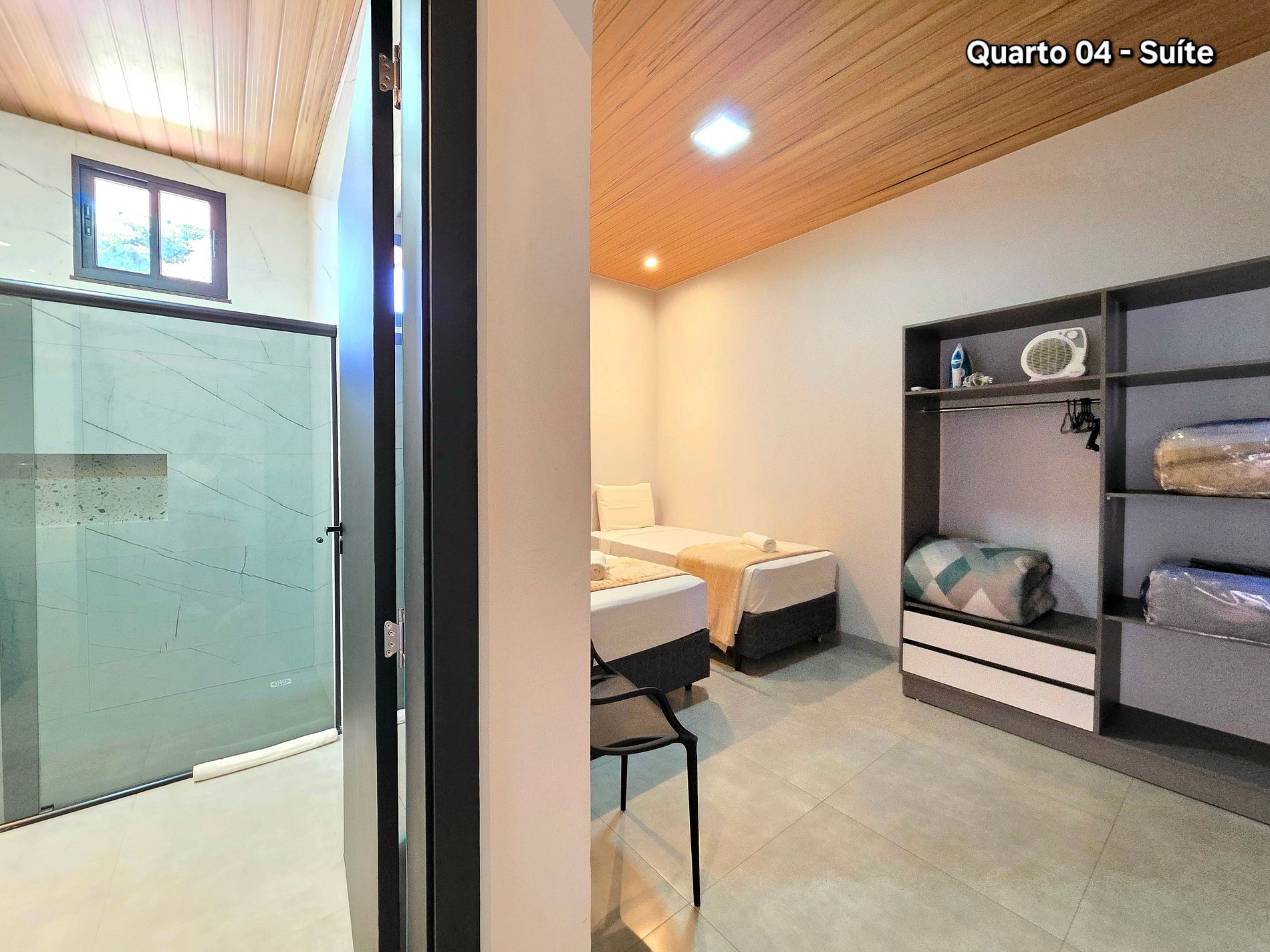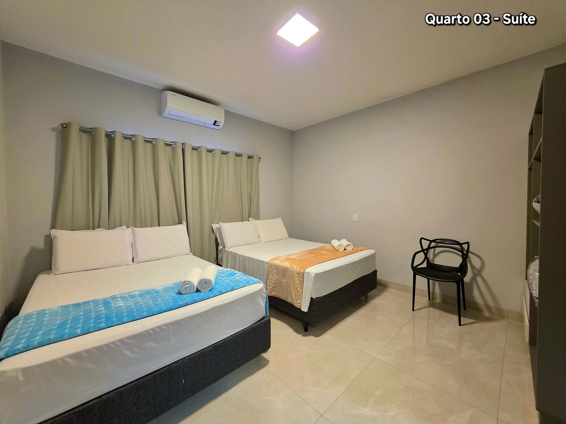 Quarto 03: Suíte sendo 02 camas de casal (com banheiro e ar condicionado)