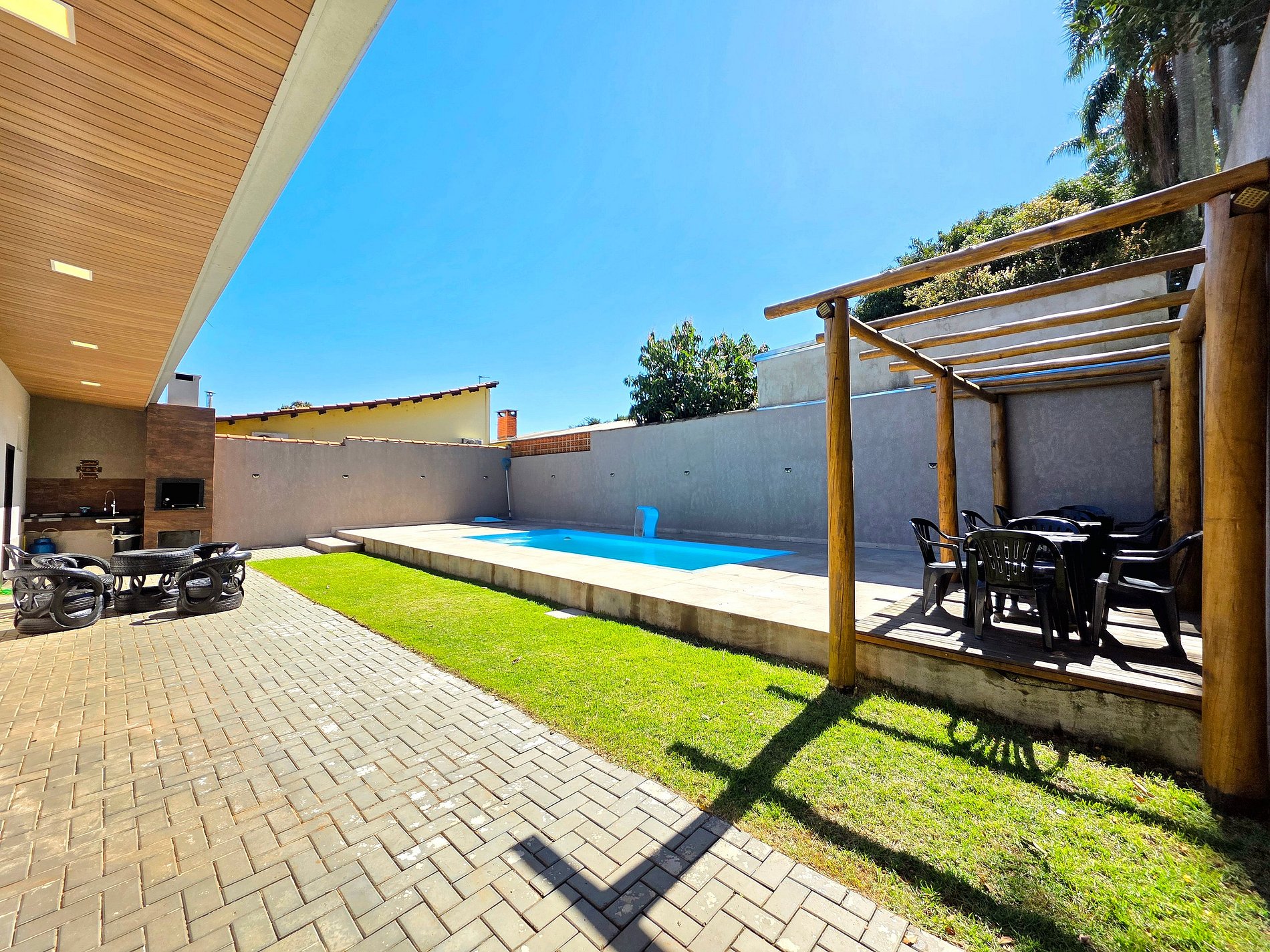 Se hospede em uma casa recém construída com 4 quartos, sendo 2 suítes e 2 quartos para até 14 pessoas; Excelente área de lazer com churrasqueira e piscina para curtir sua viagem em nosso destino. Casa em uma rua muito tranquila, 10 a 20 minutos dos atrativos, muito próximo do centro como 5 minutos. No bairro encontra supermercado, padaria e farmácia. Somos anfitriões comprometidos para que você tenha as melhores lembranças da sua viagem.