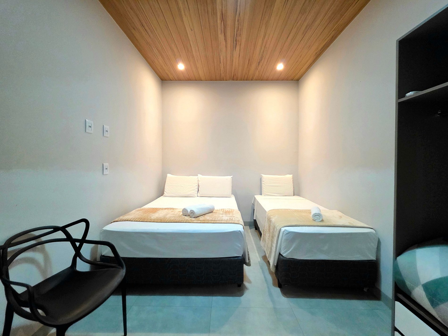 Quarto 01: 01 cama de casal + 02 camas de solteiro (com ar condicionado)