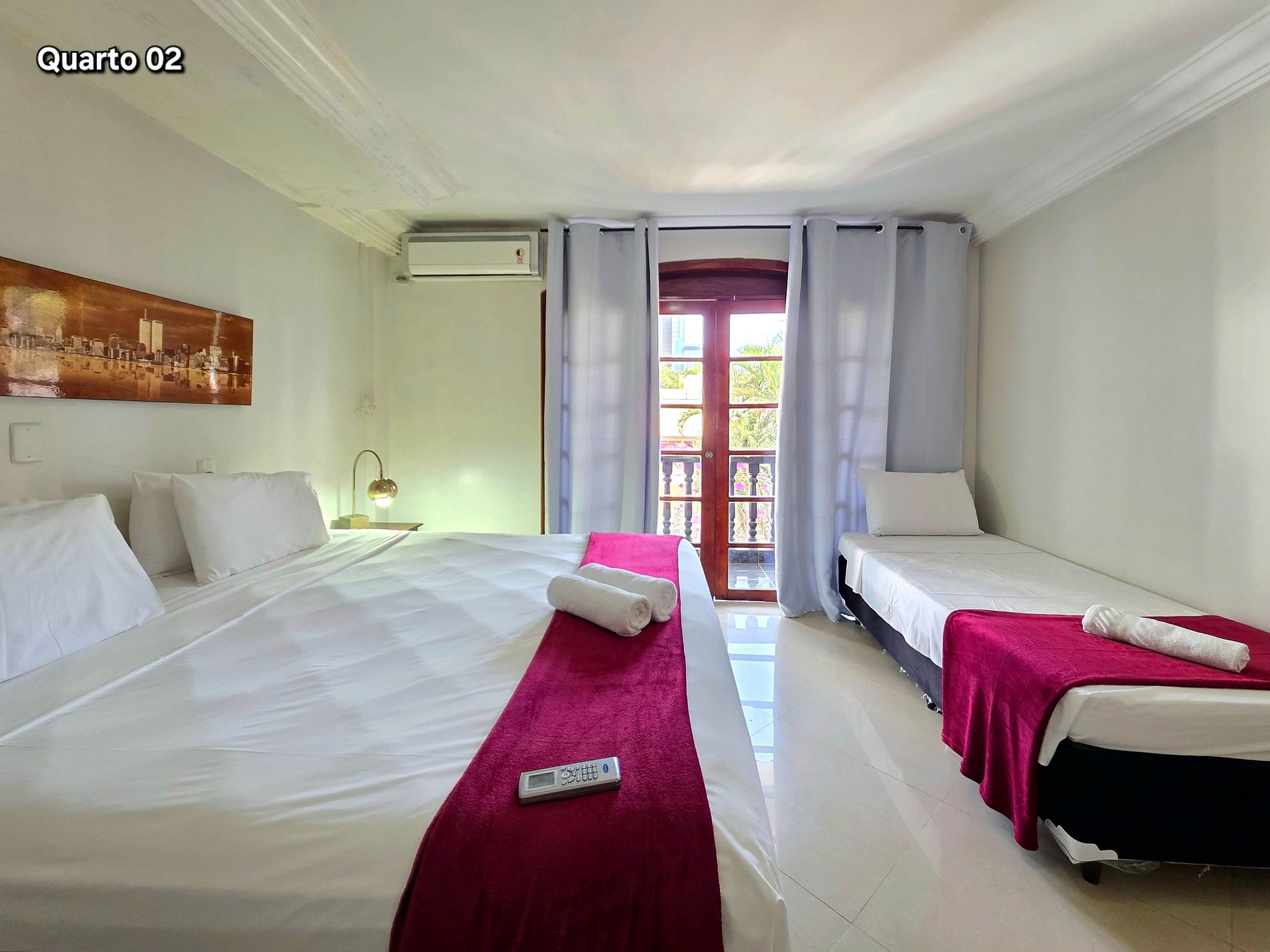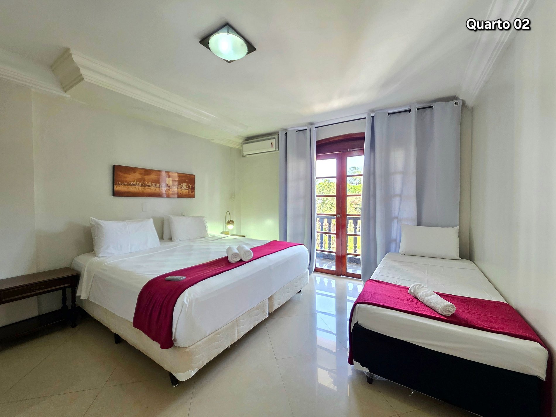 Quarto 02: 01 Cama kingsize + 01 cama solteiro (com ar condicionado)