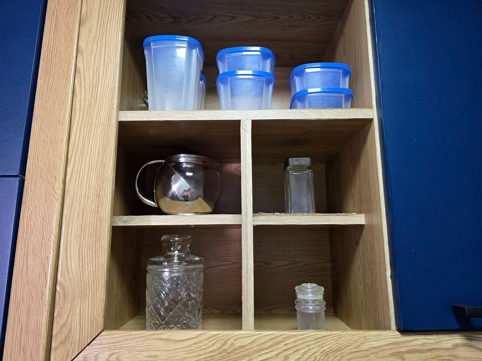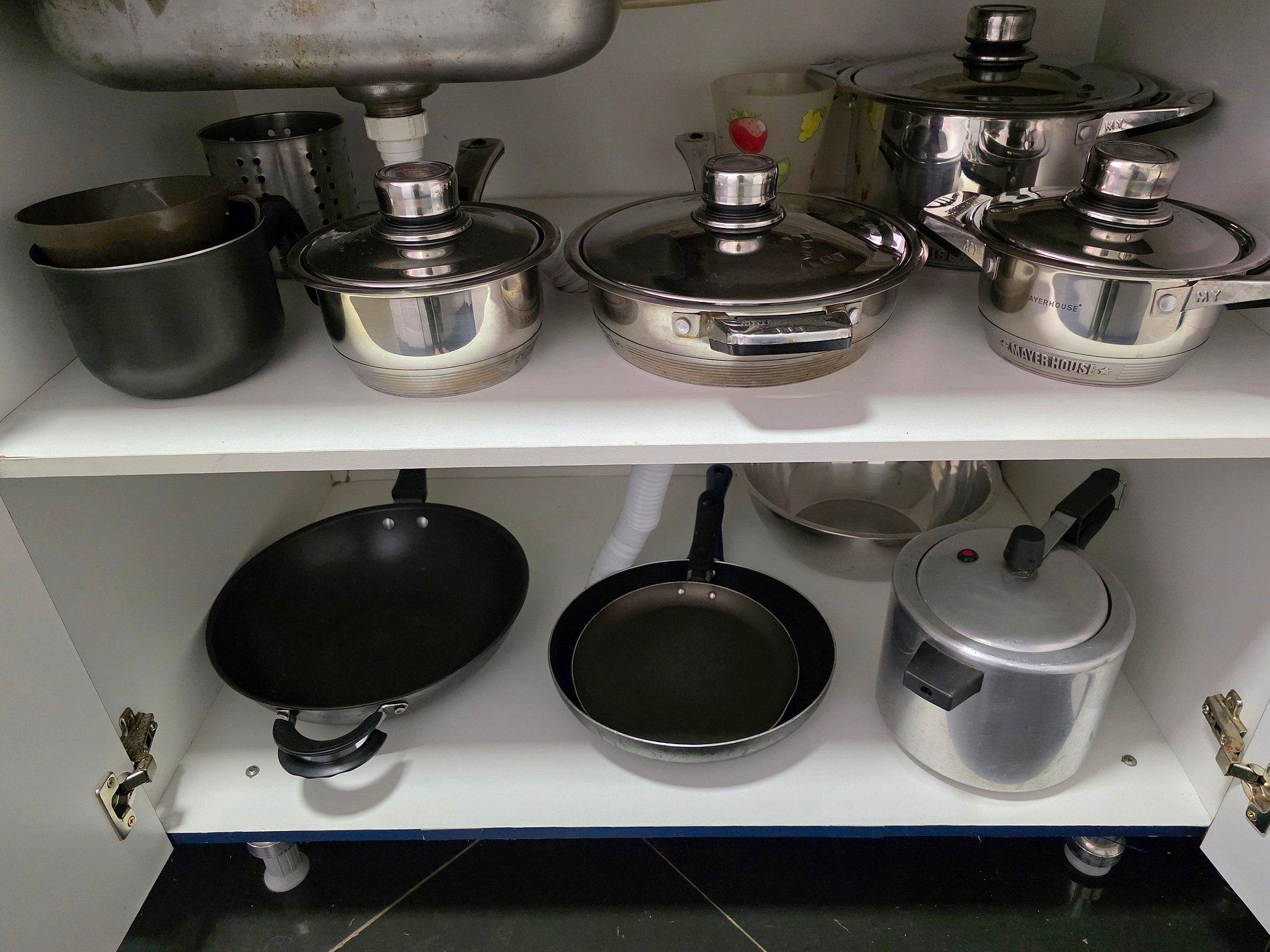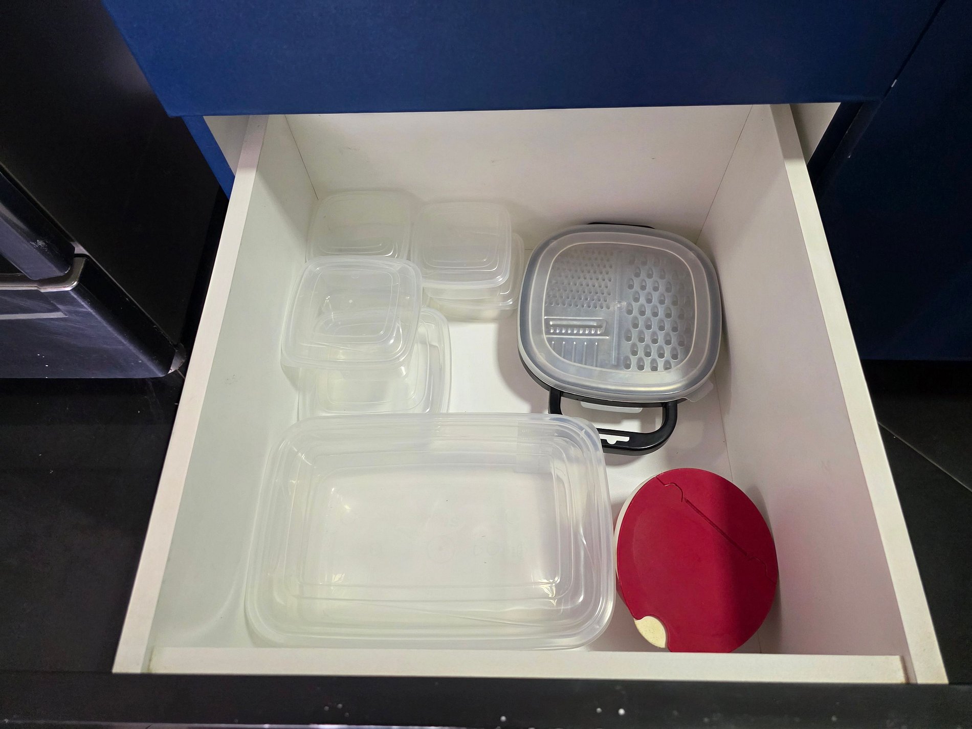 Cozinha completa com utensílios e louças para as refeições, microondas, liquidificador, sanduicheira.