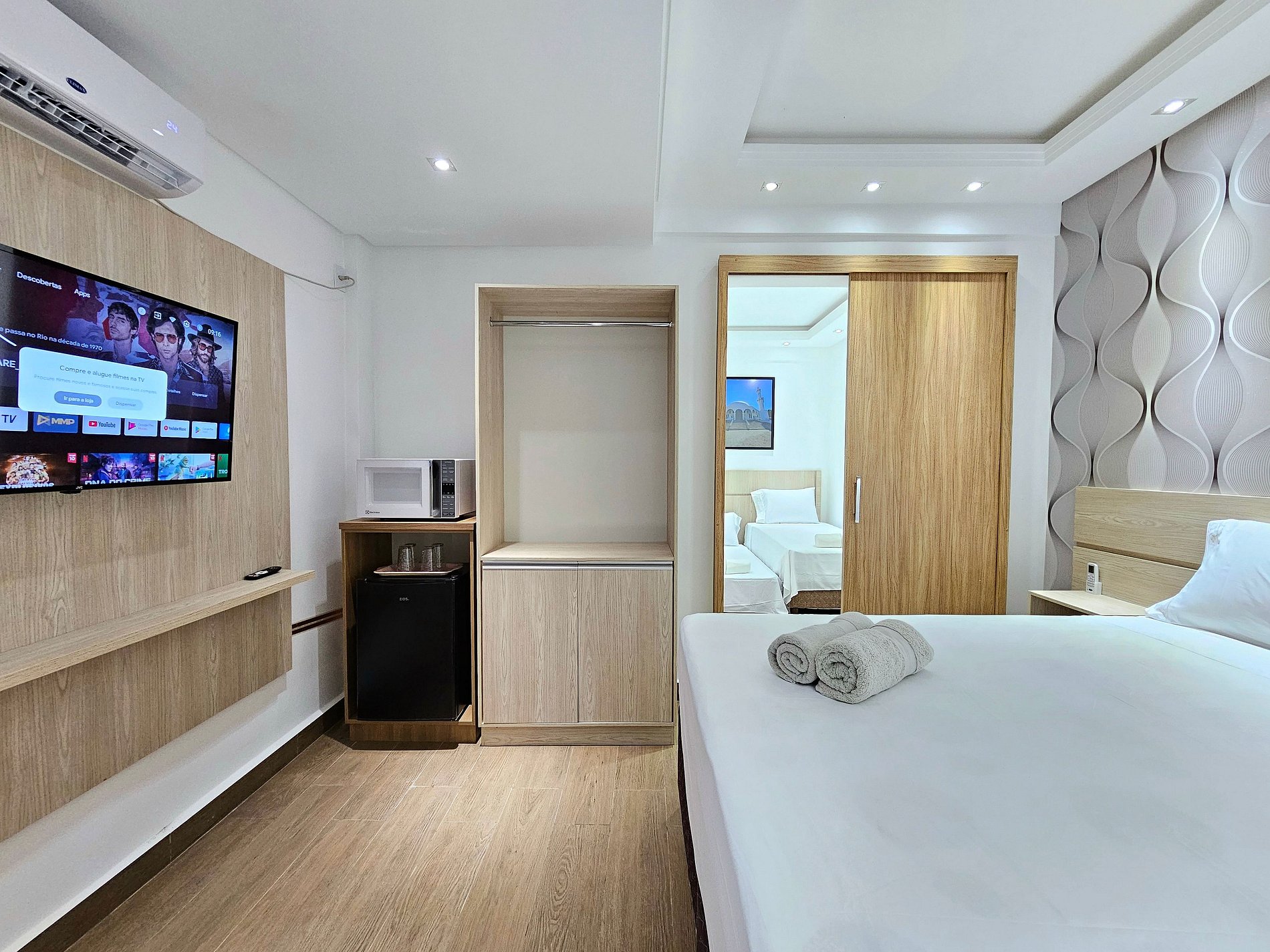 Studios novos no centro de Foz do Iguaçu, para até 4 pessoas - Cada apartamento é um espaço com 2 ambientes conectados e o banheiro privado. A poucos metros da principal avenida de restaurantes de Foz. 15 minutos dos principais atrativos como Cataratas e Paraguai. Seu PET é muito bem-vindo. Incluso roupa de cama e toalhas de banho. Ambiente climatizado com SmartTV, microondas e frigobar. Incluso WIFI e garagem. Somos anfitriões comprometidos para que você tenha uma excelente estadia.