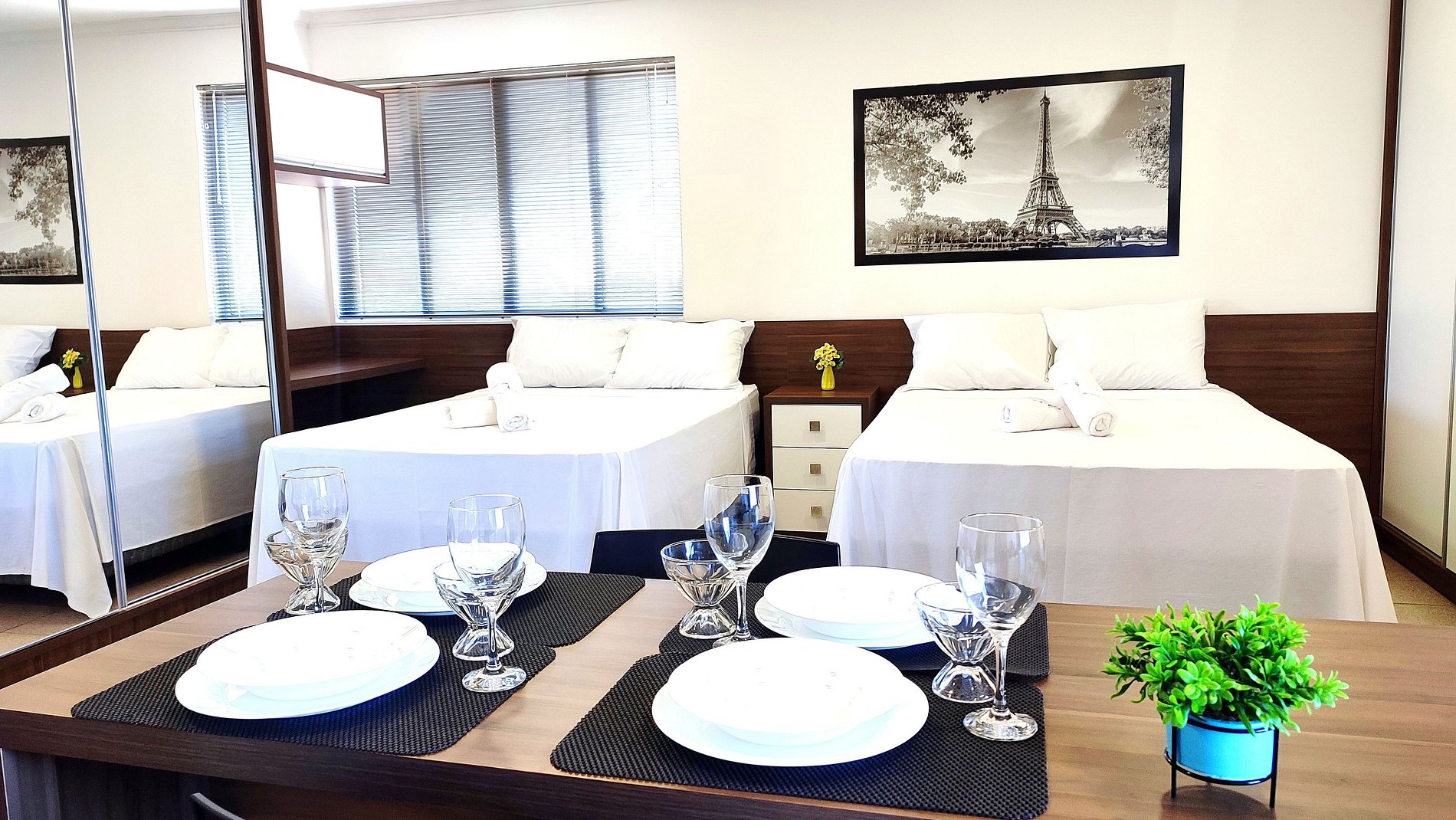 Lindos Studios no centro de Foz do Iguaçu, amplos com Wifi e garagem incluído. Para 1 até 4 pessoas. Recebemos grupos de até 20 hospedes. Tudo muito próximo, como farmácia, padaria 24h, restaurantes, supermercados, terminal de onibus, shopping, comercio em geral. 15/20 minutos das Cataratas, 15 minutos do Paraguai/Itaipu. Ficamos em um prédio residencial e tranquilo. Não temos elevador. Somos anfitriões comprometidos em fazer da sua estadia a melhor experiência.